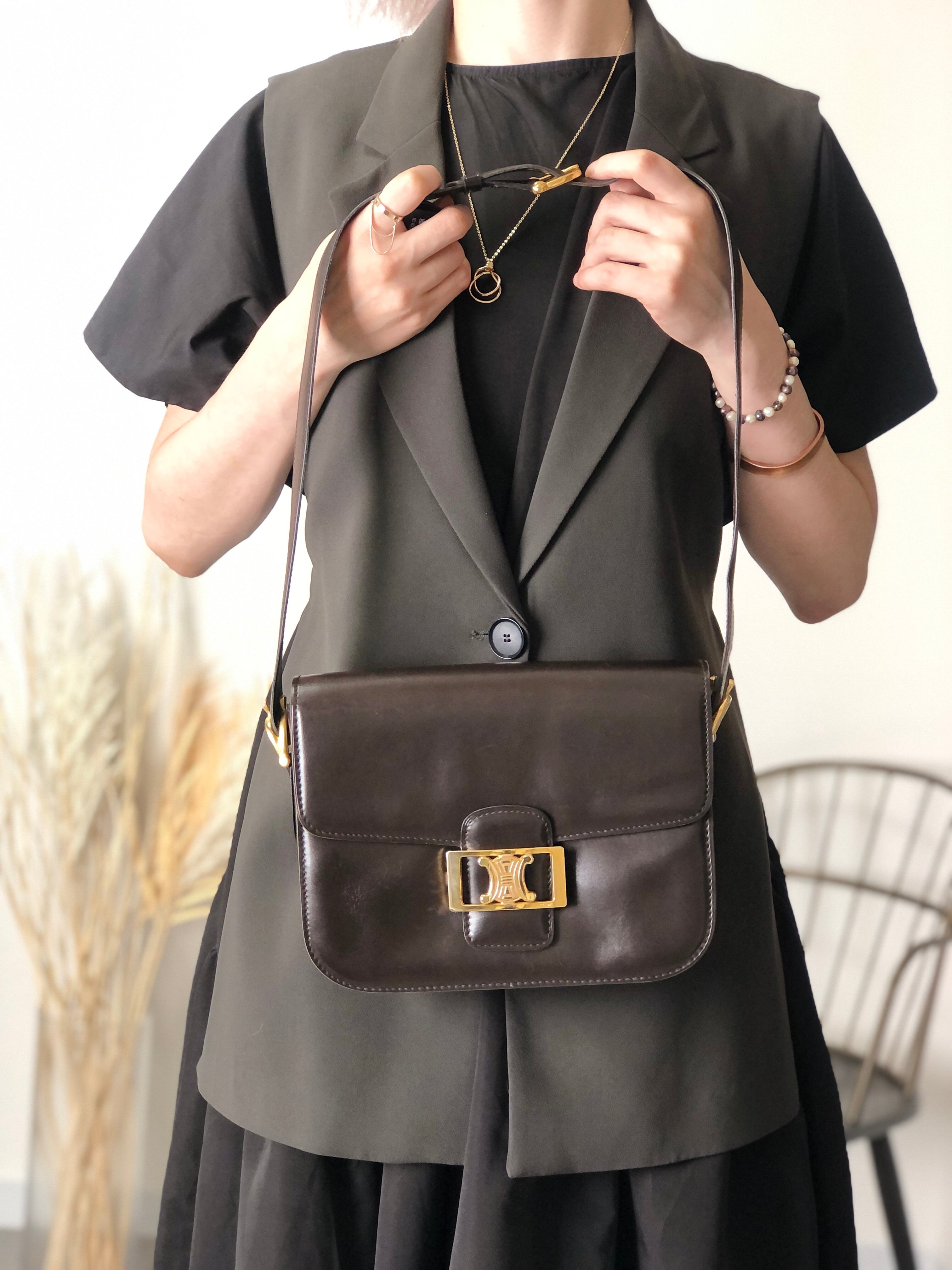 CELINE セリーヌ ショルダーバッグ ダークブラウン トリオンフ レザー vintage ヴィンテージ オールド xeaff4