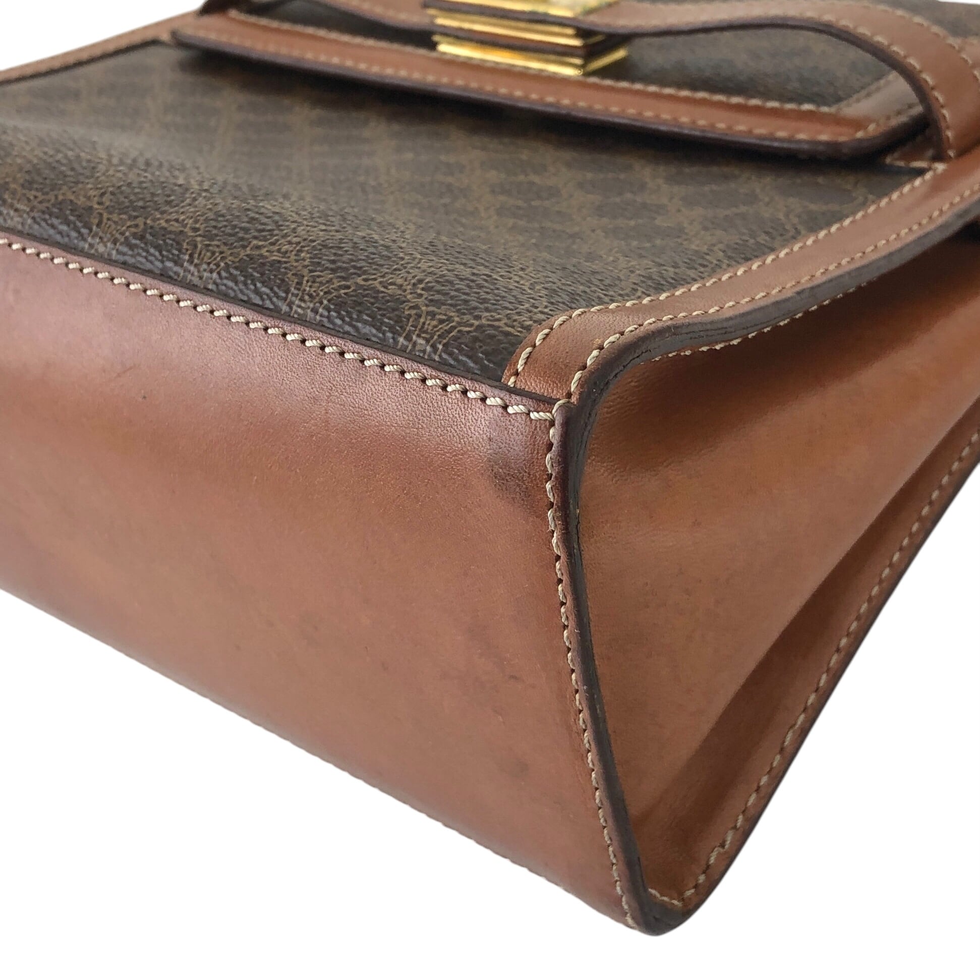 CELINE セリーヌ マカダム ショルダーバッグ ブラウン ターンロック ケリー PVC レザー ミニバッグ vintage ヴィンテージ オールド wgfg5n