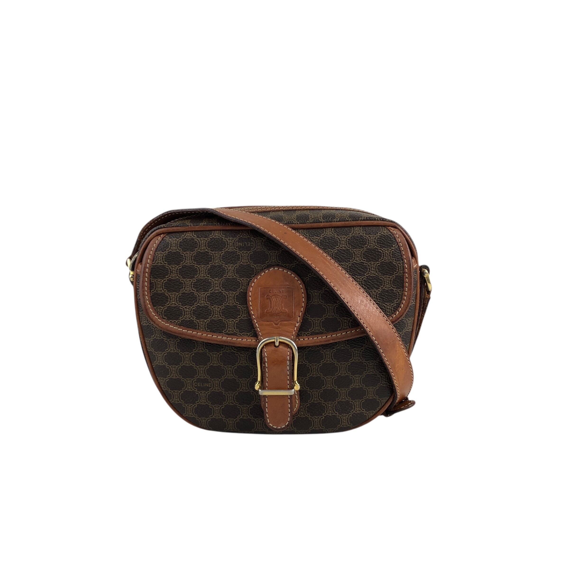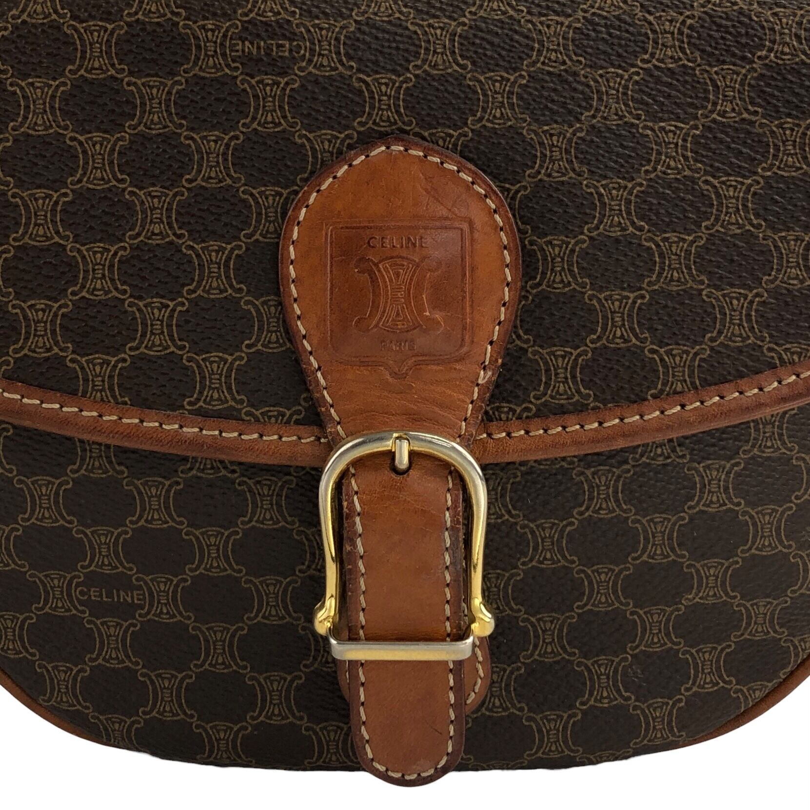 CELINE セリーヌ マカダム ショルダーバッグ ブラウン フロントバックル PVCレザー vintage ヴィンテージ オールド 8cjnf7