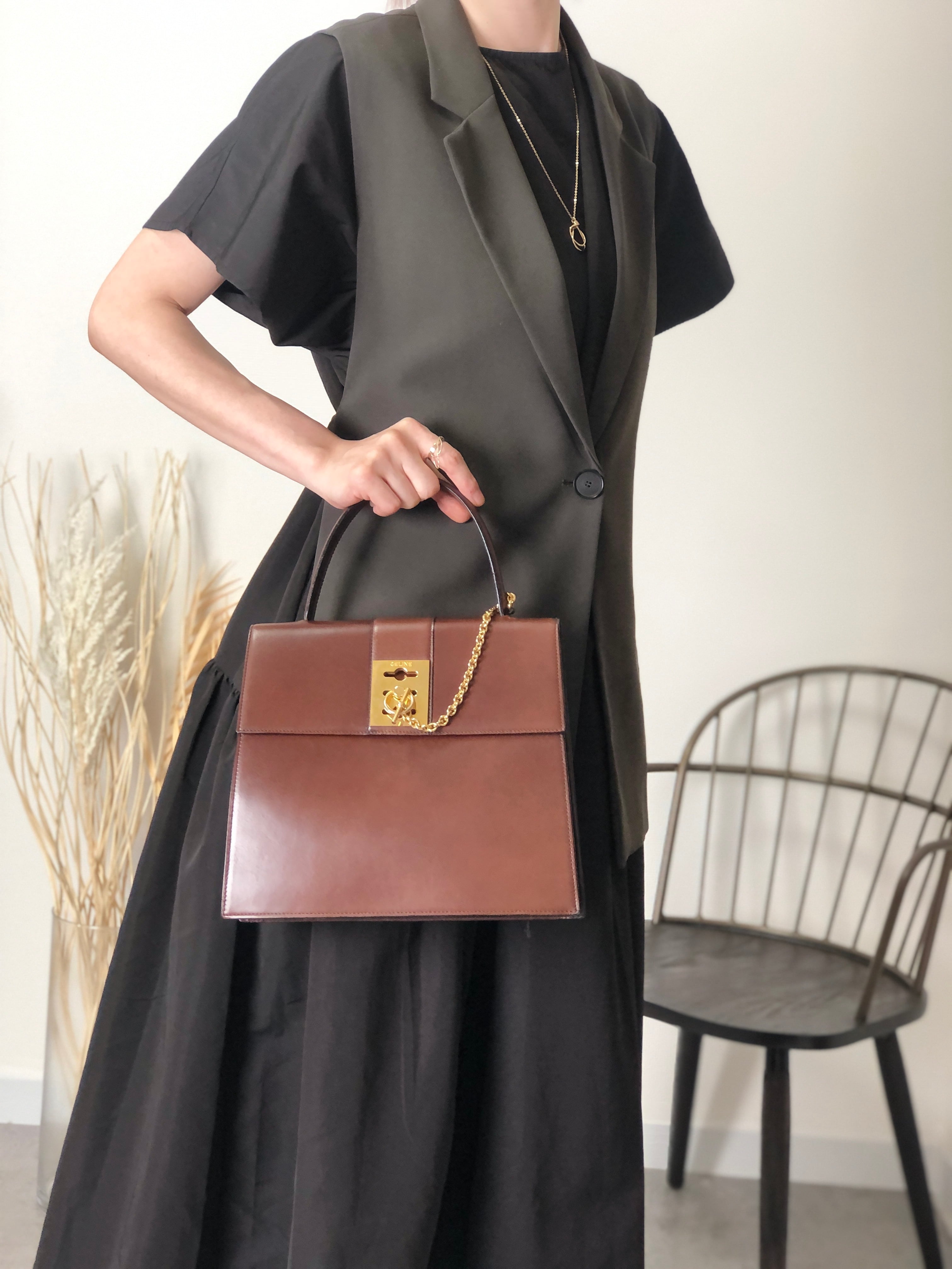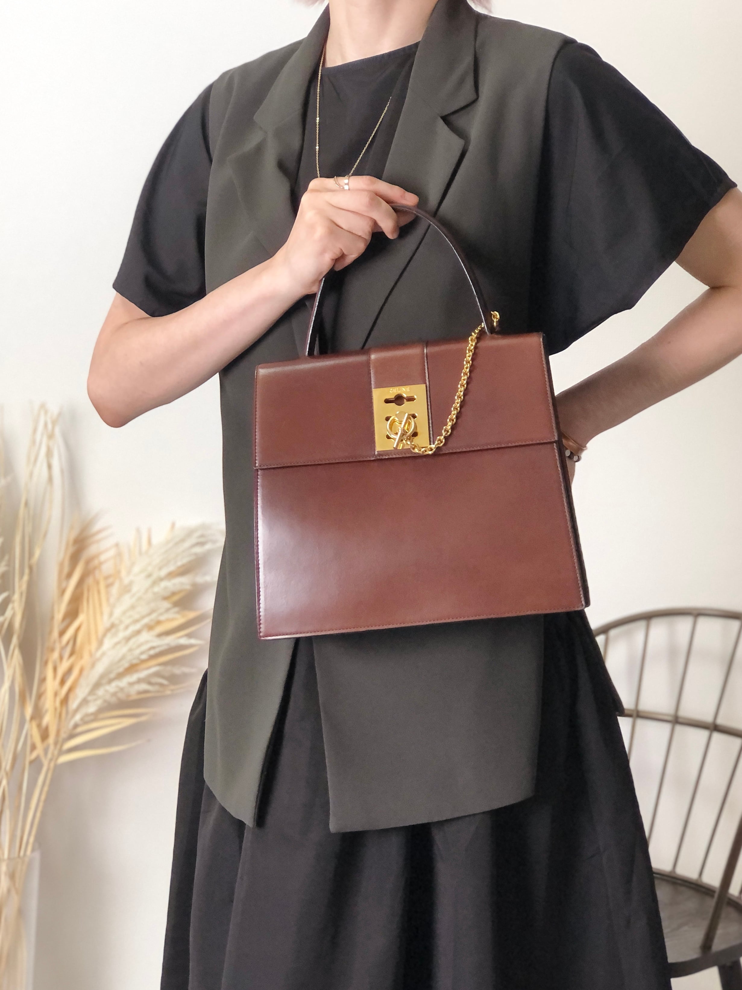CELINE セリーヌ ハンドバッグ ブラウン ガンチーニ チェーン レザー vintage ヴィンテージ オールド 7ffusp