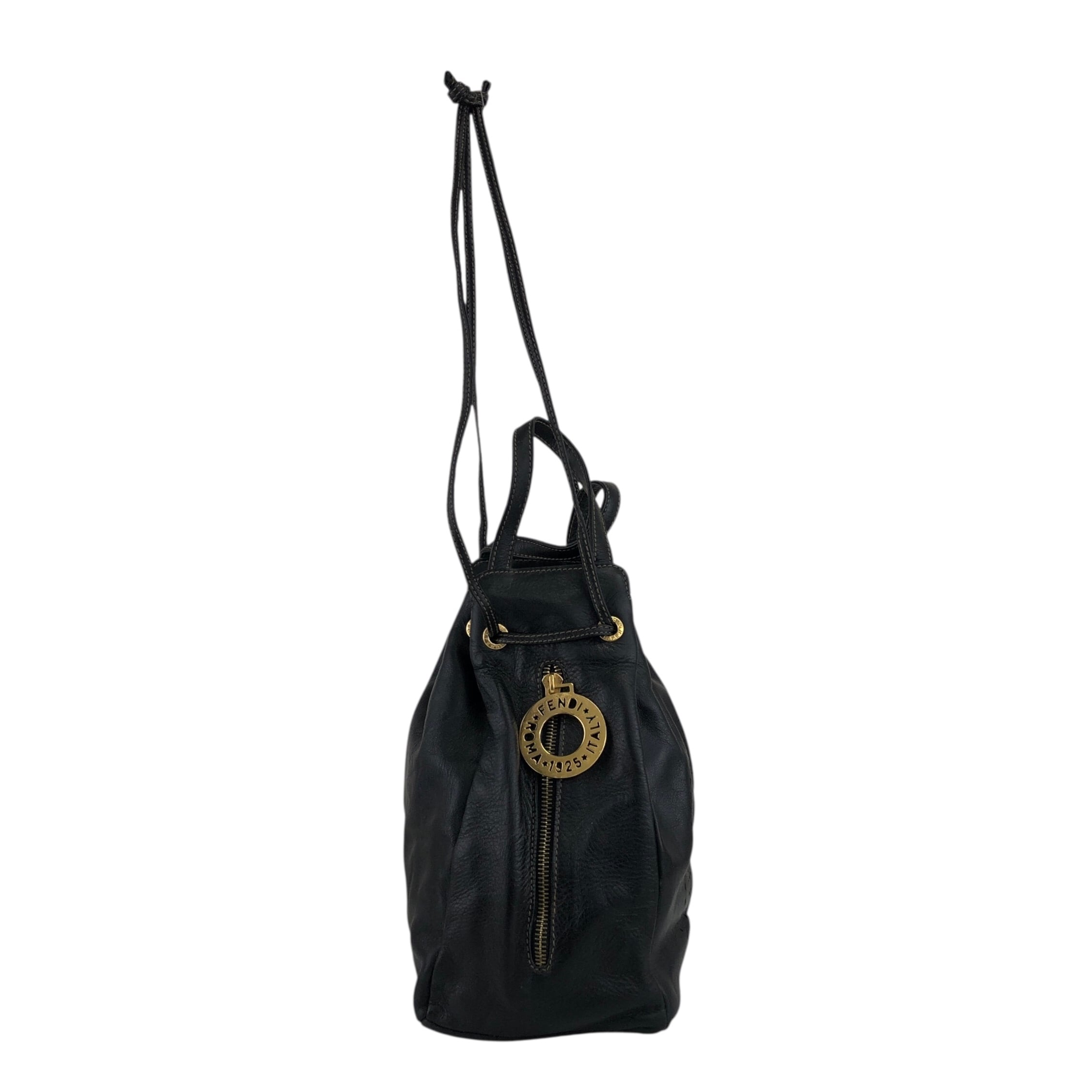 FENDI フェンディ ショルダーバッグ ブラック ロゴ カットアウト レザー 巾着 vintage ヴィンテージ オールド 5bbkpm