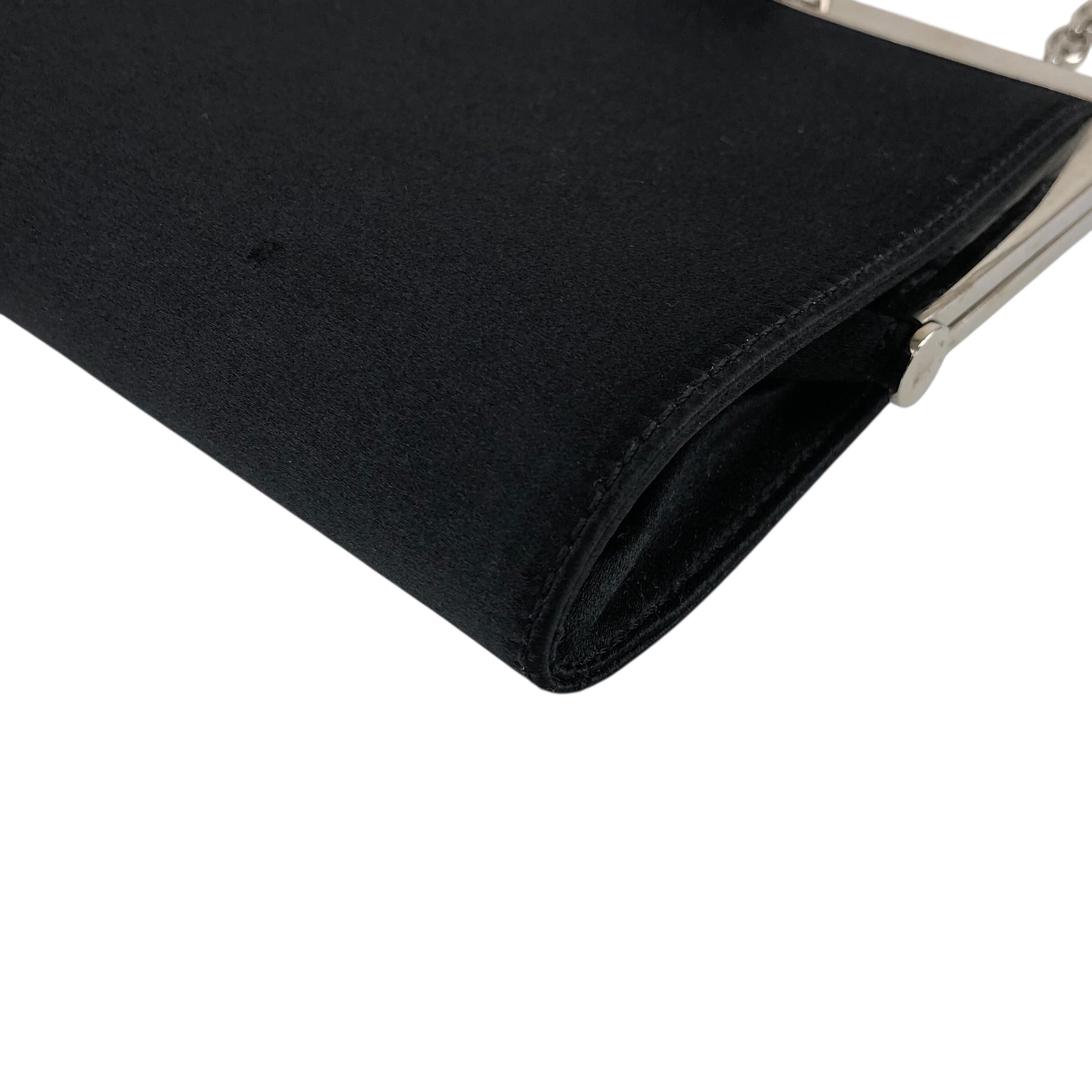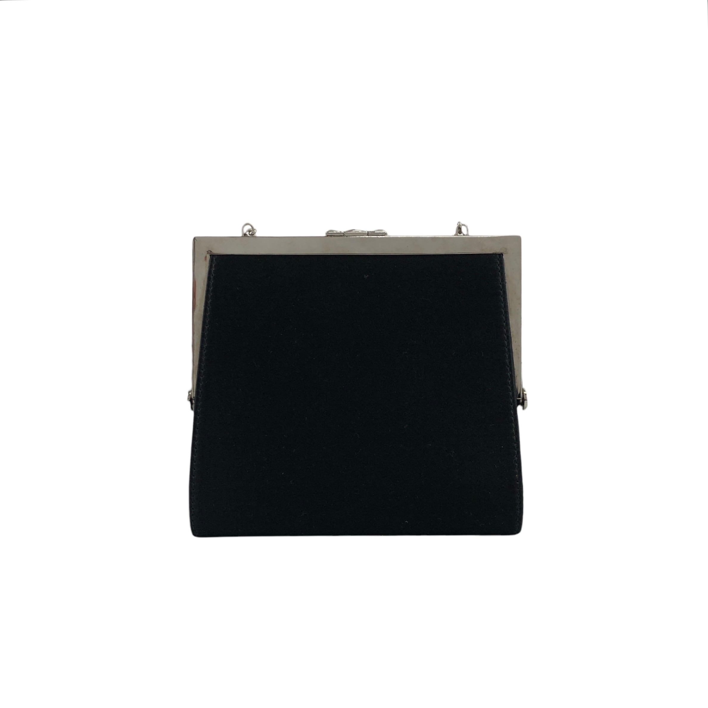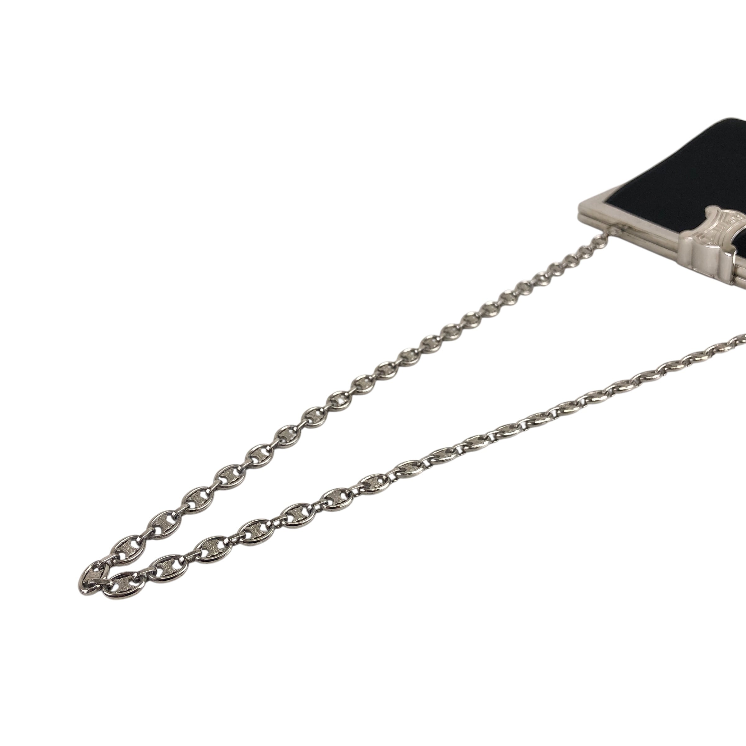 CELINE セリーヌ ショルダーバッグ ブラック シルバー トリオンフ サテン がま口 チェーン vintage ヴィンテージ オールド 857psb
