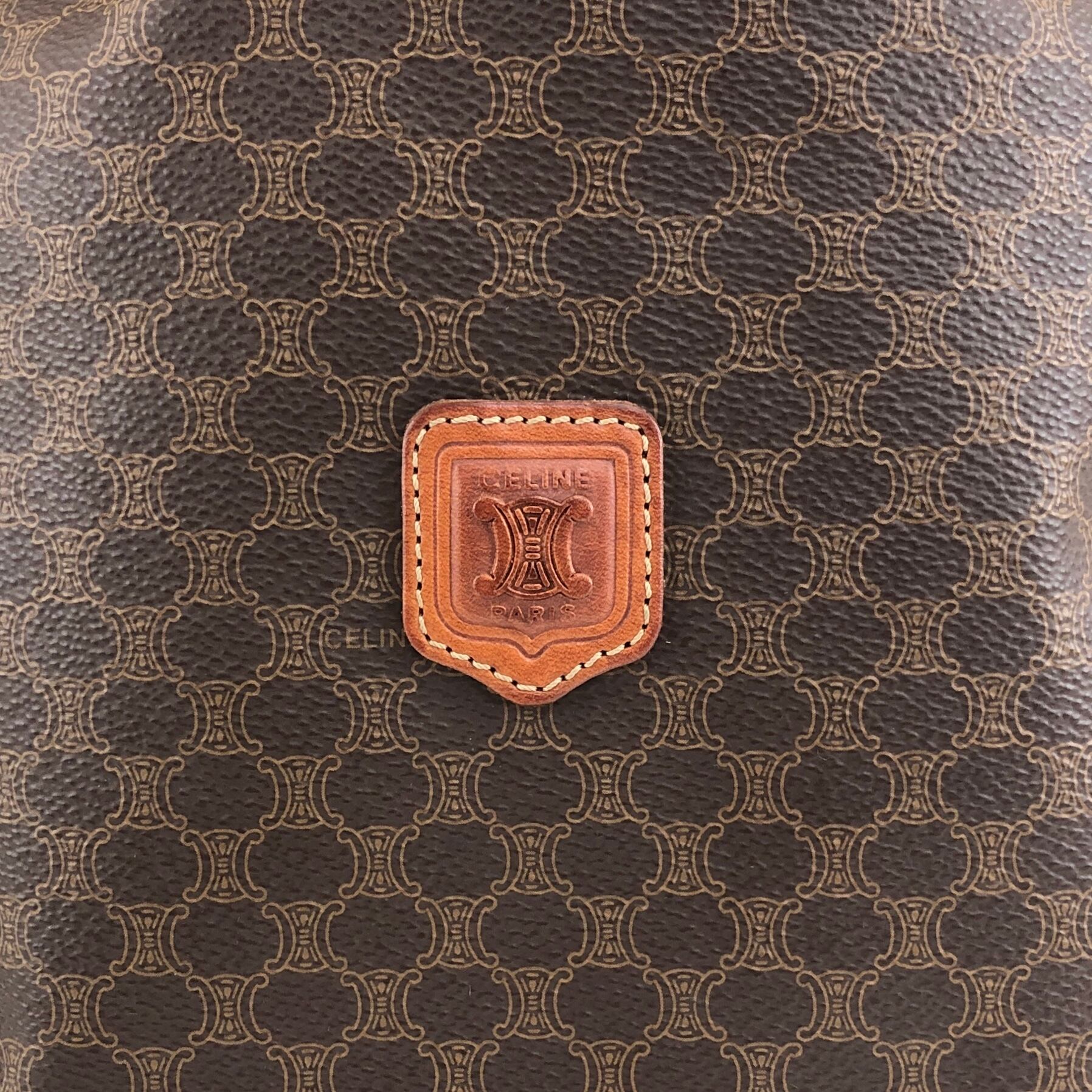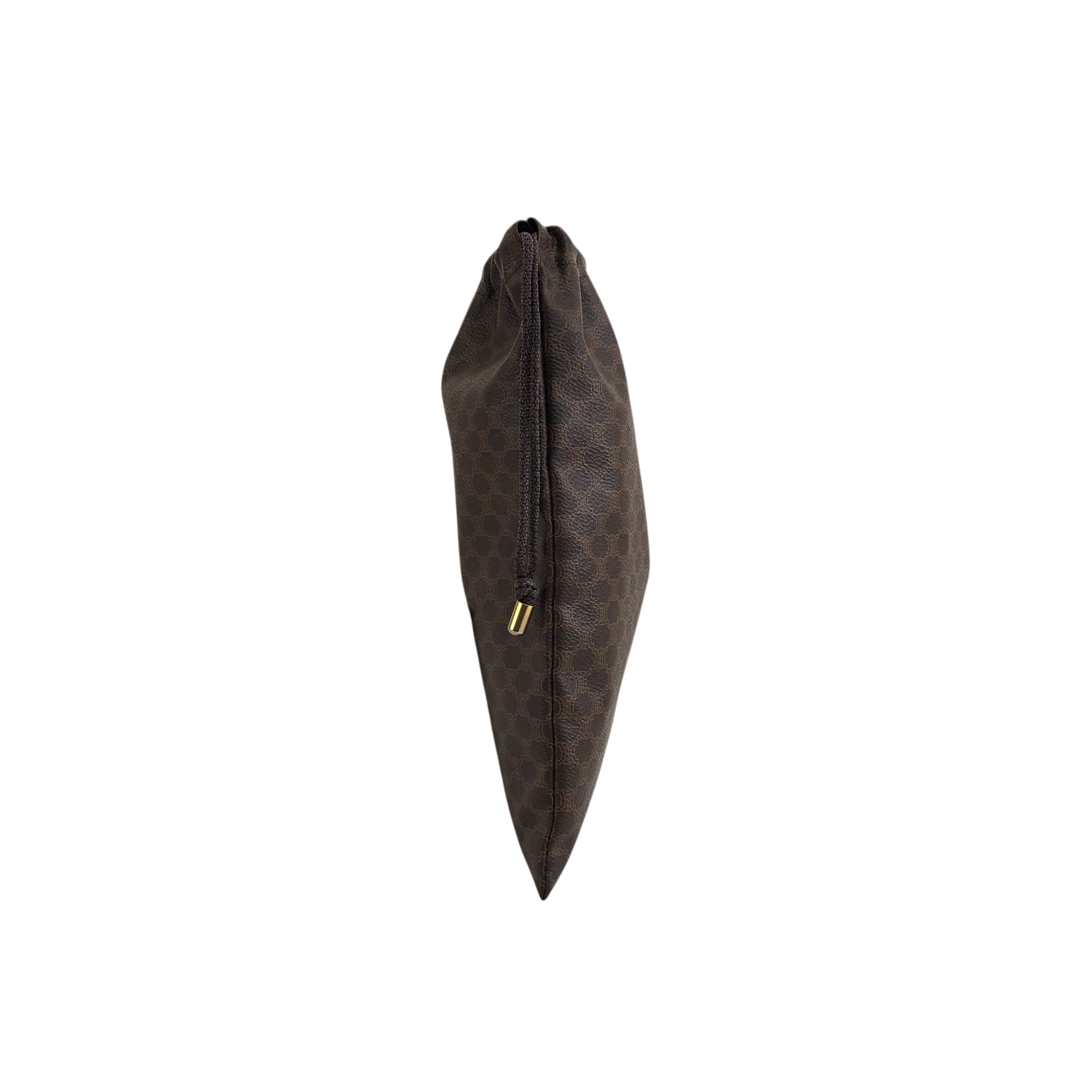 CELINE セリーヌ マカダム ポーチ ブラウン ブラゾン型押し PVC 巾着 vintage ヴィンテージ オールド 6ve7d6