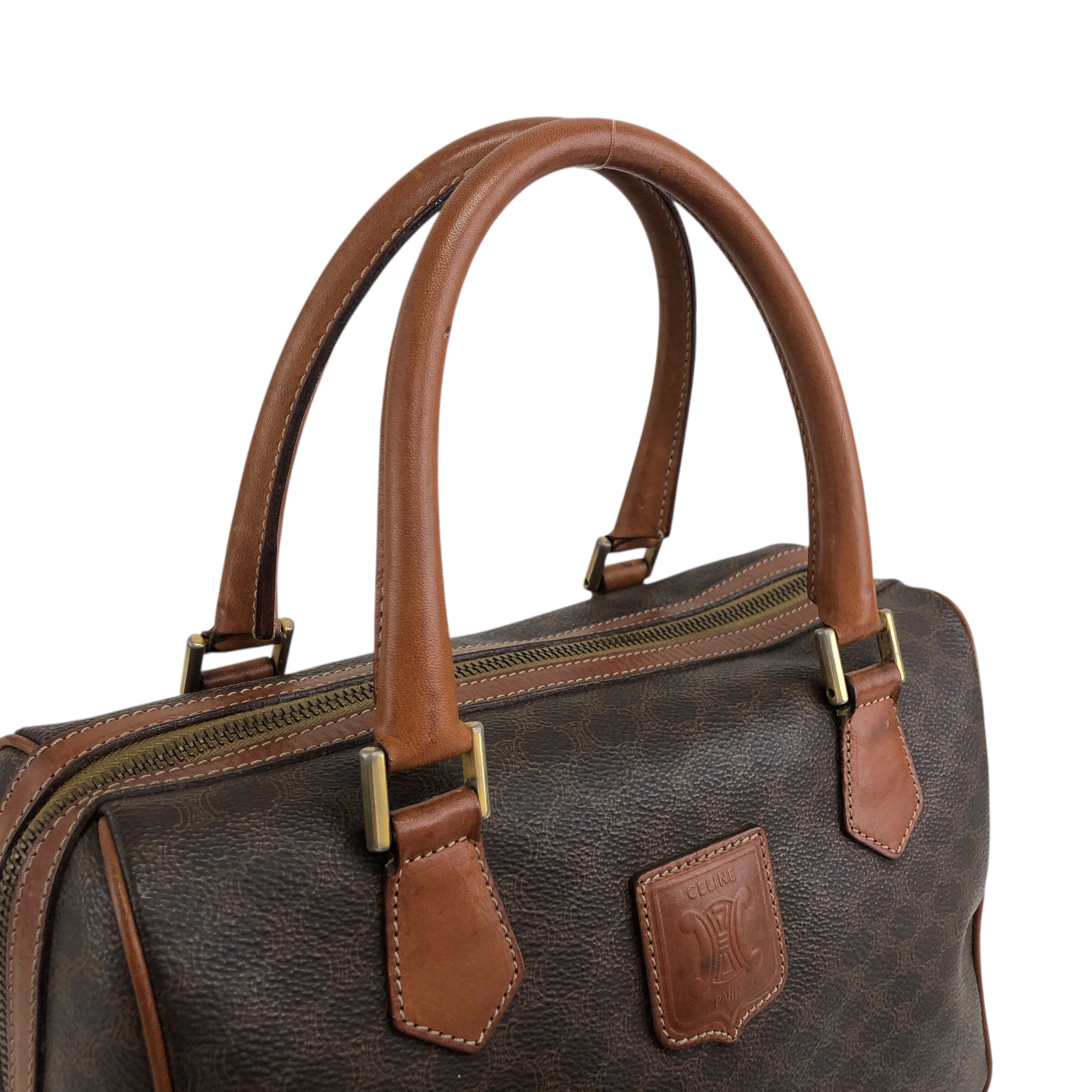 CELINE セリーヌ マカダム ハンドバッグ ブラウン ブラゾン型押し PVC レザー ミニボストン vintage ヴィンテージ オールド akh2uk