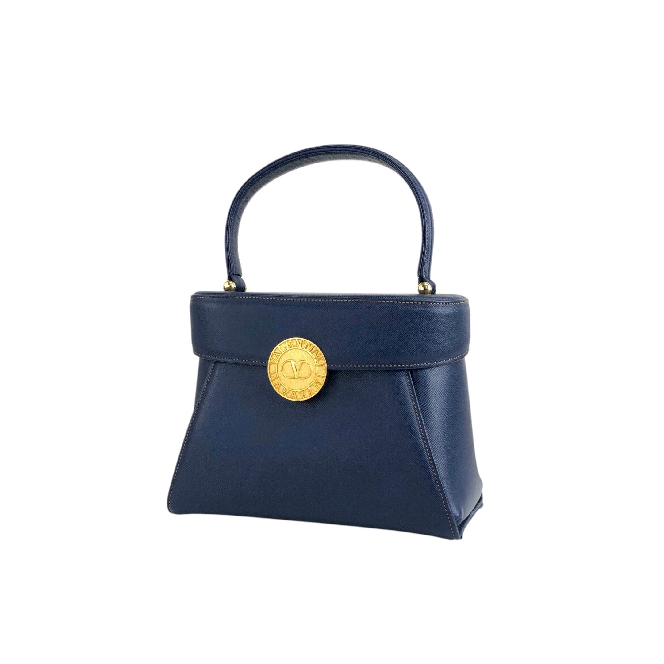 VALENTINO GARAVANI ヴァレンティノガラヴァーニ ハンドバッグ ブルー メダル レザ トップハンドル vintage ヴィンテージ オールド d5kjkj