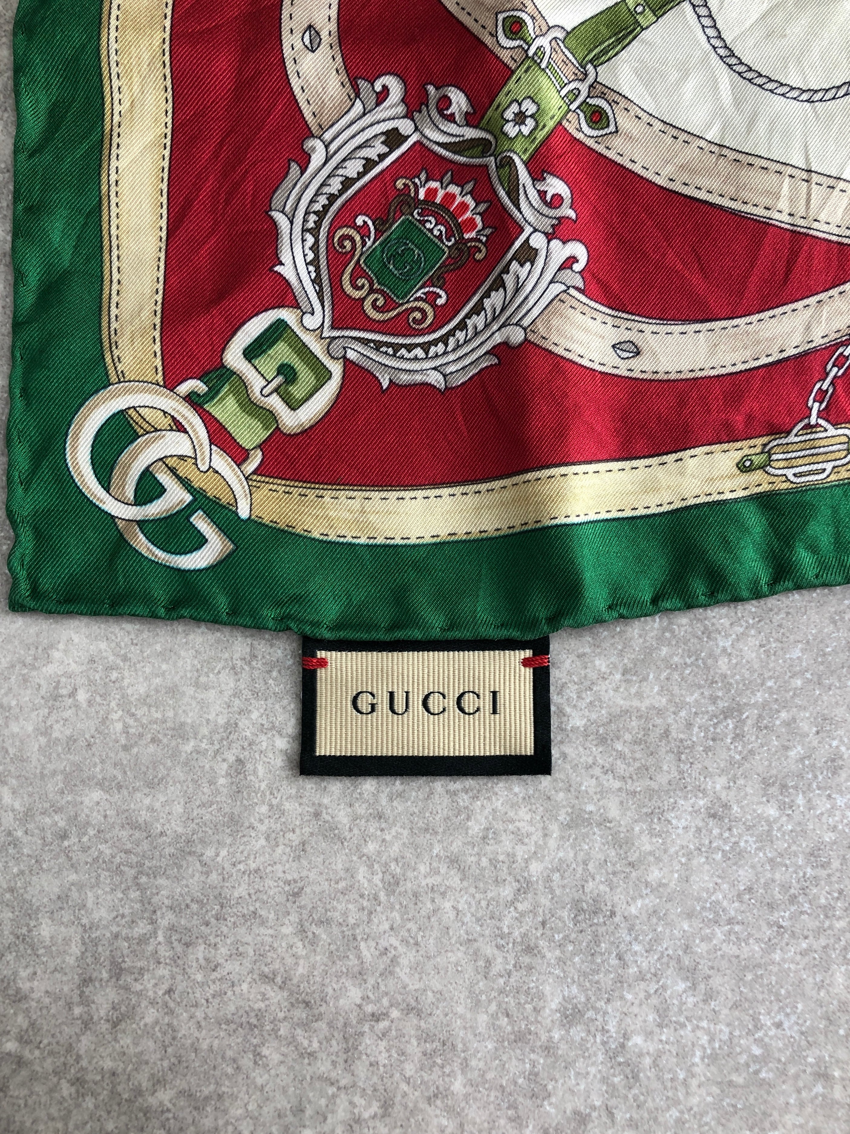 GUCCI グッチ スカーフ グリーン シルク 総柄 vintage ヴィンテージ オールド j8dbd8