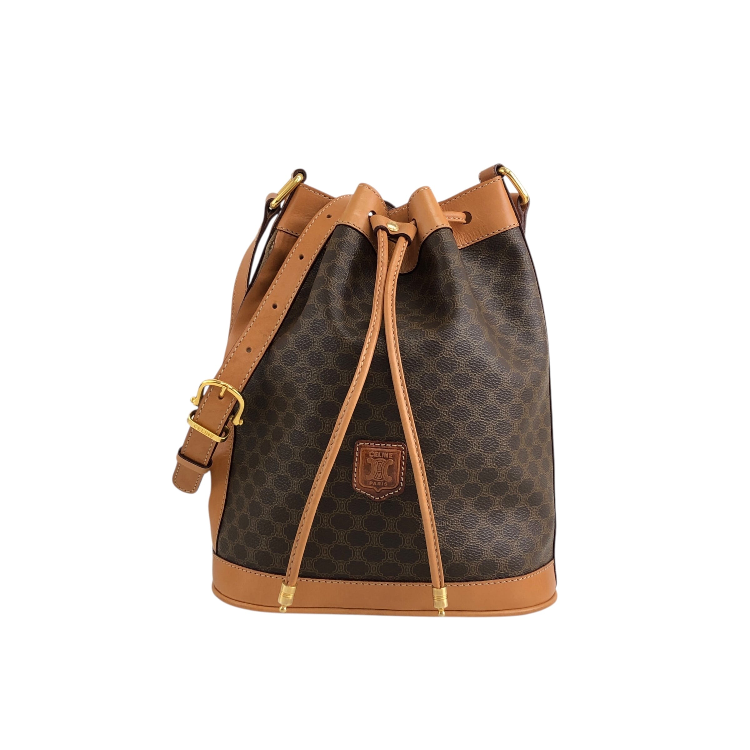 CELINE セリーヌ マカダム ショルダーバッグ ブラウン ブラゾン型押し PVC レザー 巾着 vintage ヴィンテージ オールド yp4ki3