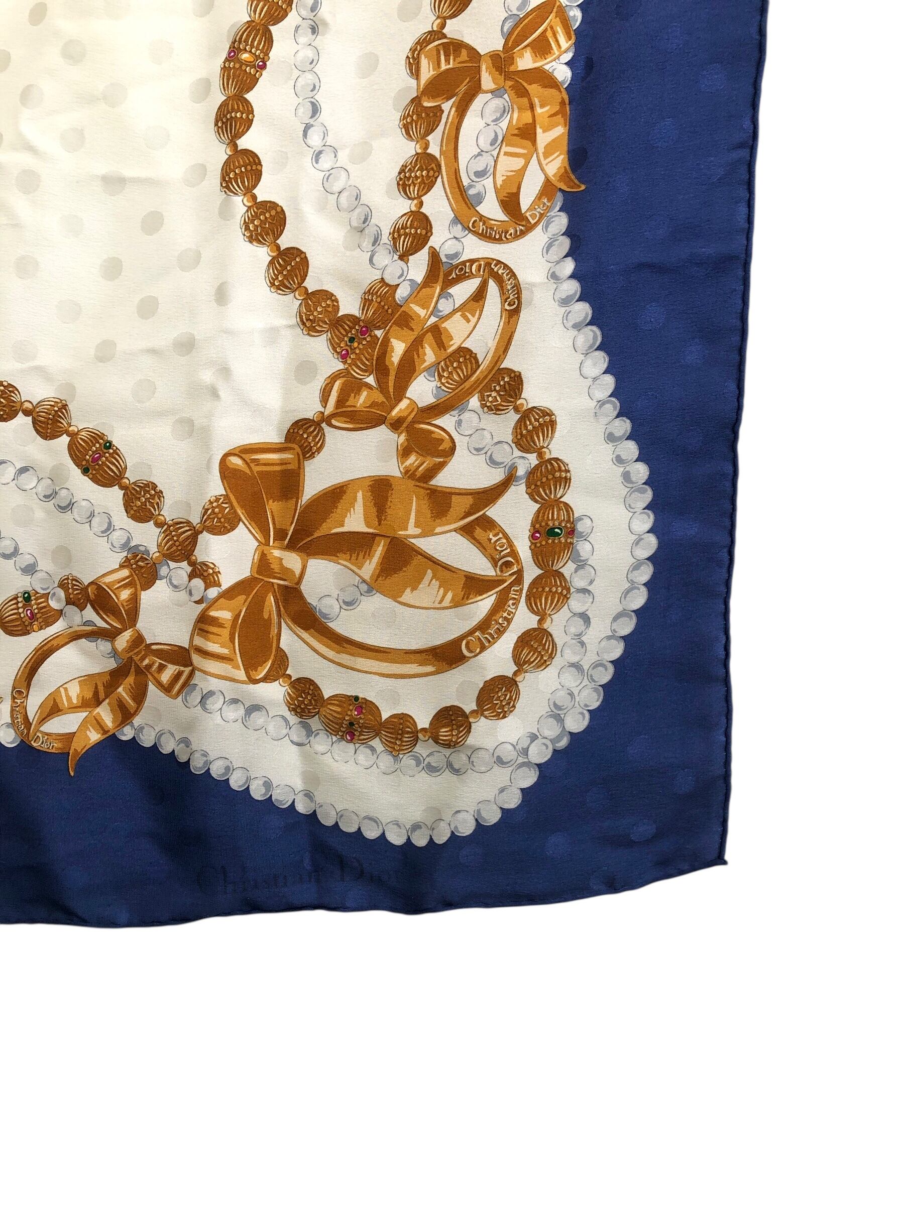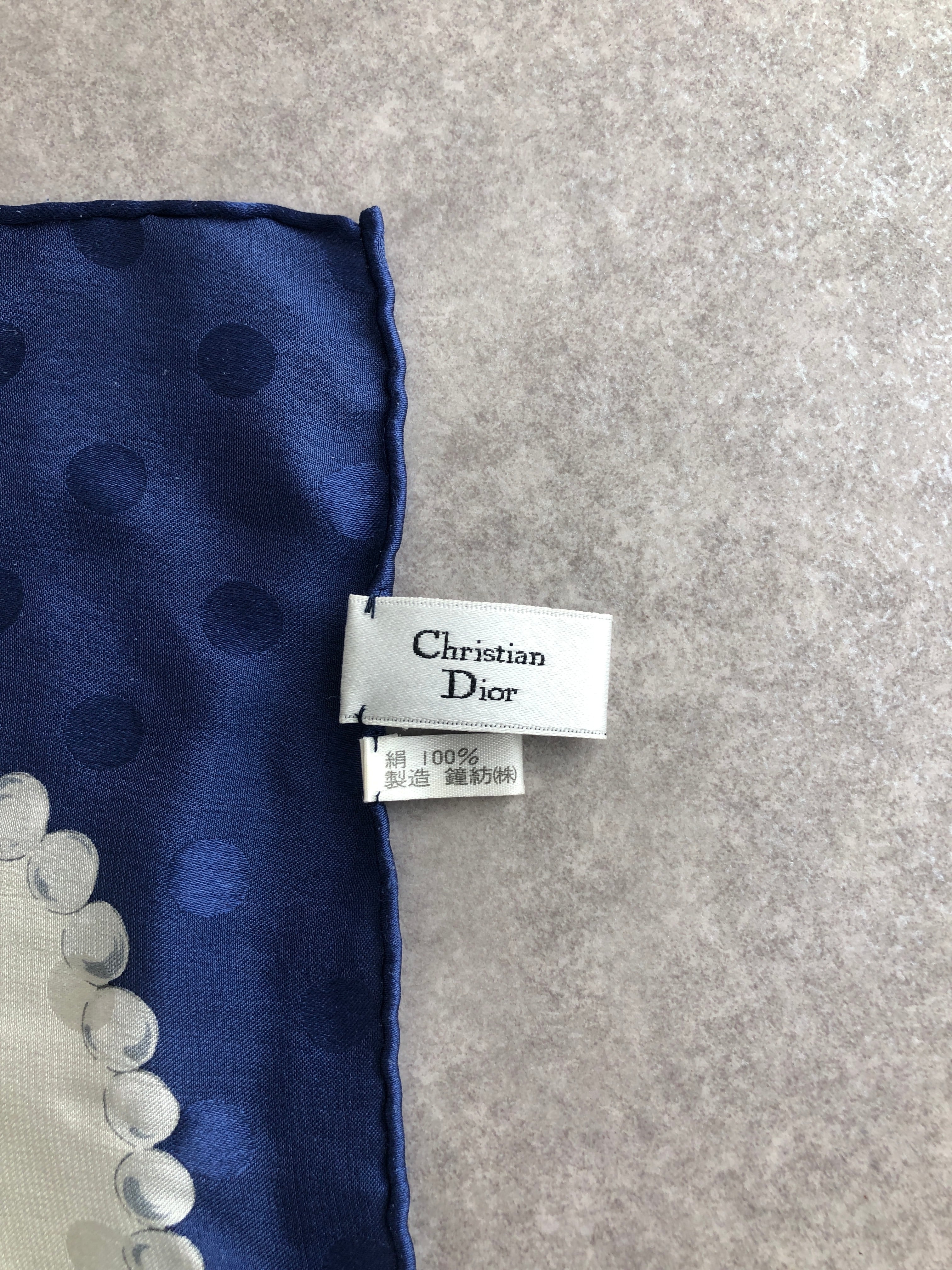 Christian Dior クリスチャン ディオール スカーフ ブルー ホワイト シルク リボン vintage ヴィンテージ オールド 4m2iap