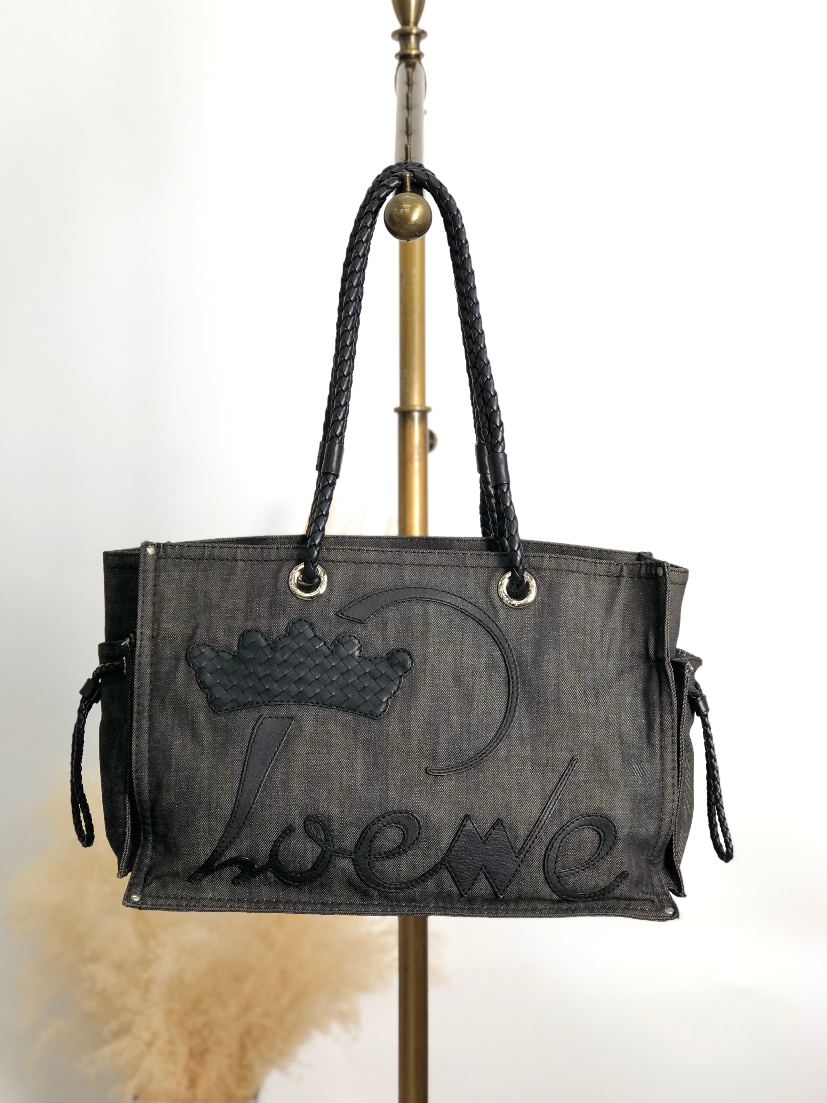 LOEWE ロエベ トートバッグ ブラック アナグラム クラウン デニム vintage ヴィンテージ オールド wcz5de