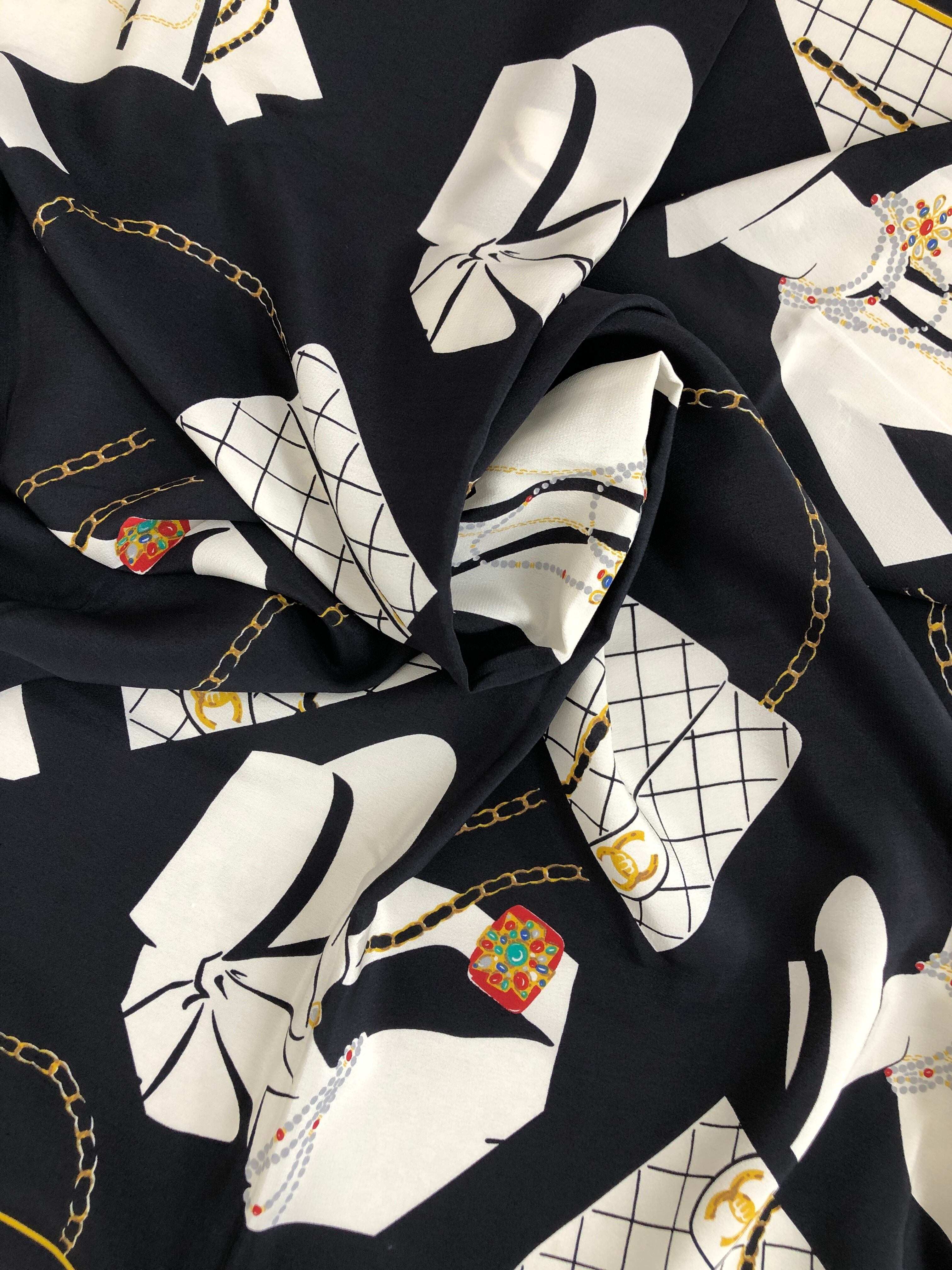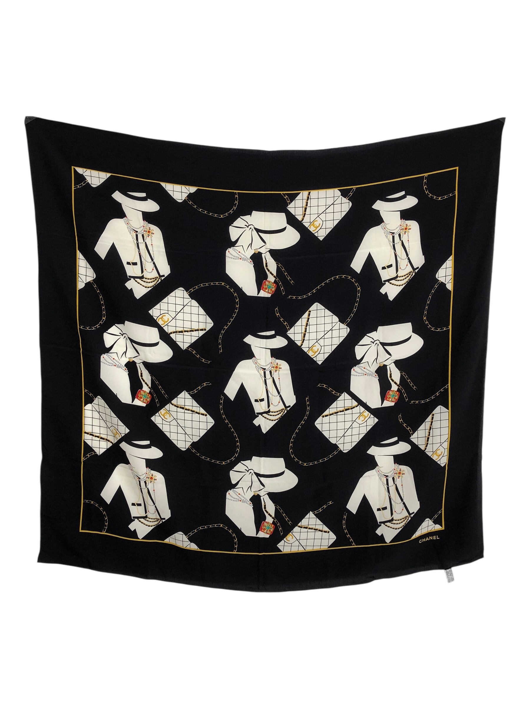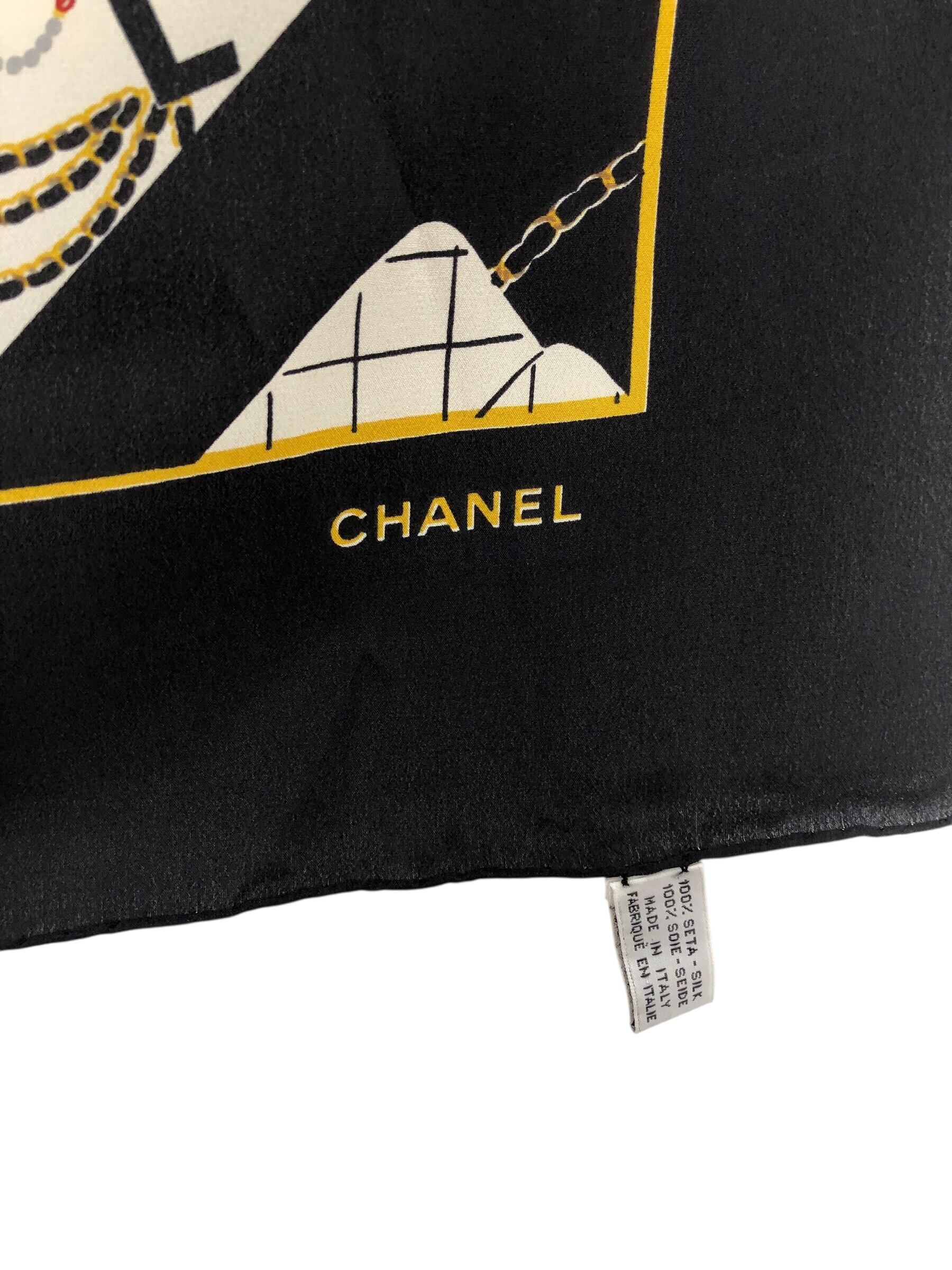 CHANEL シャネル マドモアゼル スカーフ ブラック ホワイト シルク vintage ヴィンテージ オールド r3ea4i
