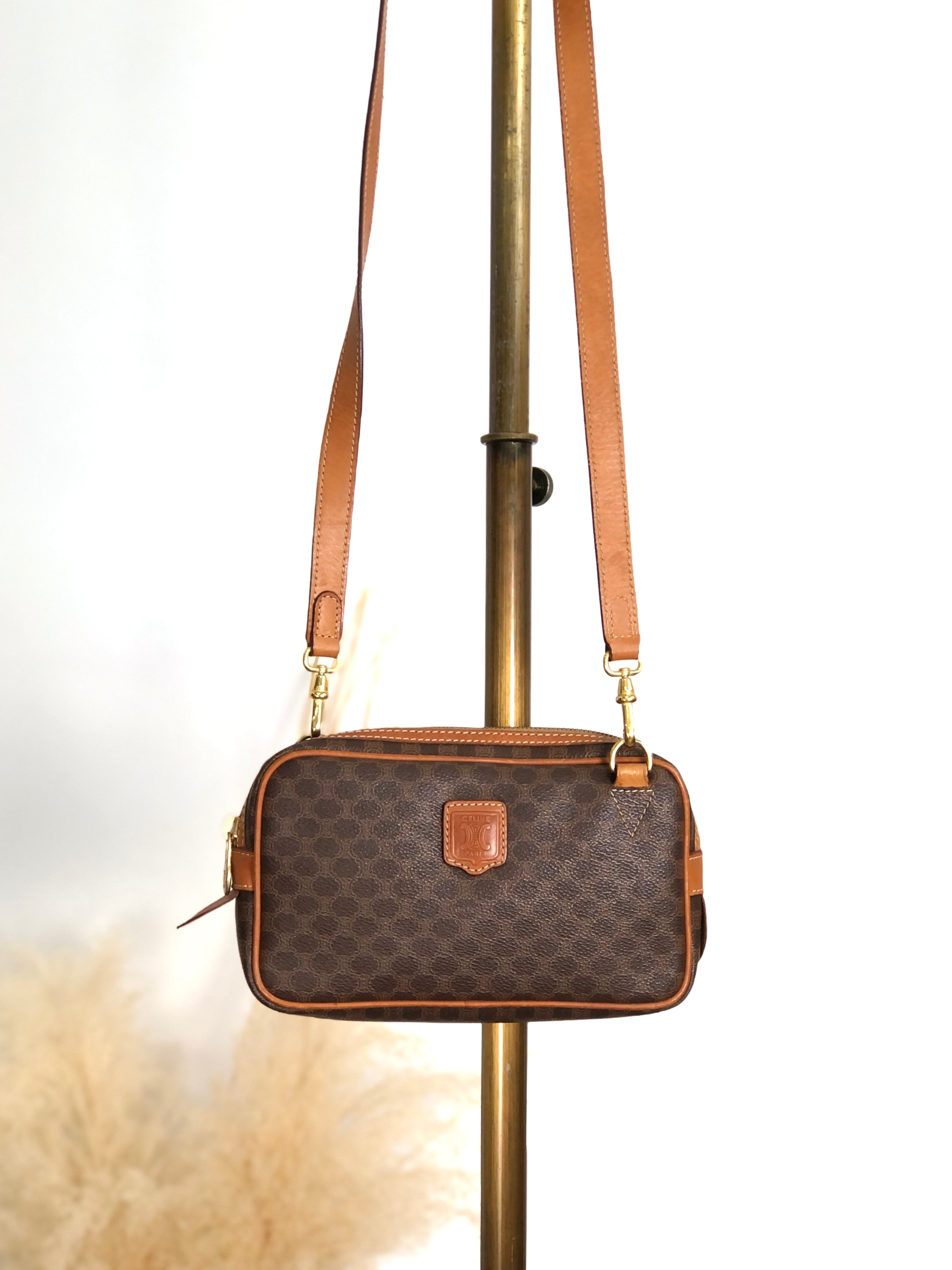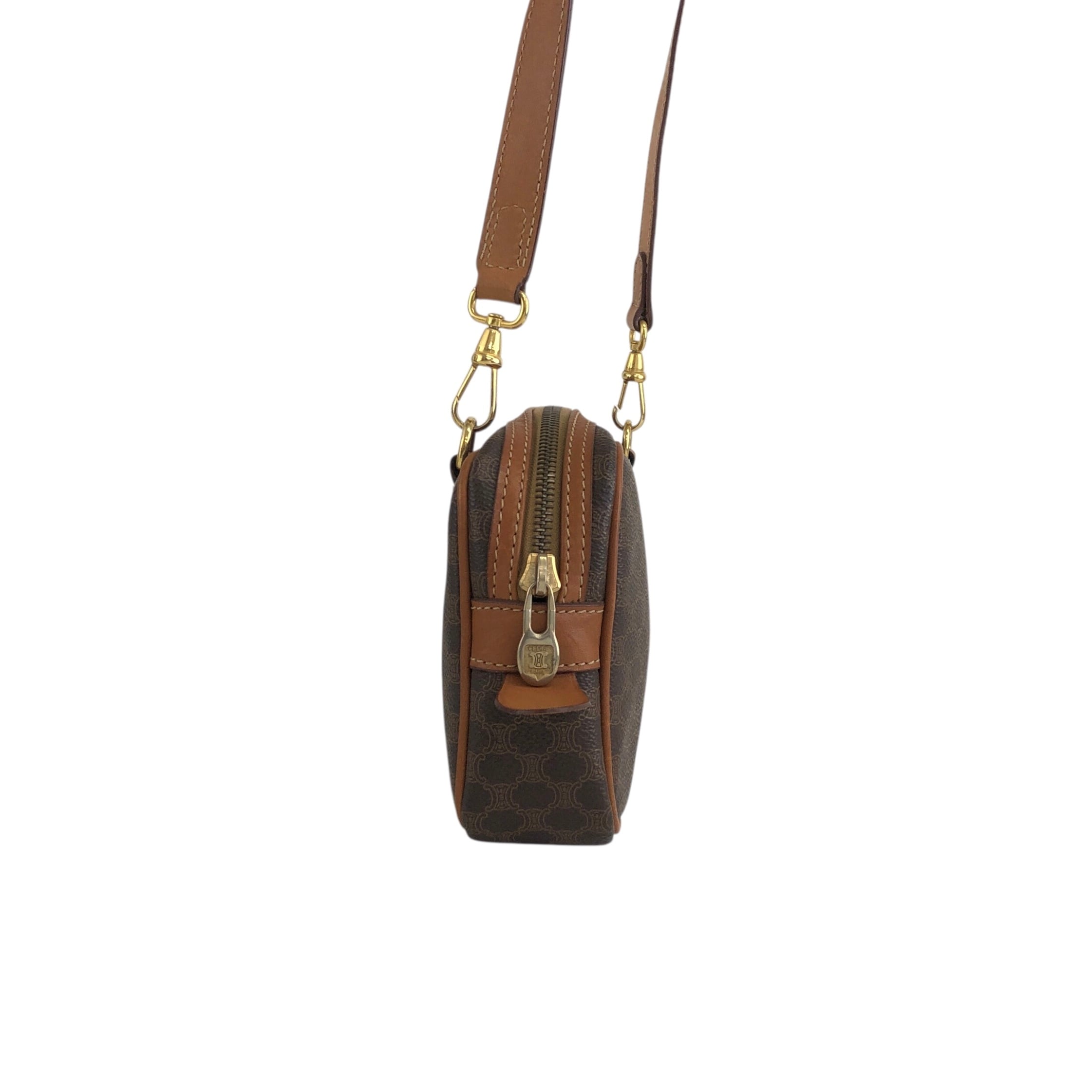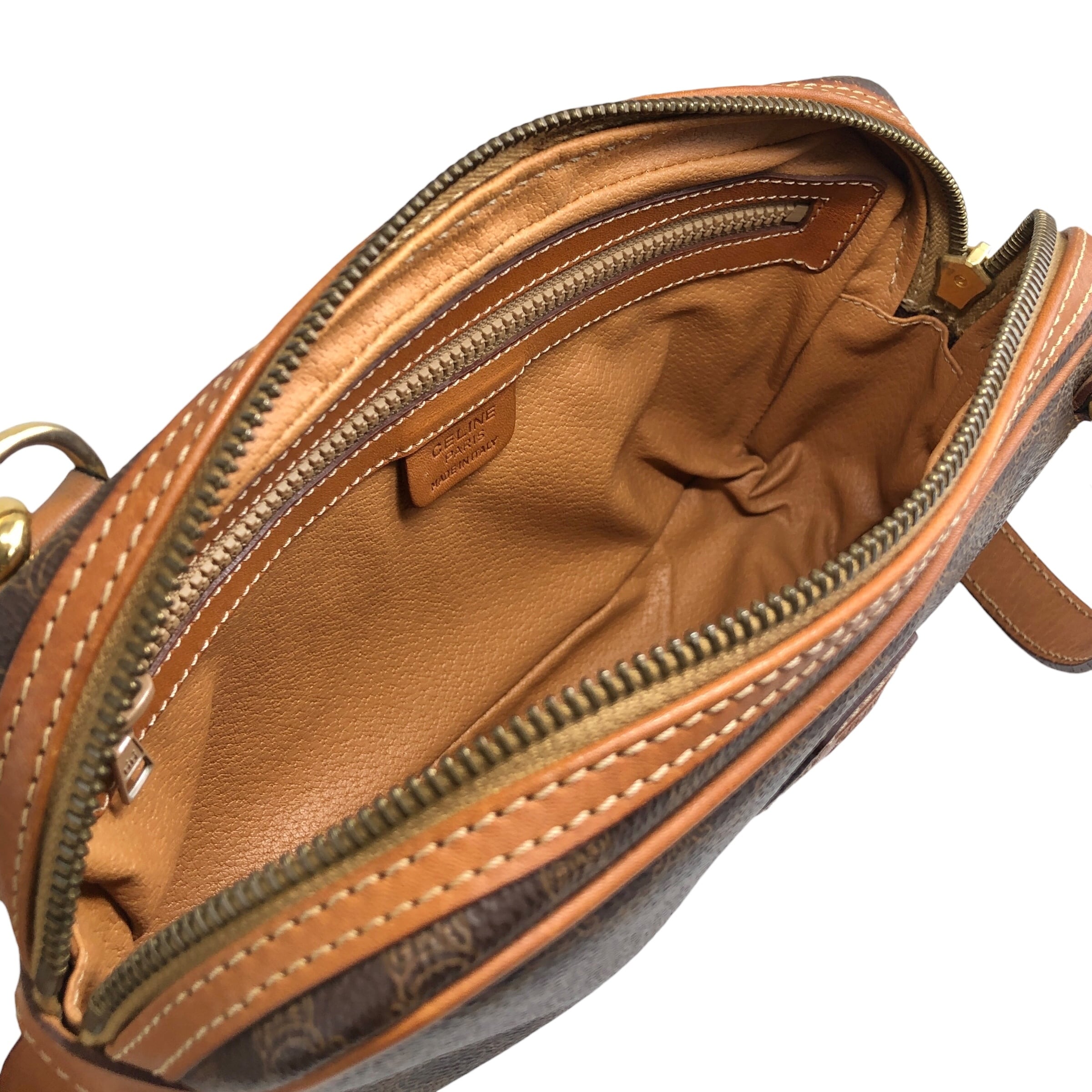 CELINE セリーヌ マカダム ショルダーバッグ ブラウン ブラゾン型押し PVC レザー vintage ヴィンテージ オールド f2gsiu