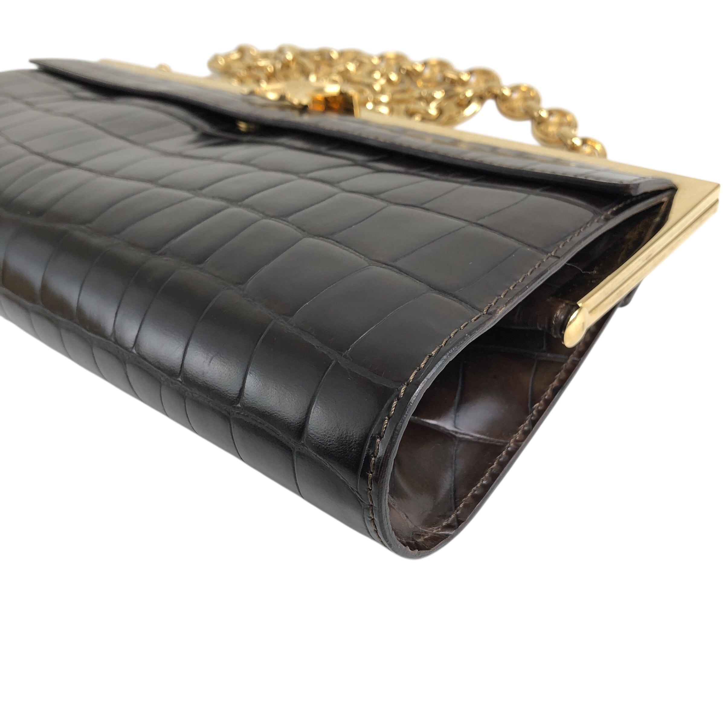 CELINE セリーヌ ショルダーバッグ ブラウン トリオンフ レザー クロコ型押し チェーン セミショルダーバッグ vintage ヴィンテージ オールド tedt2b