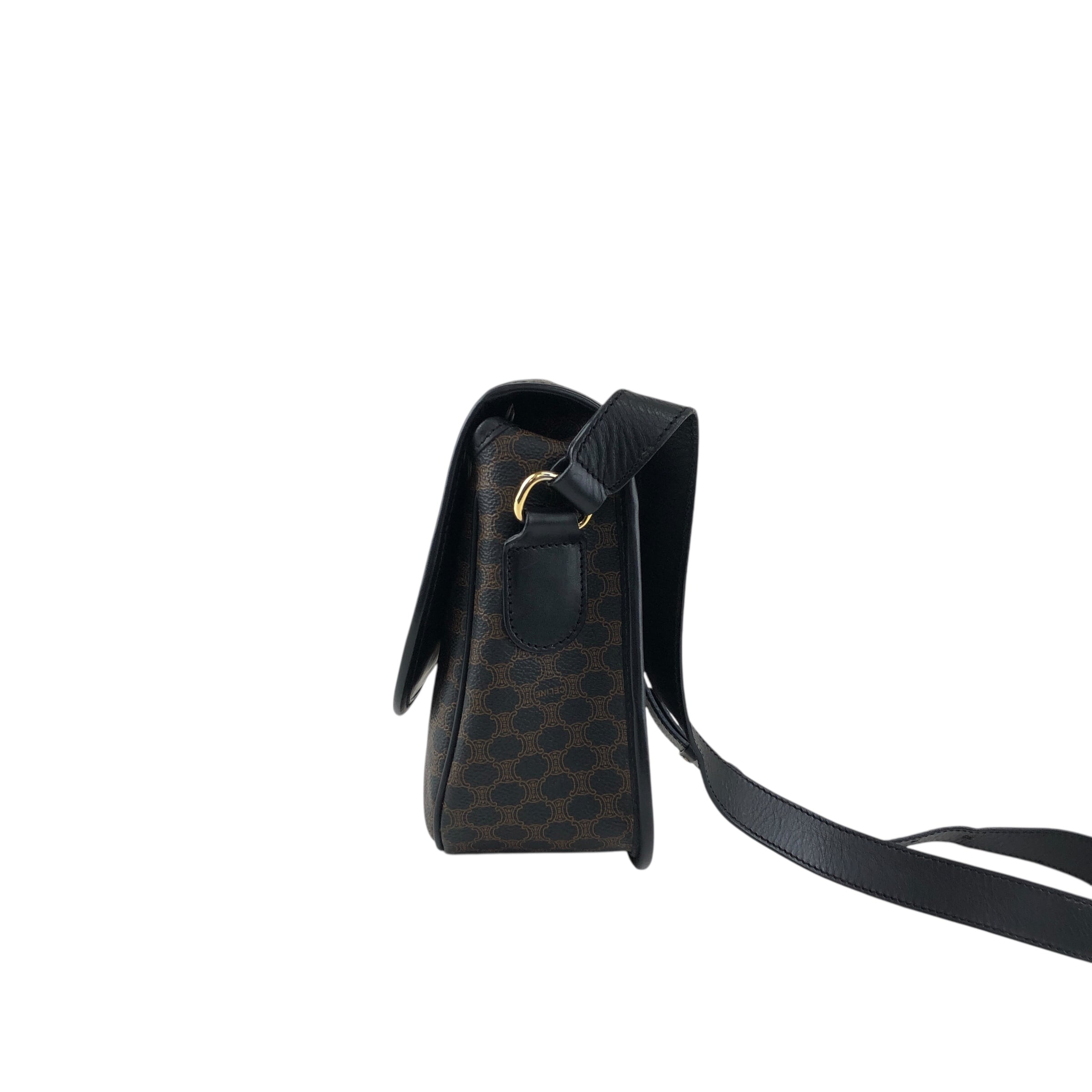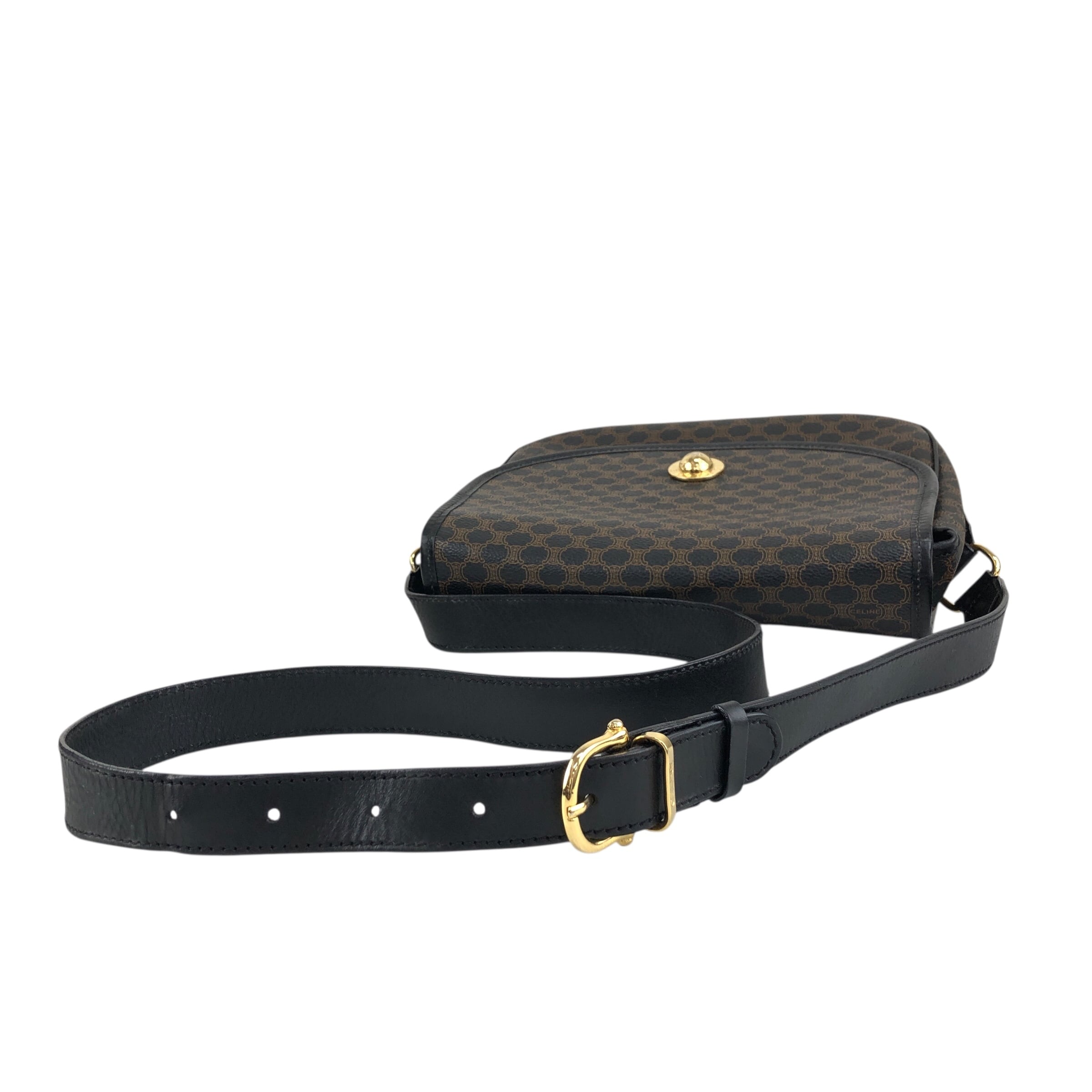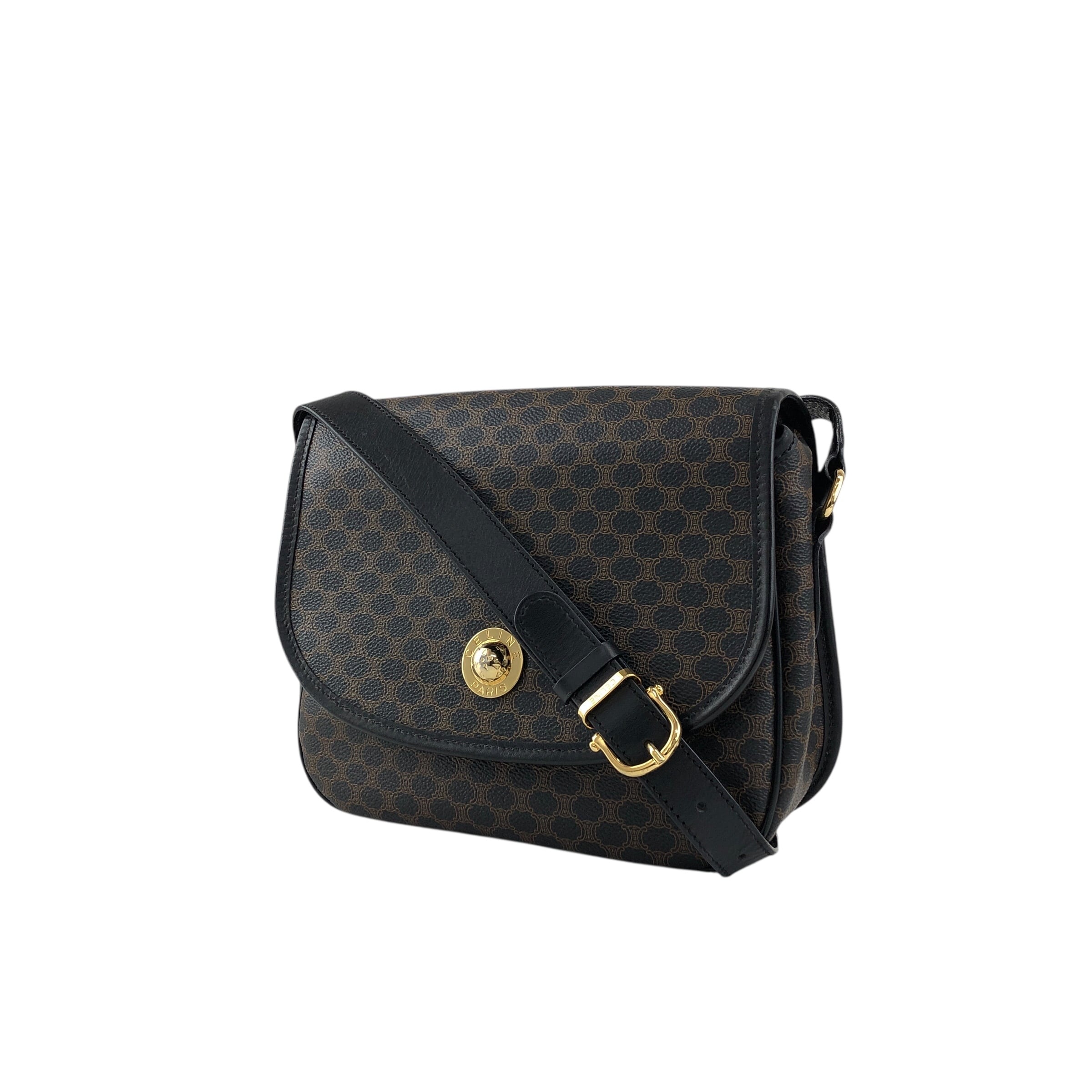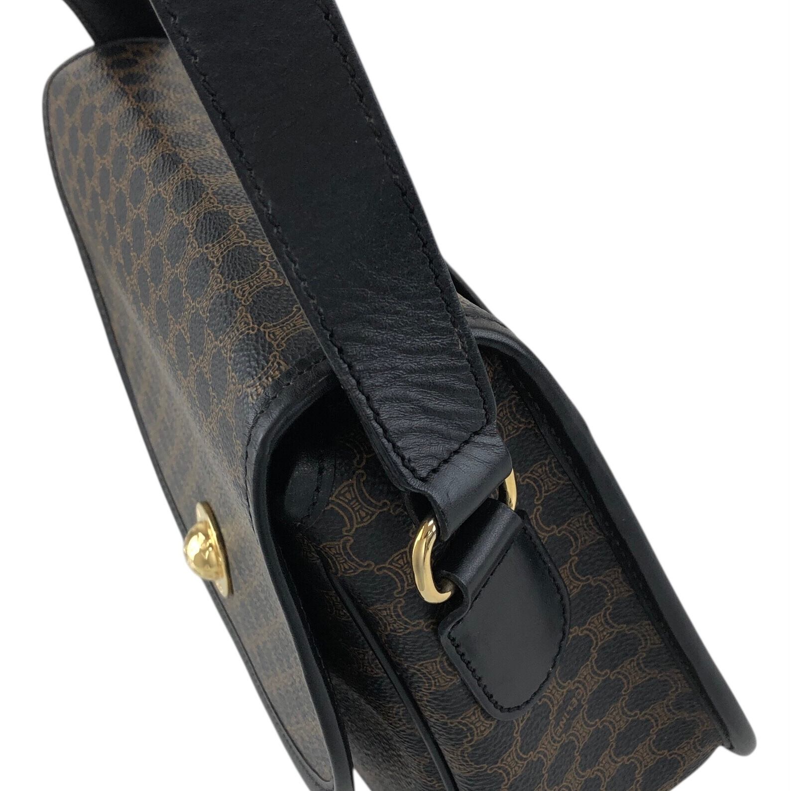CELINE セリーヌ マカダム ショルダーバッグ ブラック スターボール PVC レザー フラップ vintage ヴィンテージ オールド a8awaa