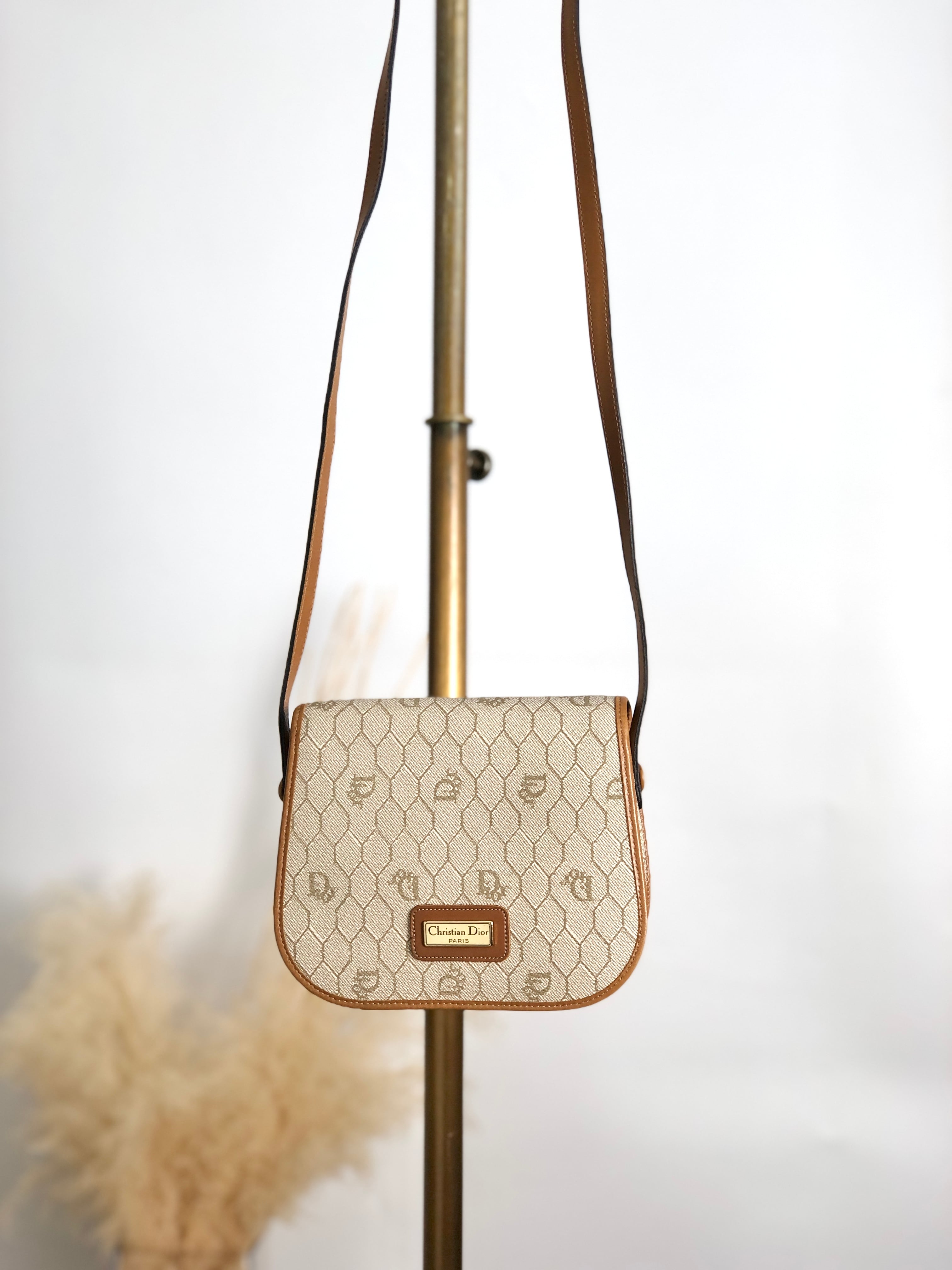Christian Dior クリスチャン ディオール ハニカム柄 ショルダーバッグ ベージュ ロゴ PVC レザー フラップ vintage ヴィンテージ オールド tumbw8