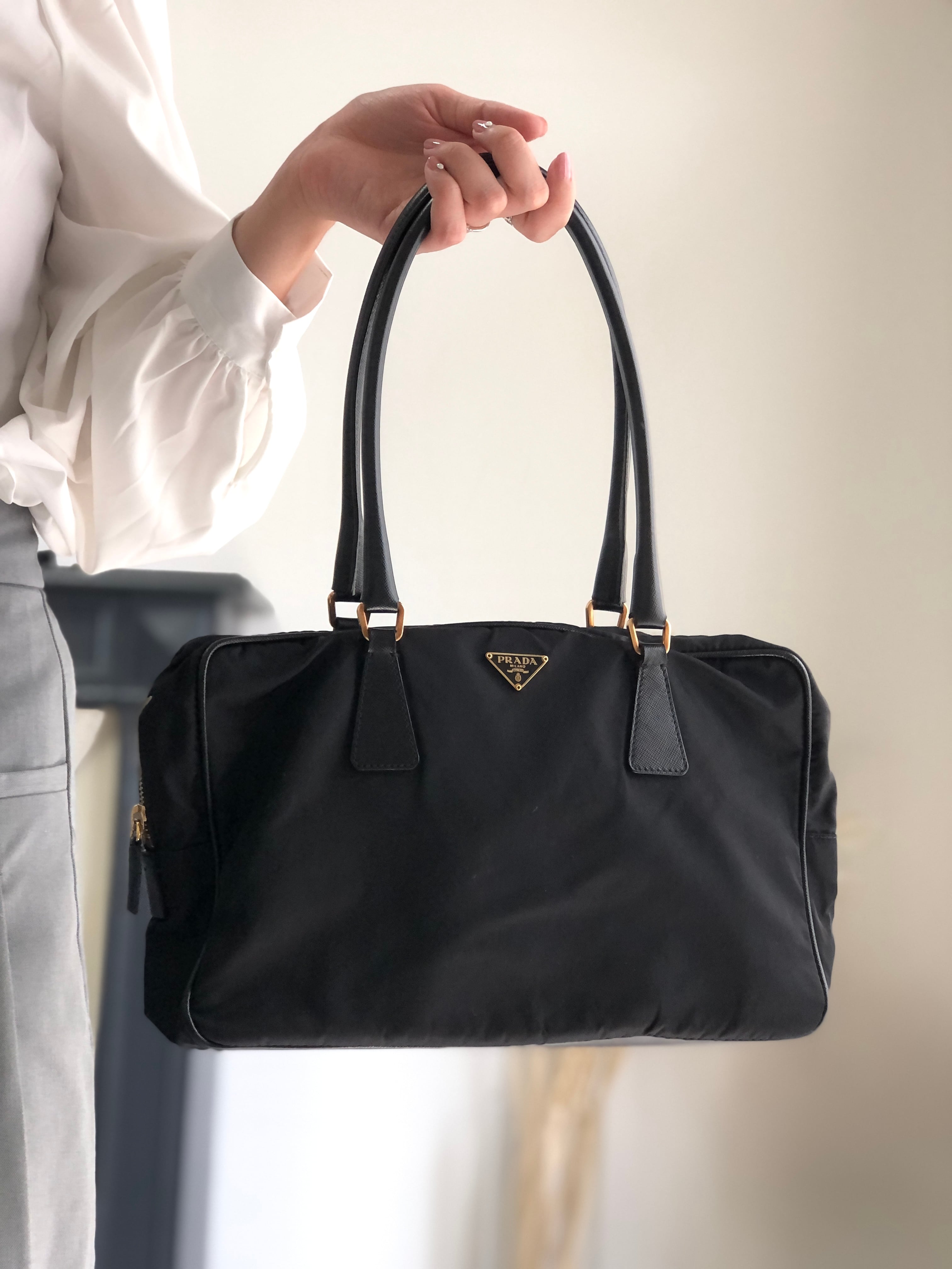 PRADA プラダ ハンドバッグ ブラック トライアングルロゴ ナイロン ミニボストン vintage ヴィンテージ オールド jgrnxc