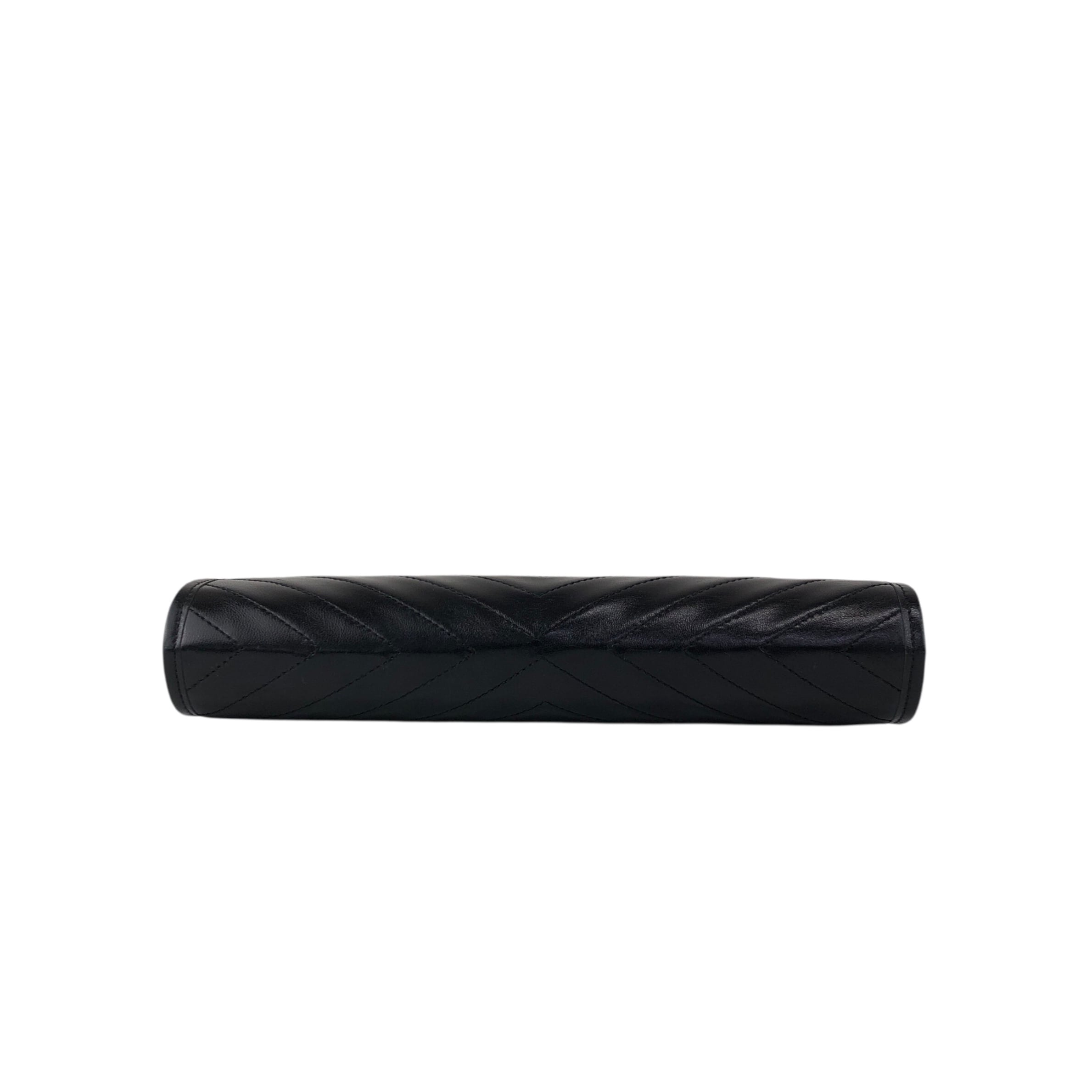 Yves Saint Laurent イヴ・サンローラン クラッチバッグ ブラック YSL ロゴ型押し レザー バイアステッチ vintage ヴィンテージ オールド b3p3mj