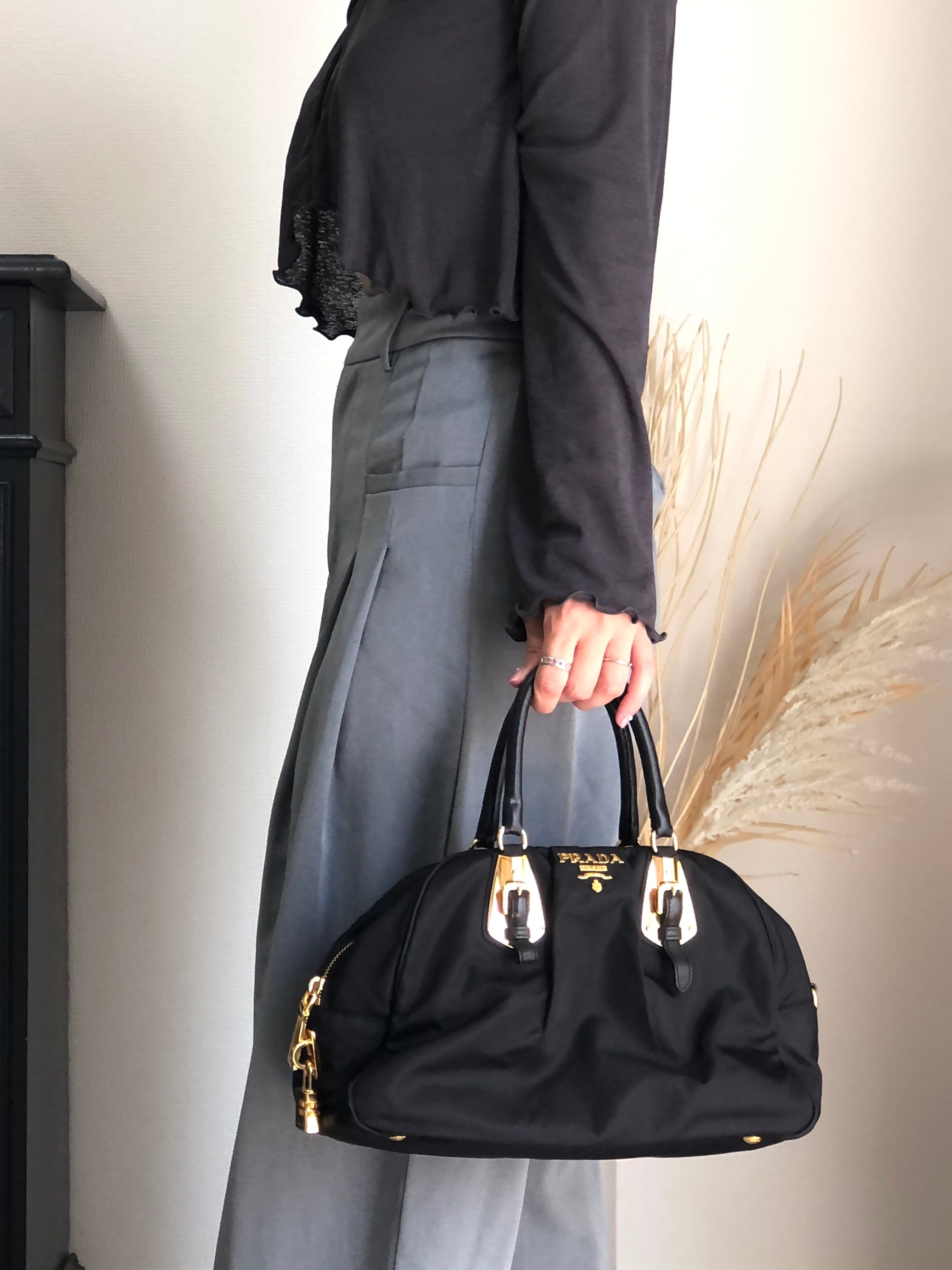 PRADA プラダ ハンドバッグ ブラック ロゴ ナイロン 2way カデナ ミニボストン vintage ヴィンテージ オールド is5a6n