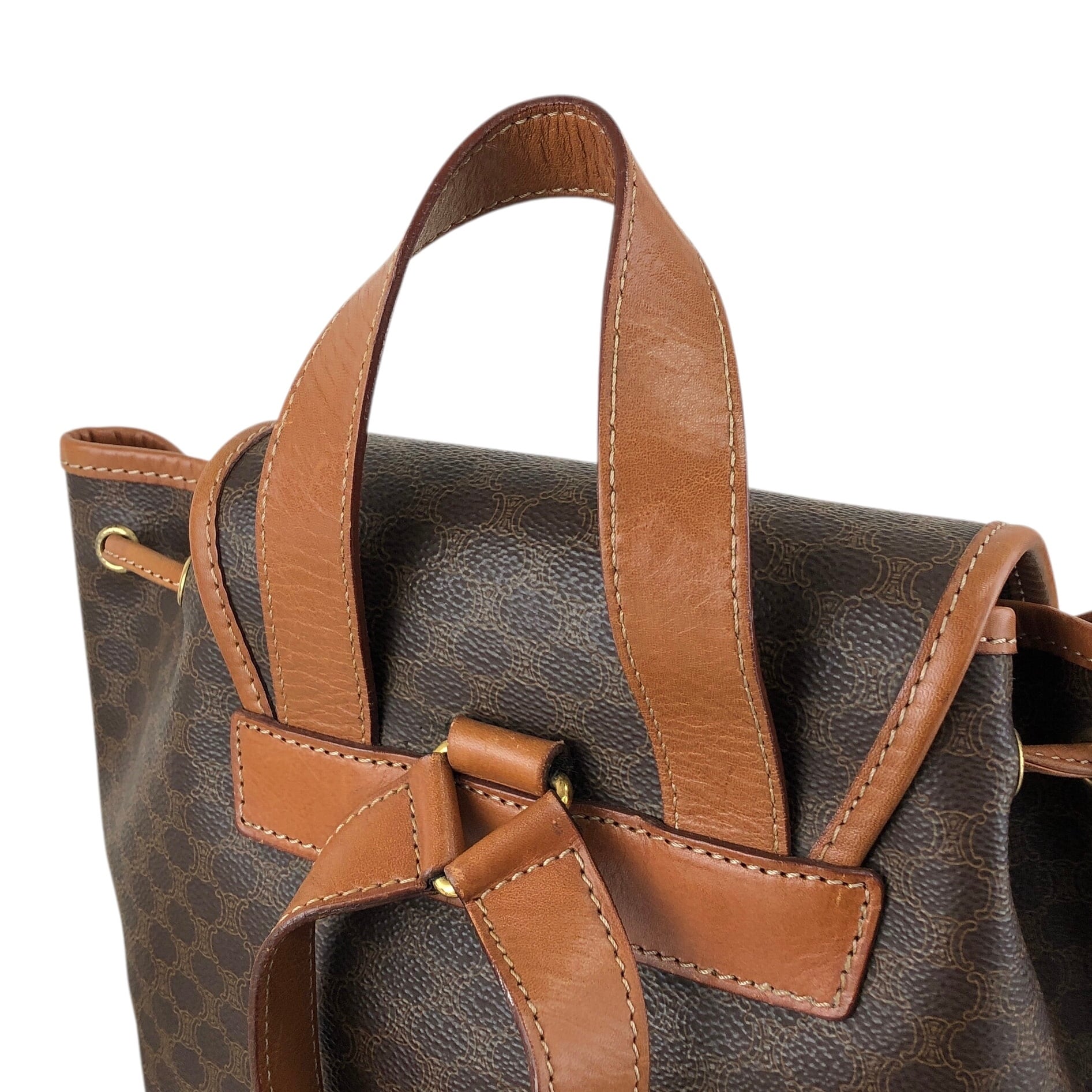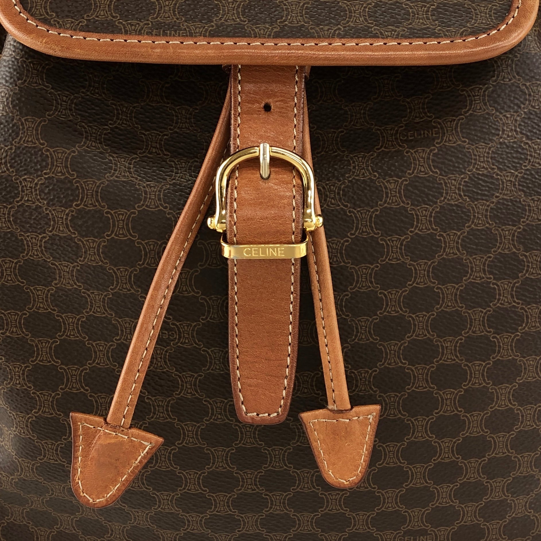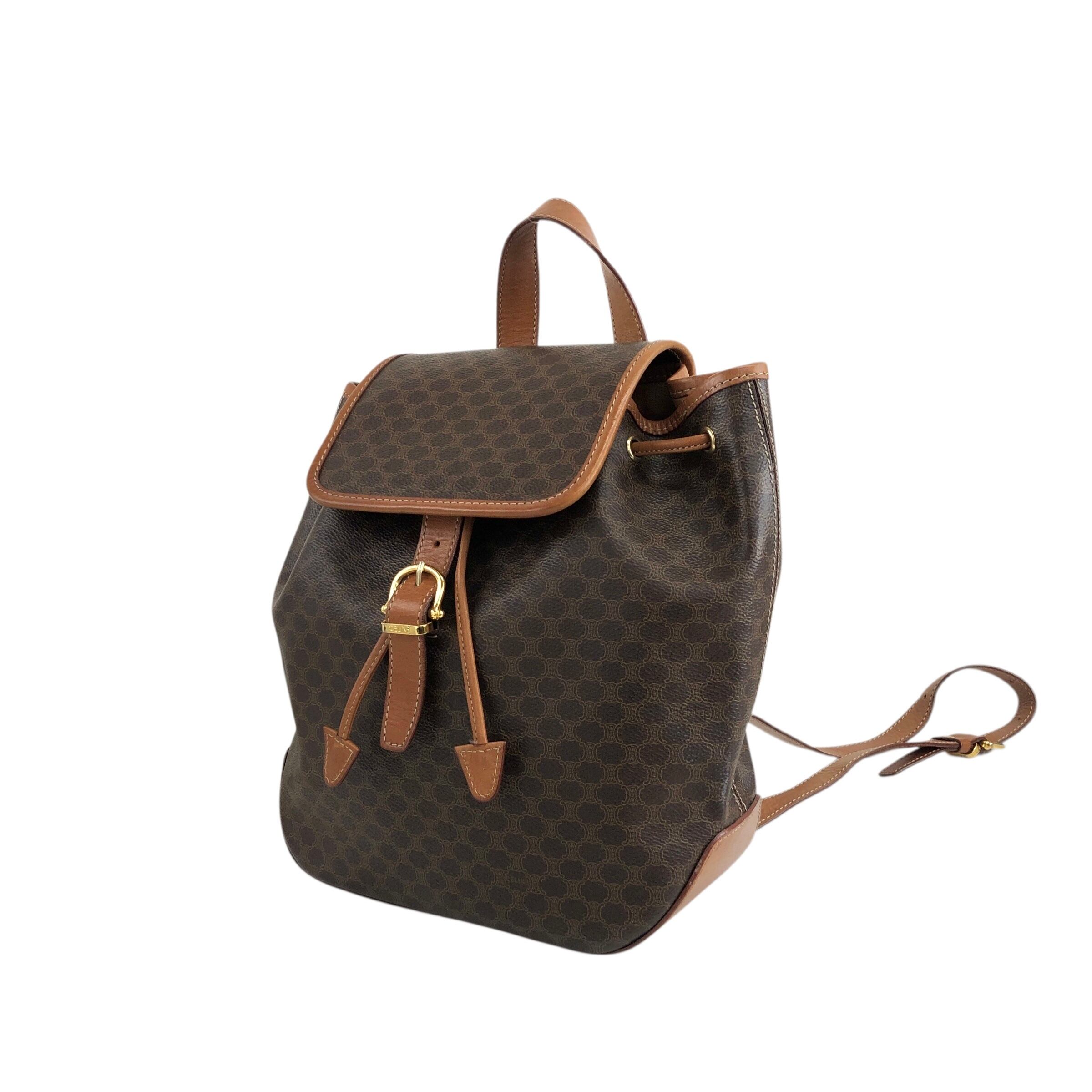 CELINE セリーヌ マカダム バックパック ブラウン フロントバックル PVC レザー リュック vintage ヴィンテージ オールド 22b6rx