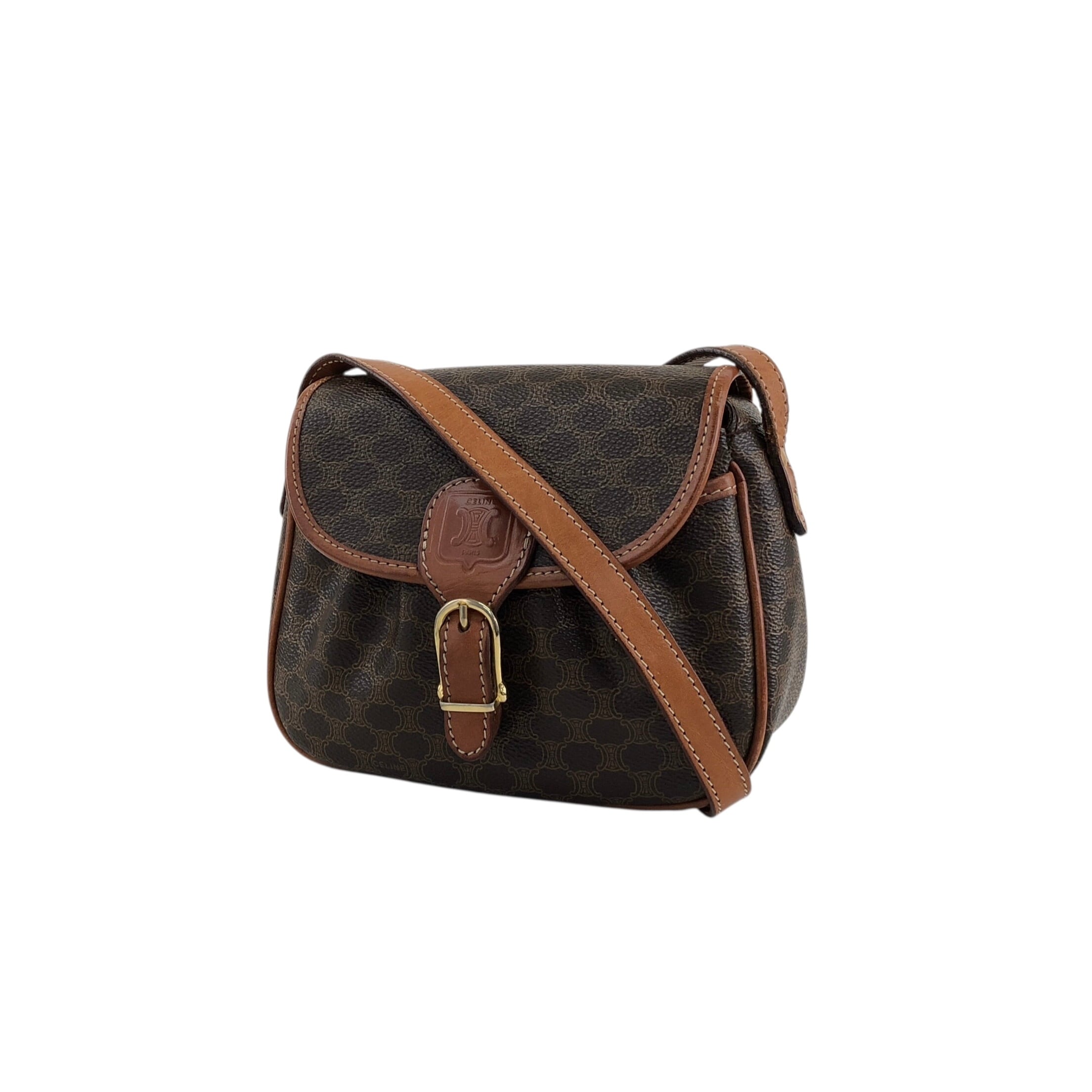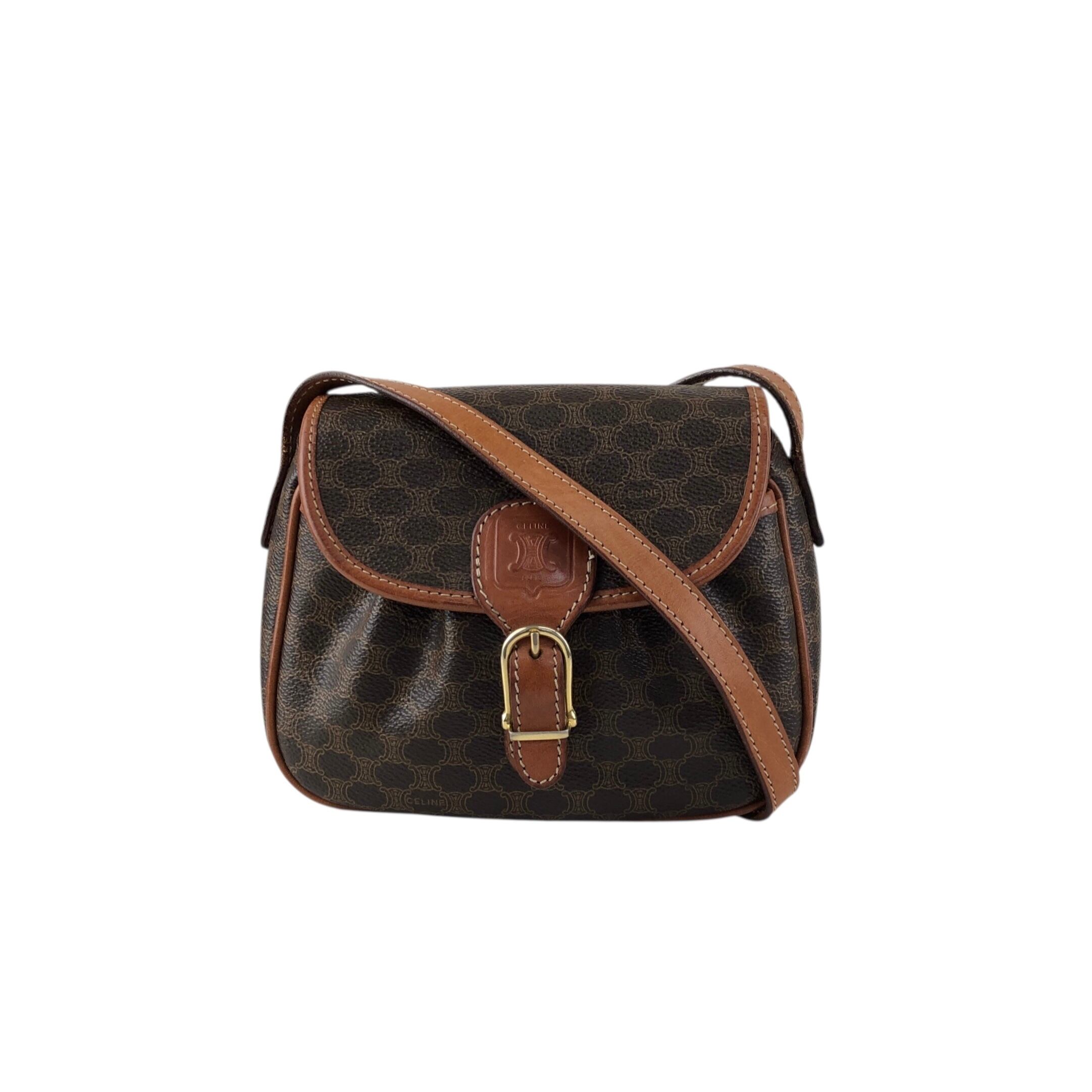 CELINE セリーヌ マカダム ショルダーバッグ ブラウン ブラゾン型押し PVC レザー ミニバッグ vintage ヴィンテージ オールド w4w3x4