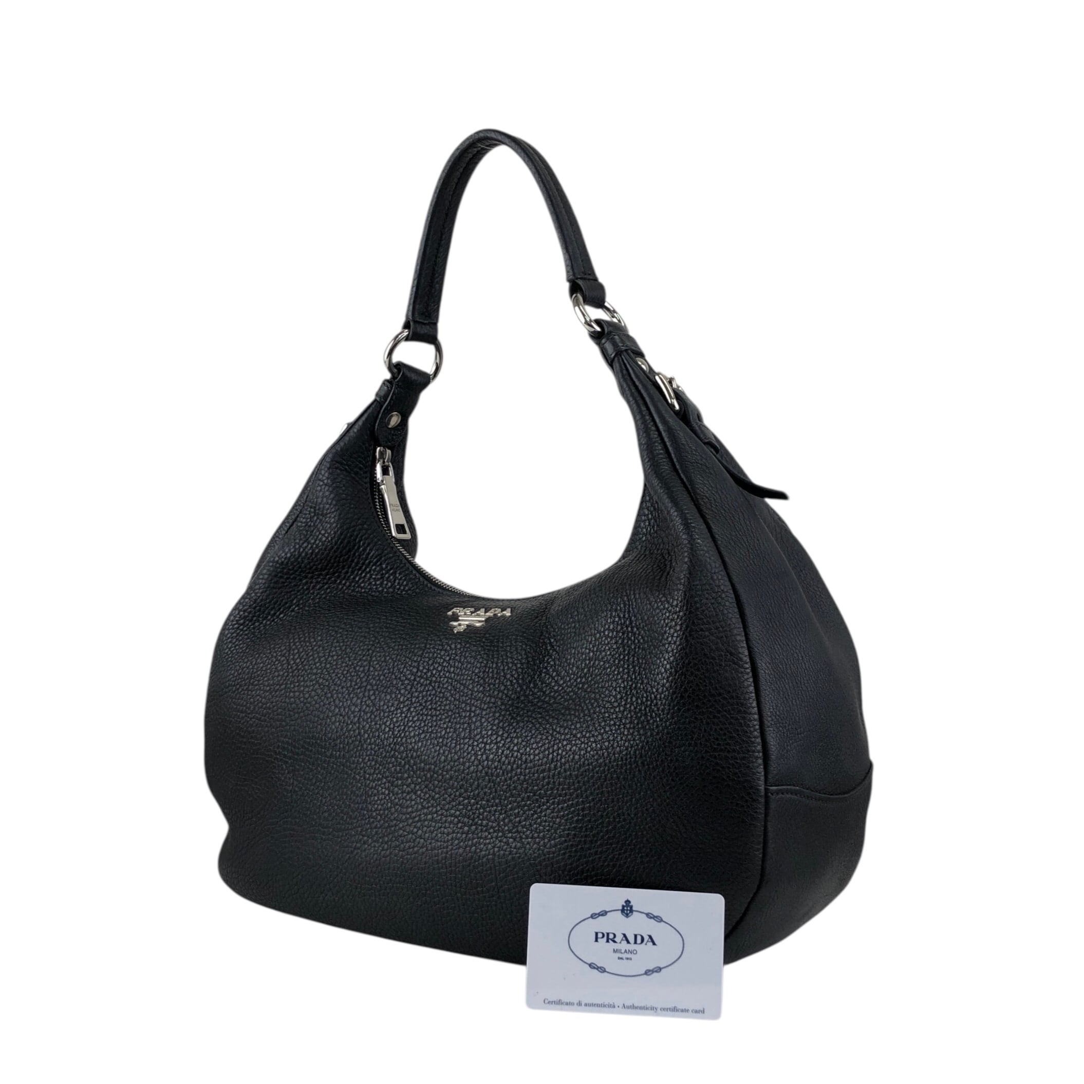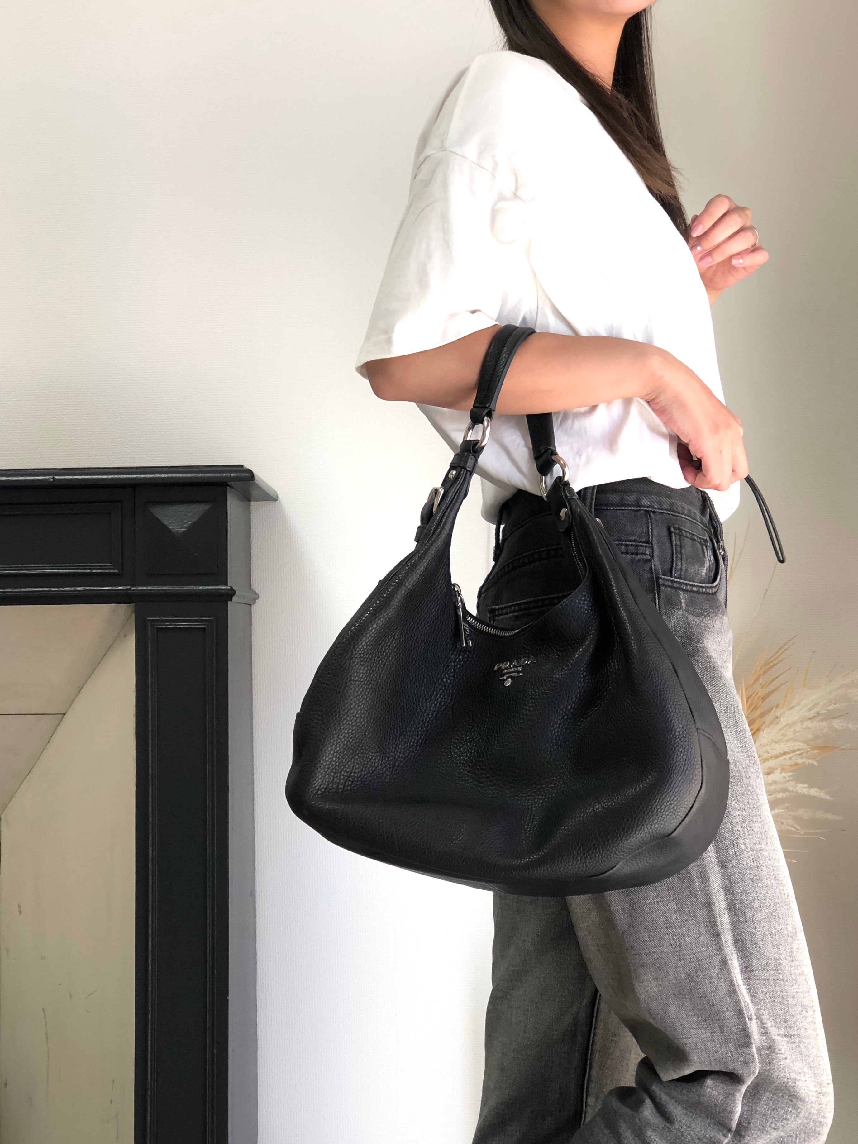 PRADA プラダ ショルダーバッグ ブラック ロゴ レザー ホーボーバッグ vintage ヴィンテージ オールド 53rvk2