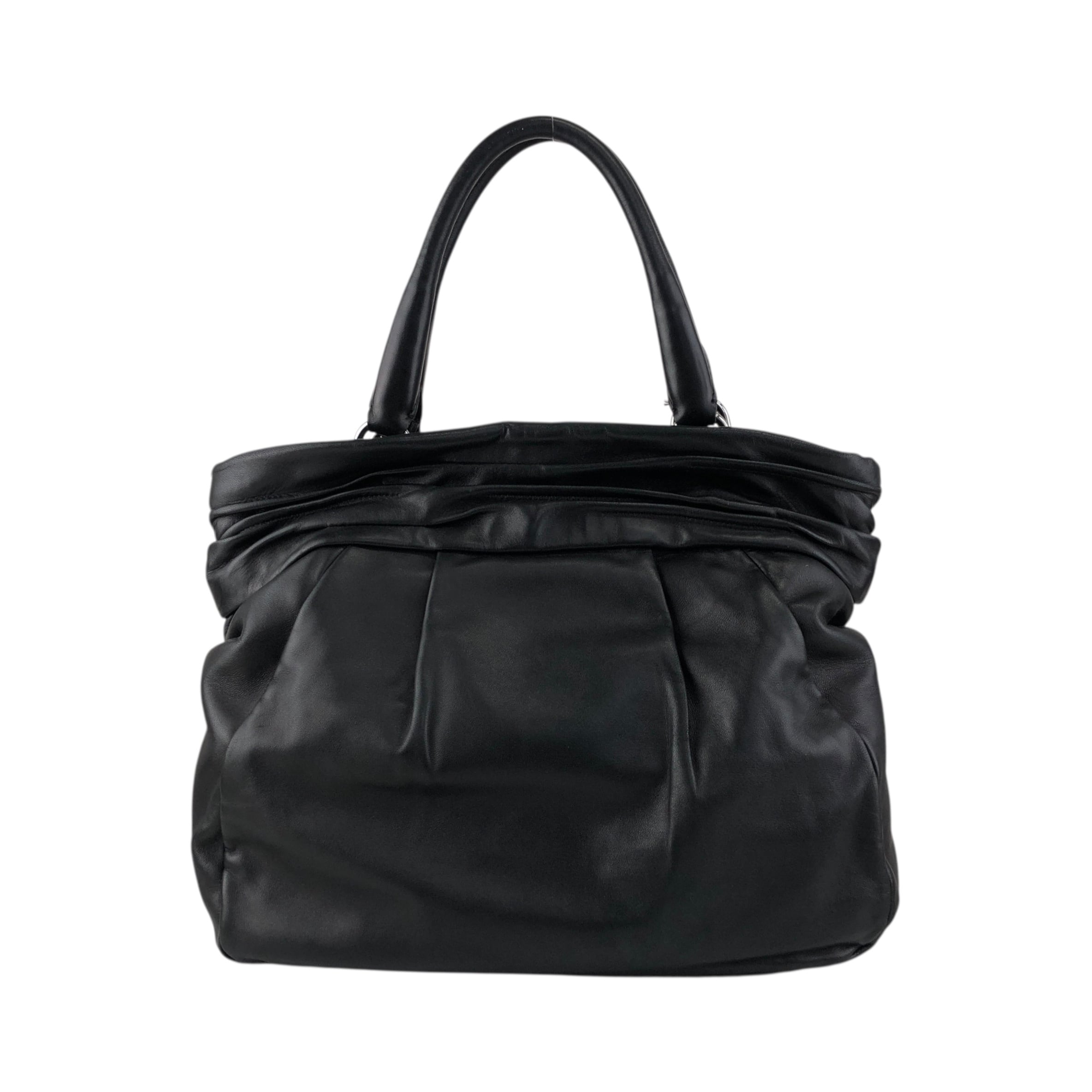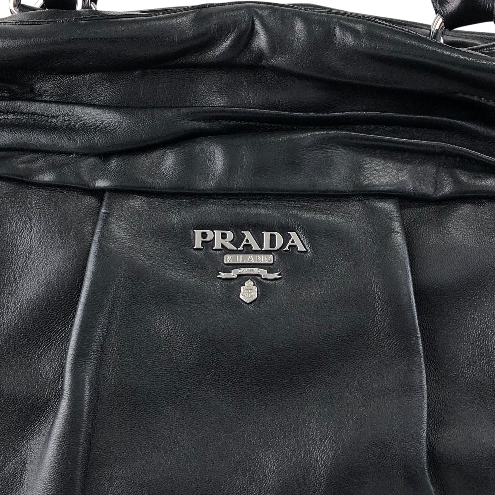 PRADA プラダ ハンドバッグ ブラック ロゴ レザー ギャザー vintage ヴィンテージ オールド bkzmzt