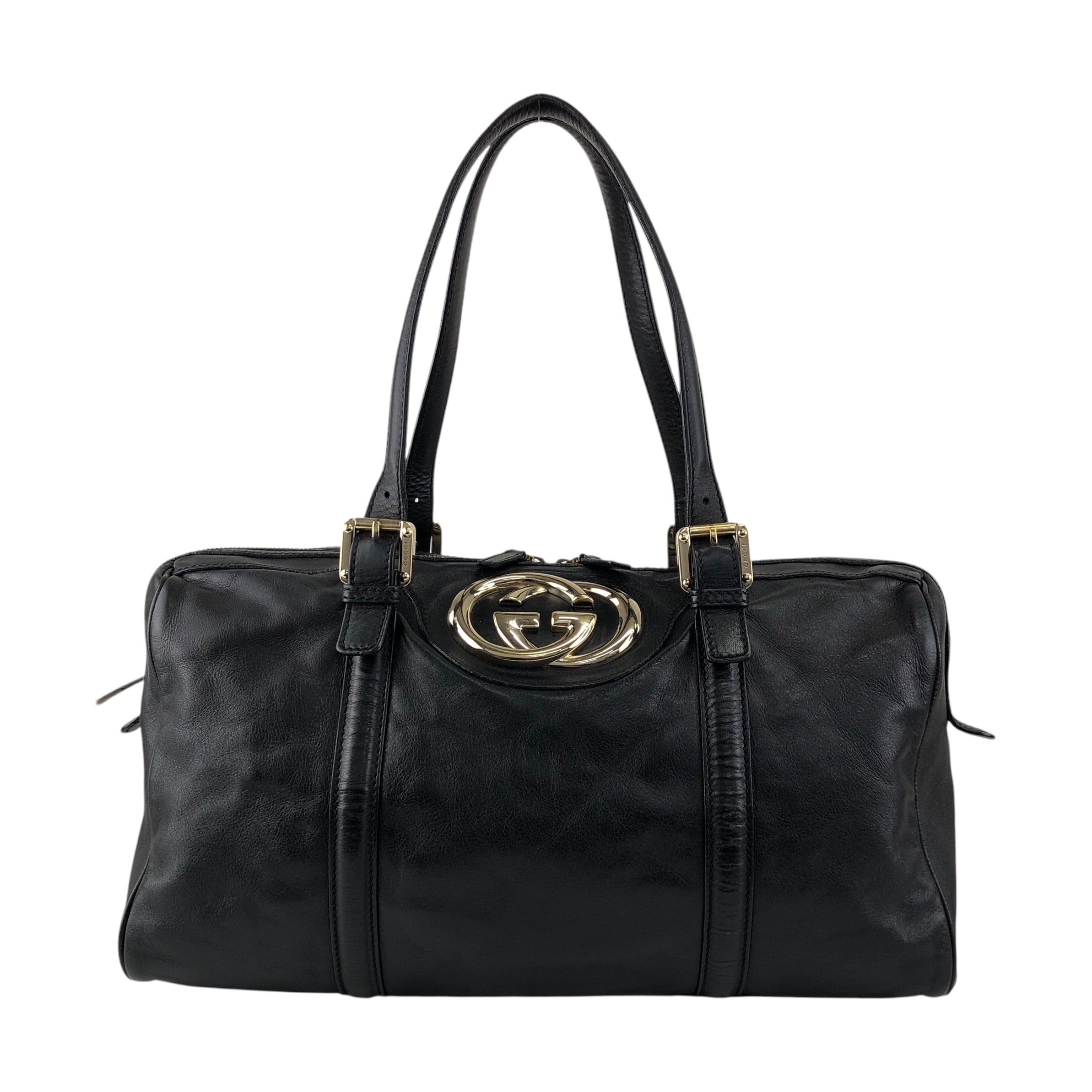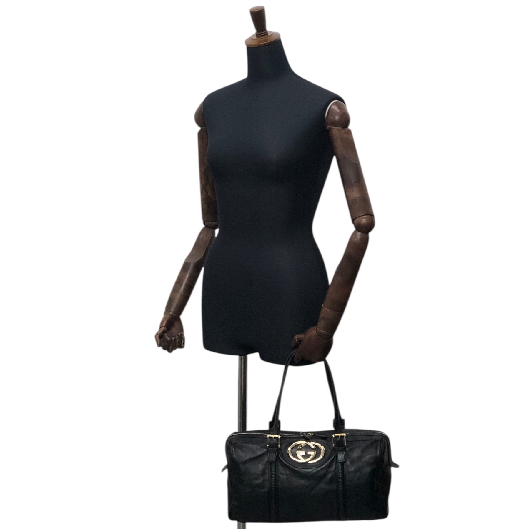 GUCCI グッチ ハンドバッグ ブラック ロゴ GG レザー ミニボストン vintage ヴィンテージ オールド f7jncz