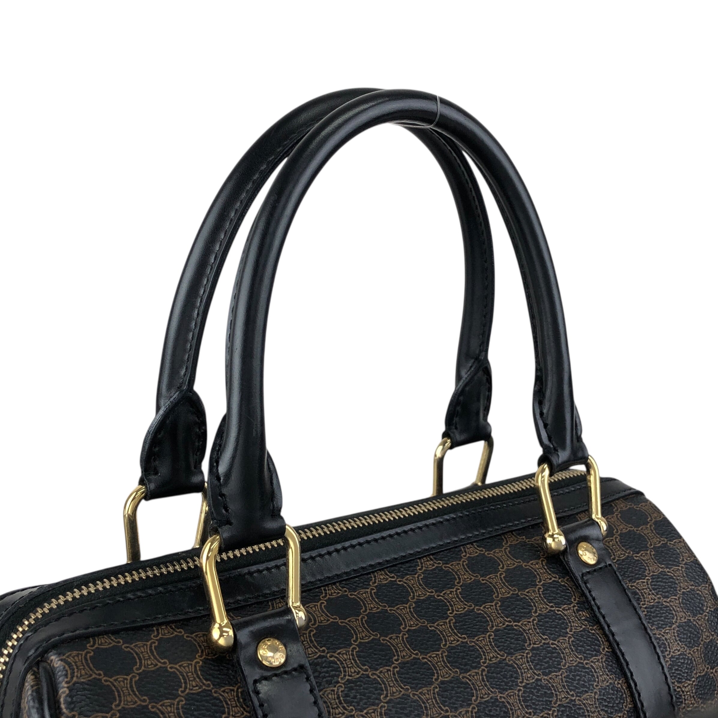 CELINE セリーヌ マカダム ボストンバッグ ブラック PVCレザー vintage ヴィンテージ オールド 5umhds