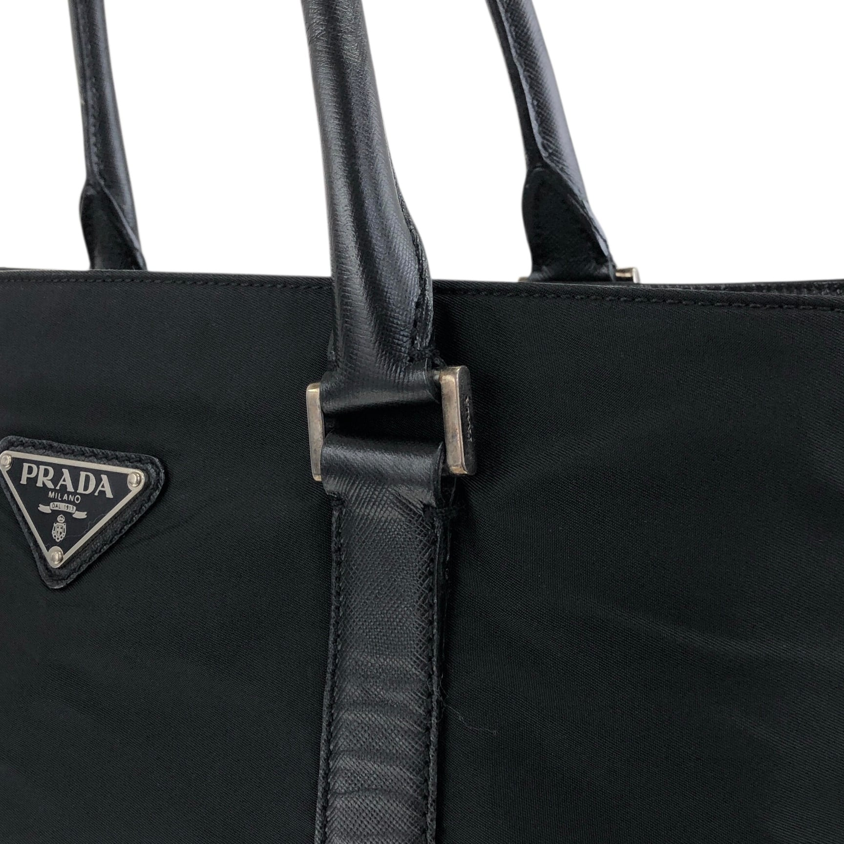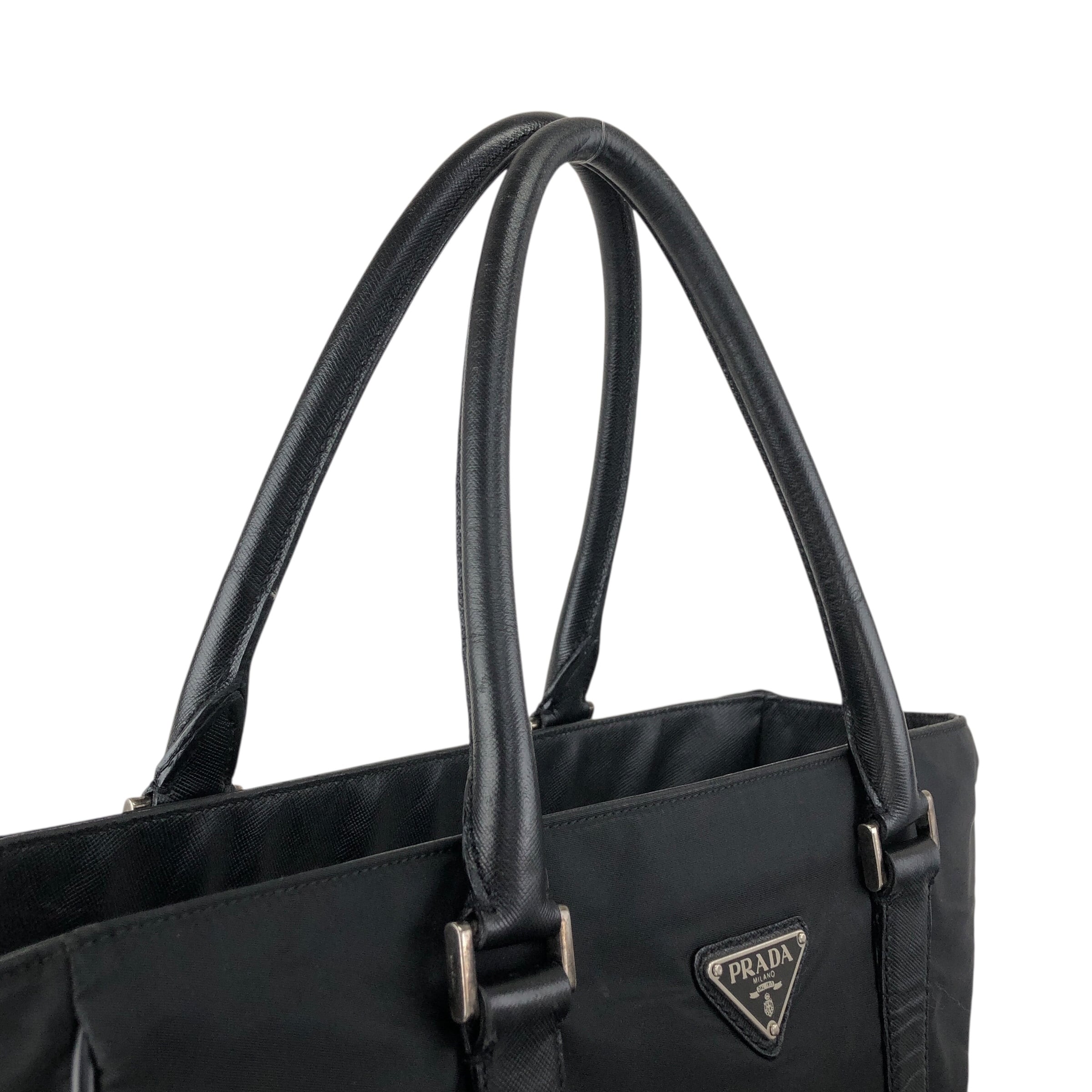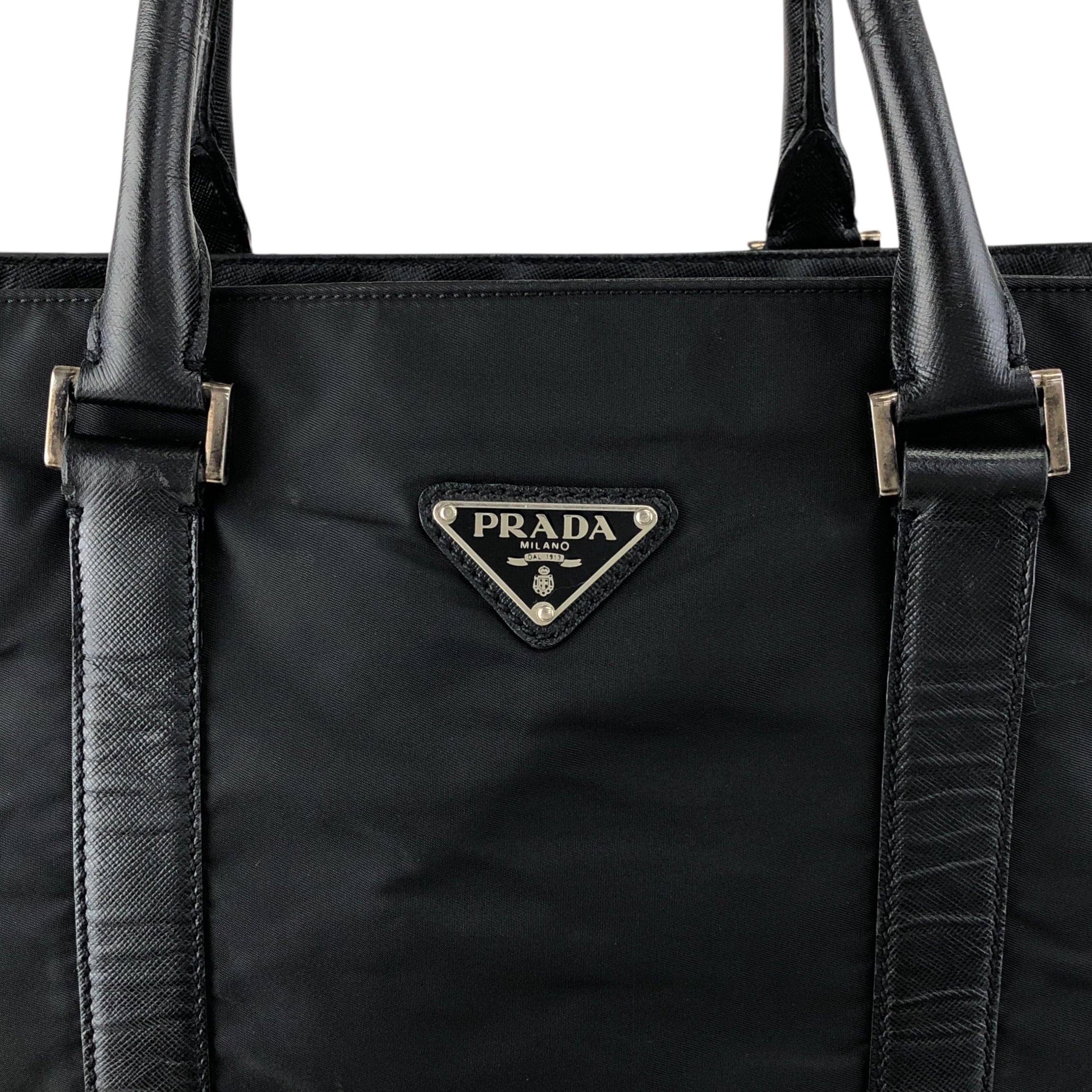PRADA プラダ トートバッグ ブラック トライアングルロゴ ナイロン レザー vintage ヴィンテージ オールド syxbuh