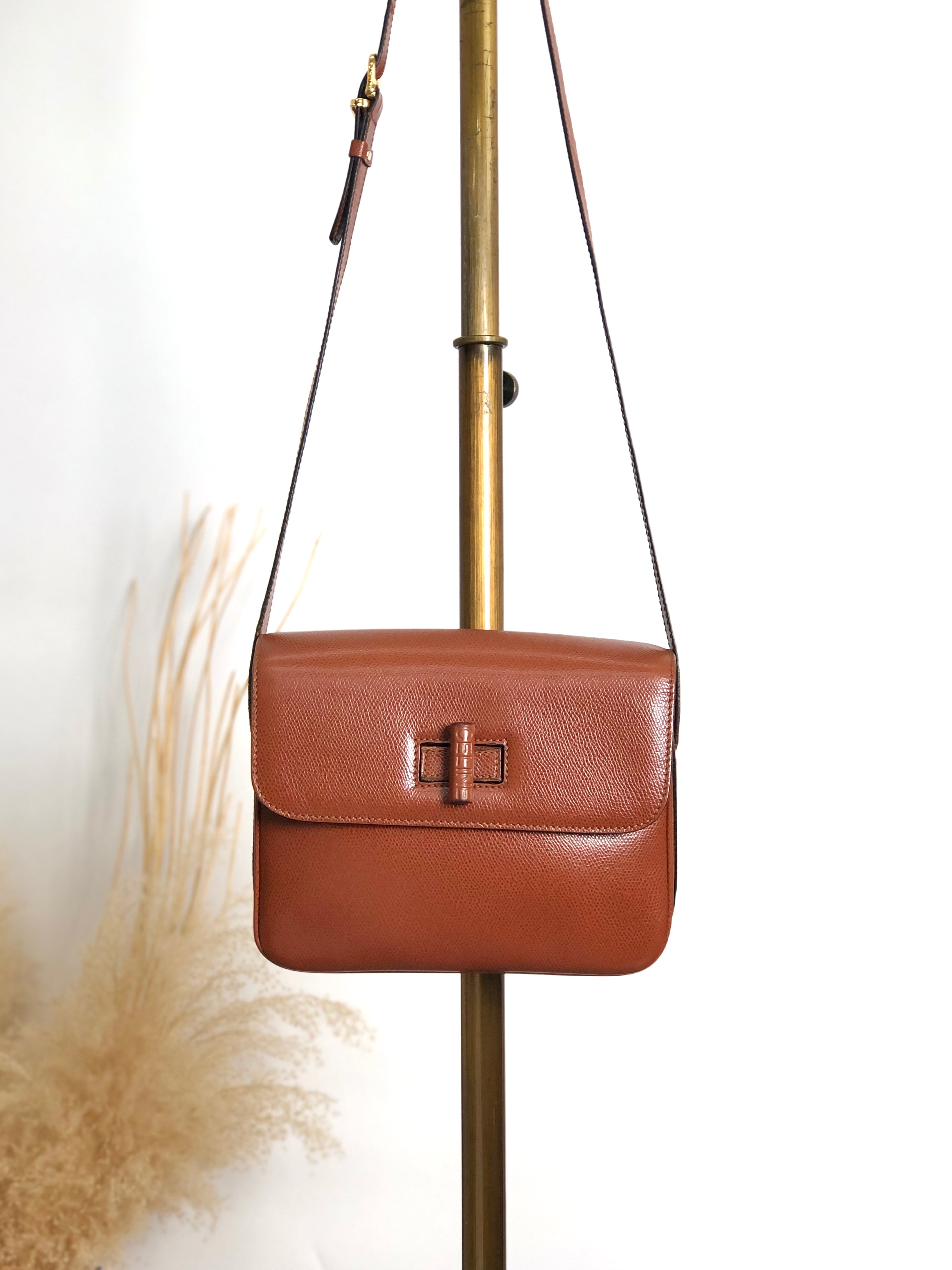 CELINE セリーヌ ショルダーバッグ ブラウン ターンロック ロゴ レザー vintage ヴィンテージ オールド hdtdu2
