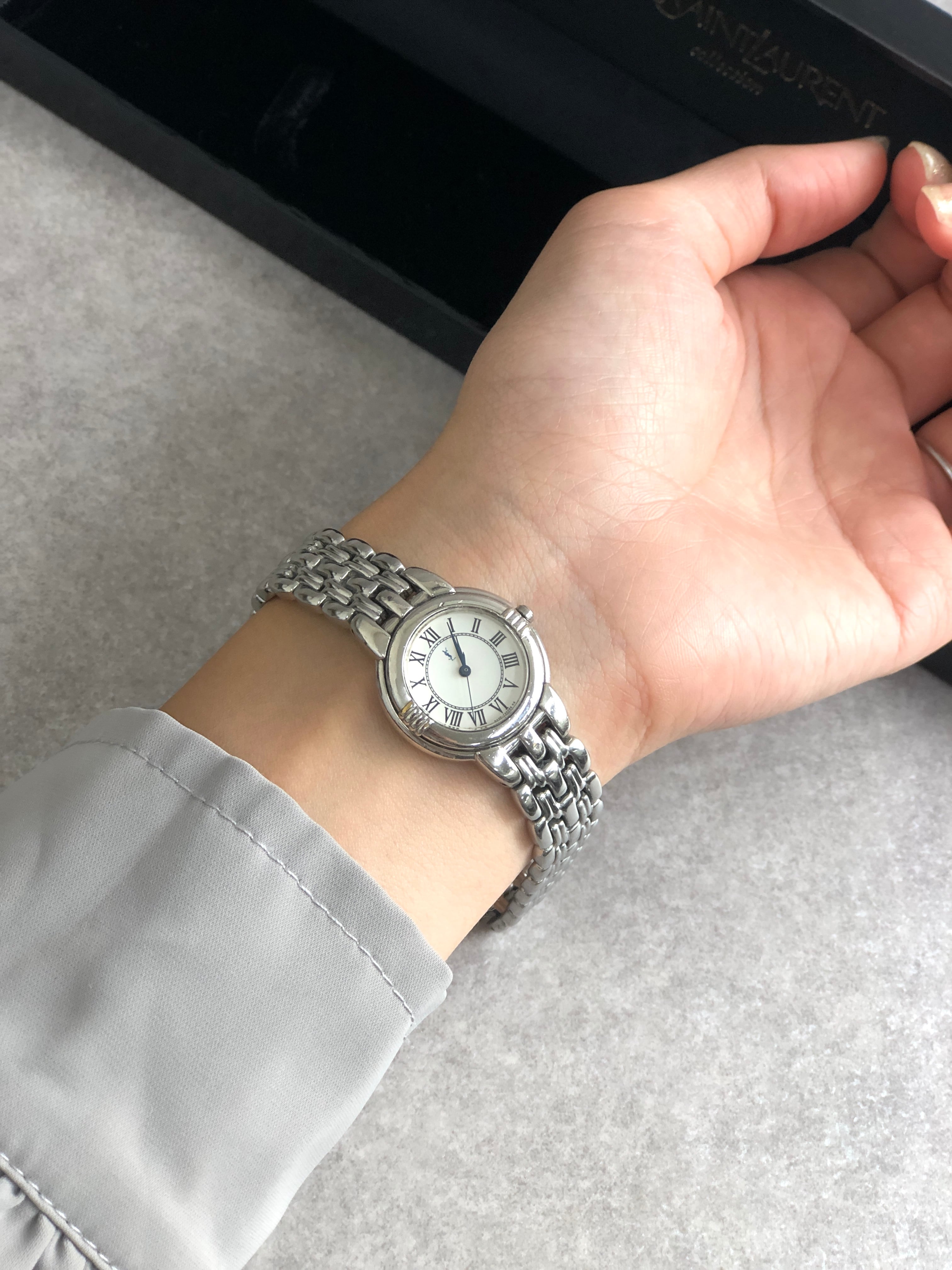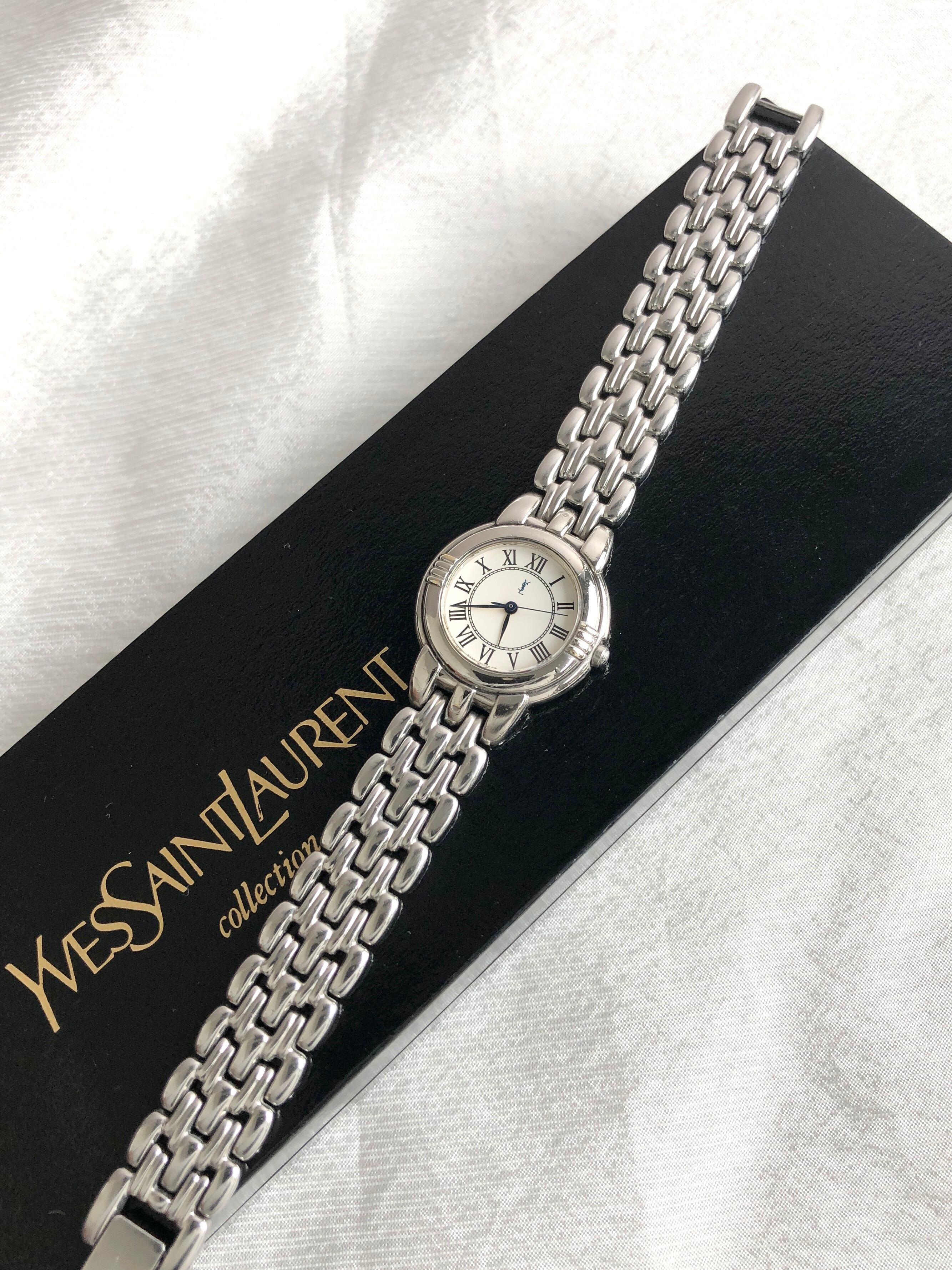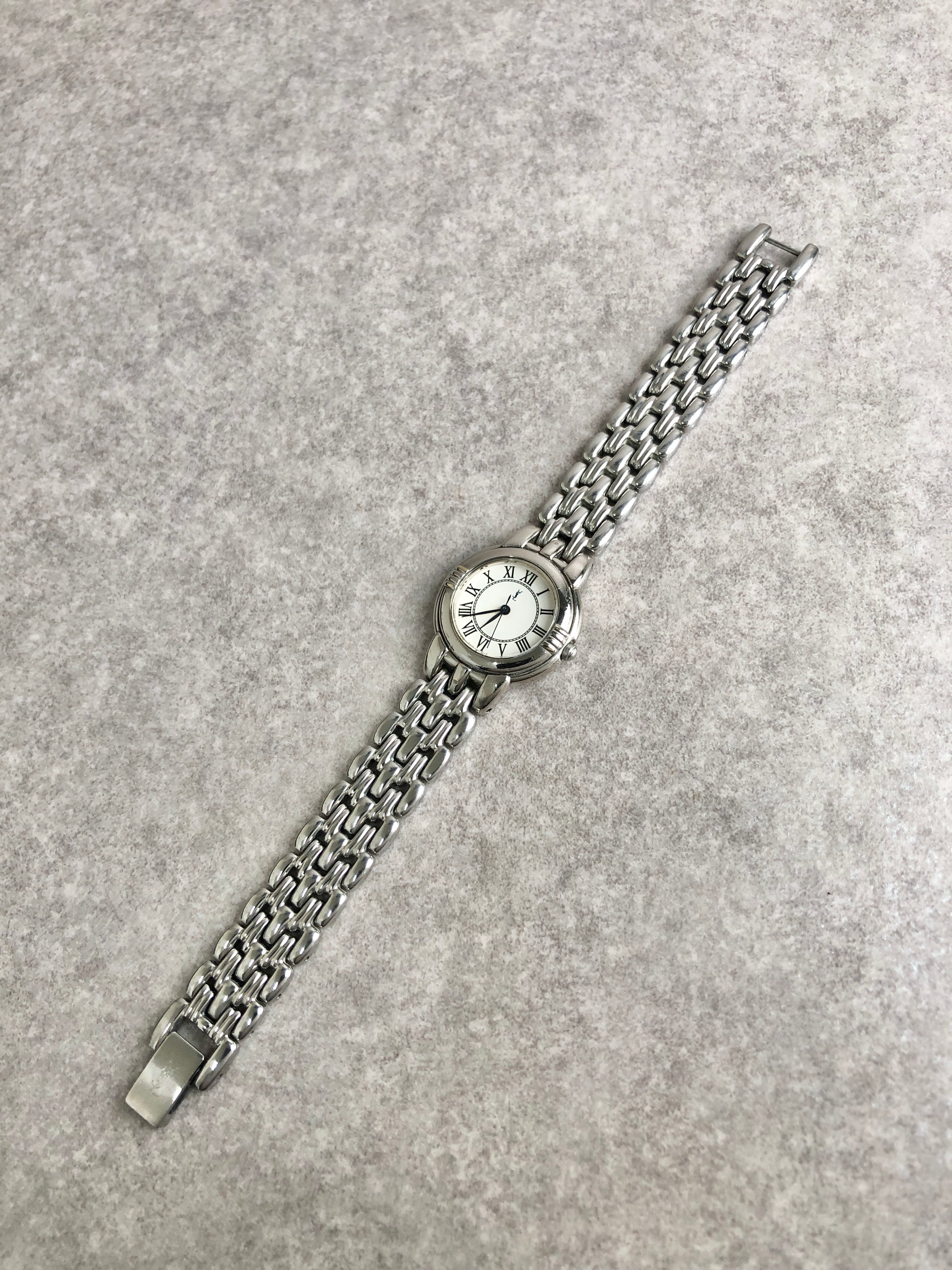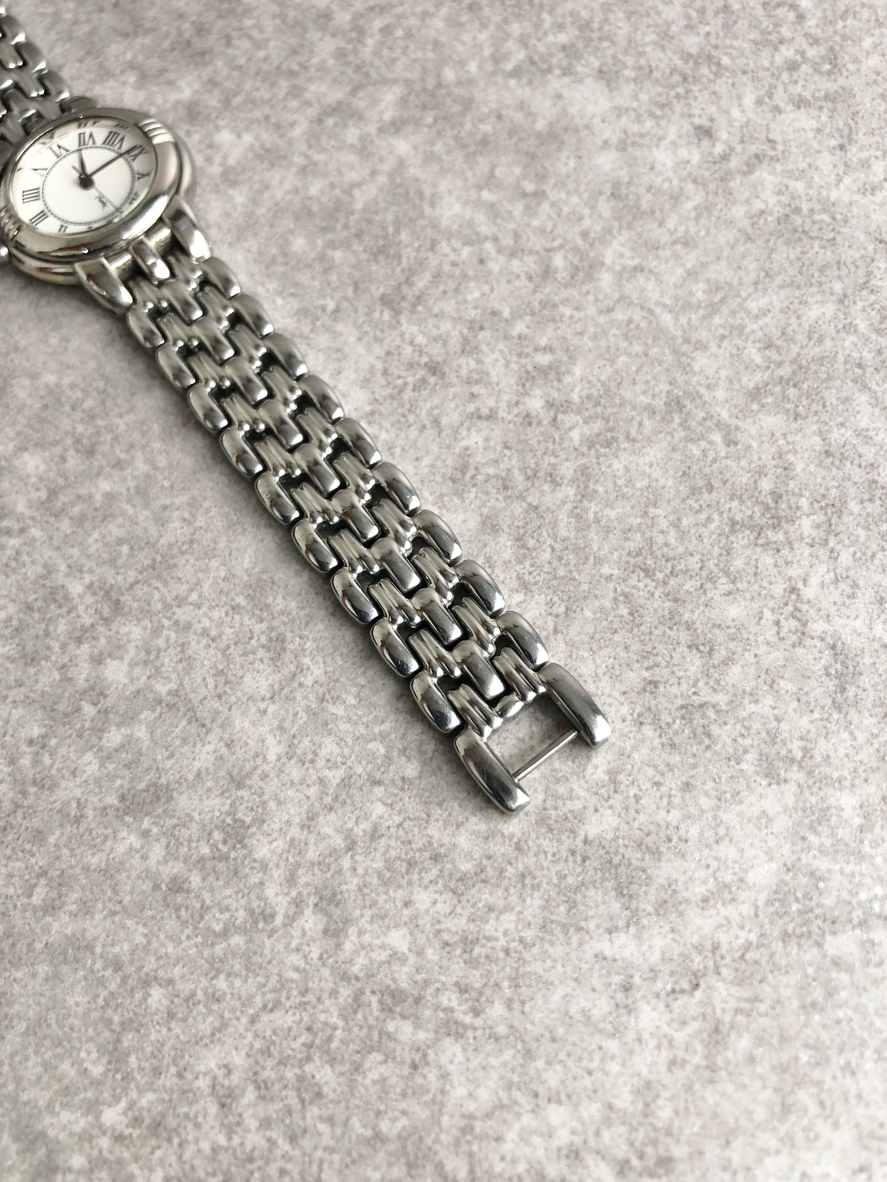Yves Saint Laurent イヴ・サンローラン 腕時計 シルバー ラウンド ステンレススチール クォーツ 5431-F45979 vintage ヴィンテージ オールド 7g55m6
