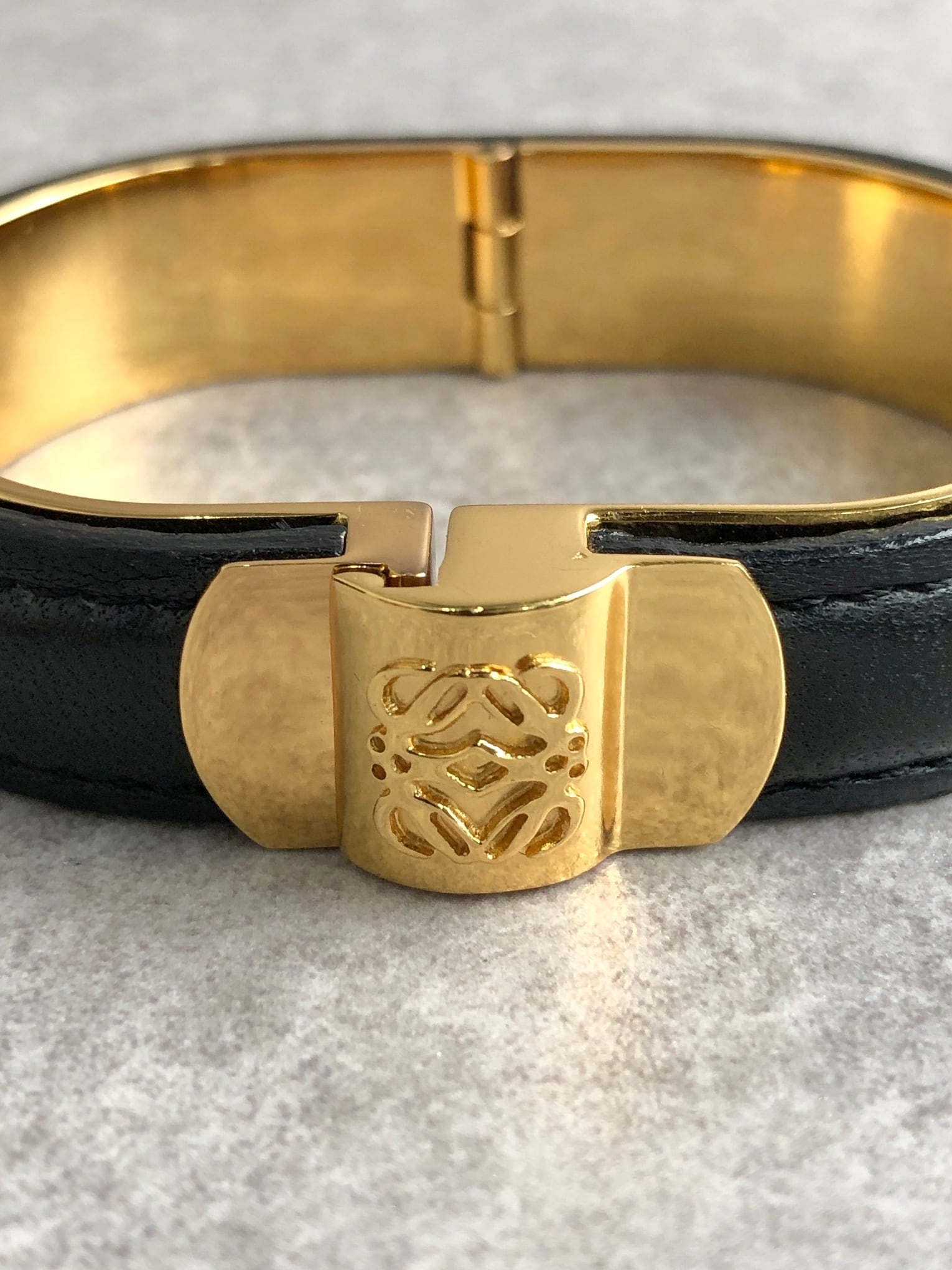 LOEWE ロエベ バングル ブラック ゴールド アナグラム レザー vintage ヴィンテージ オールド 3pc2jj