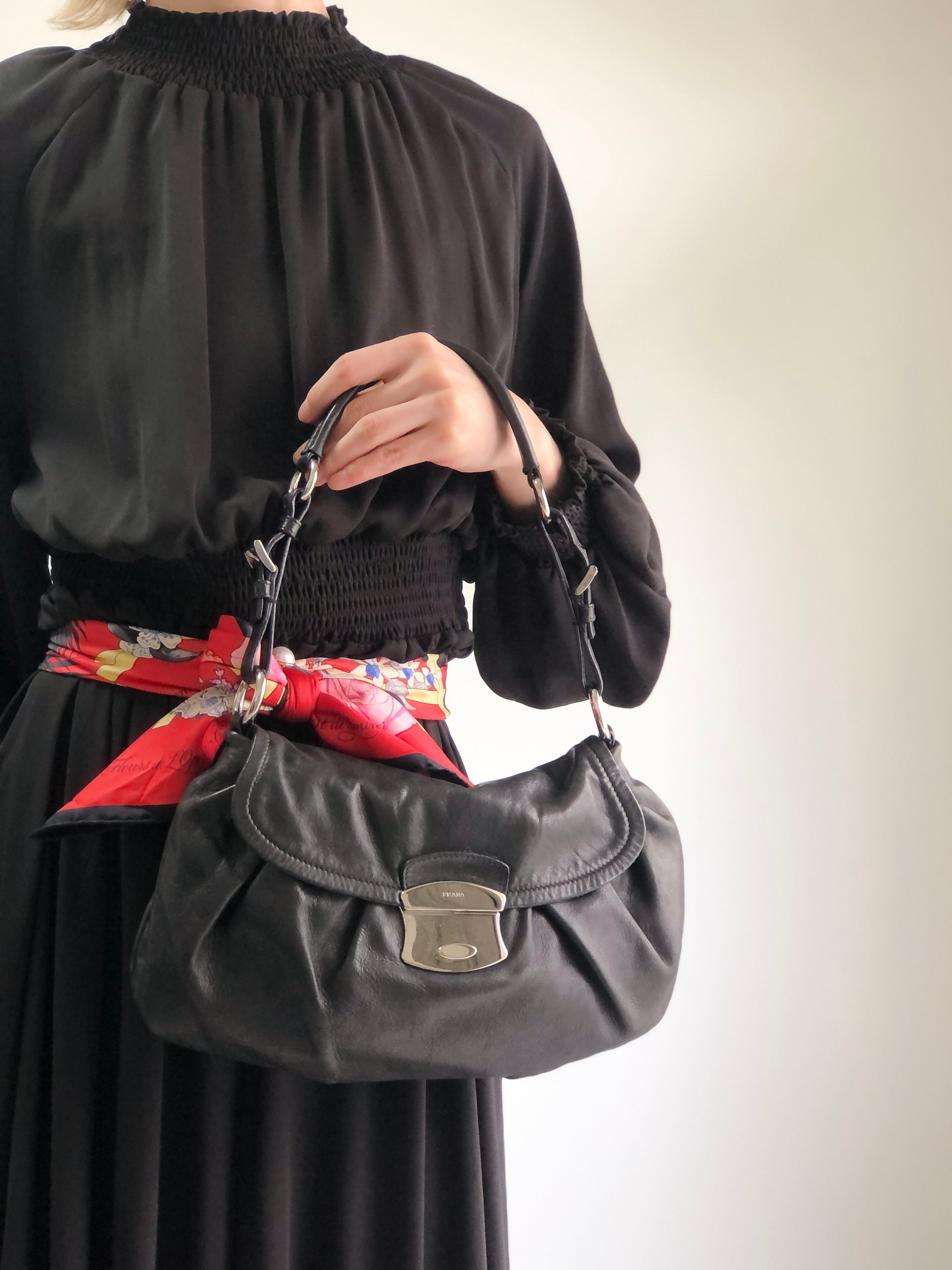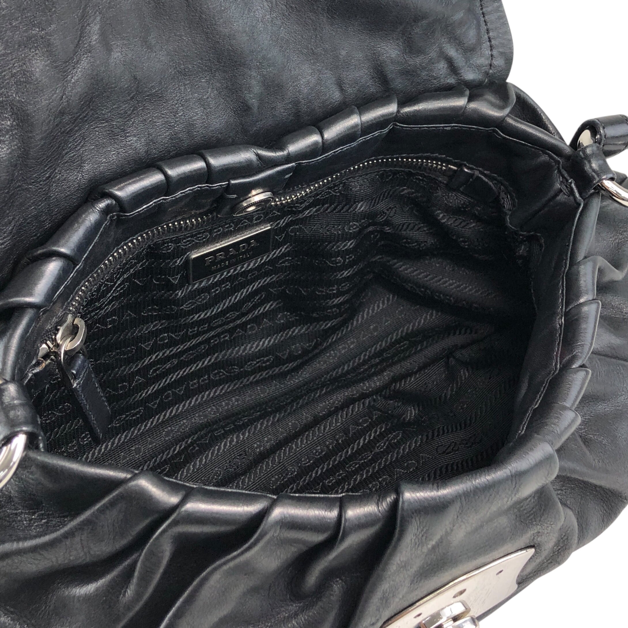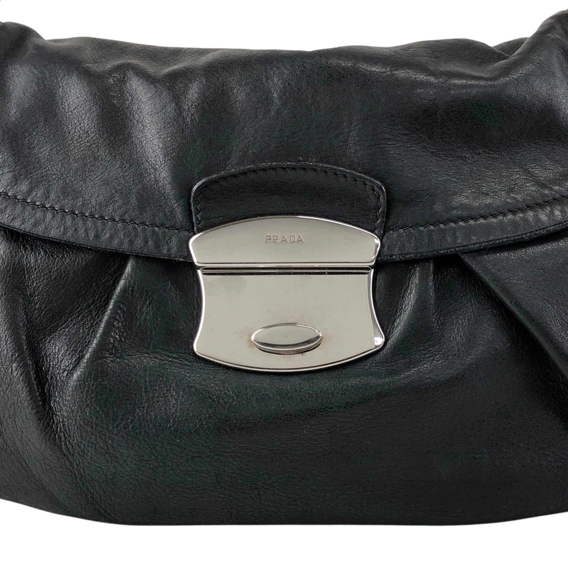 PRADA プラダ ショルダーバッグ ブラック フロントバックル レザー セミショルダーバッグ vintage ヴィンテージ オールド 4b8iuy