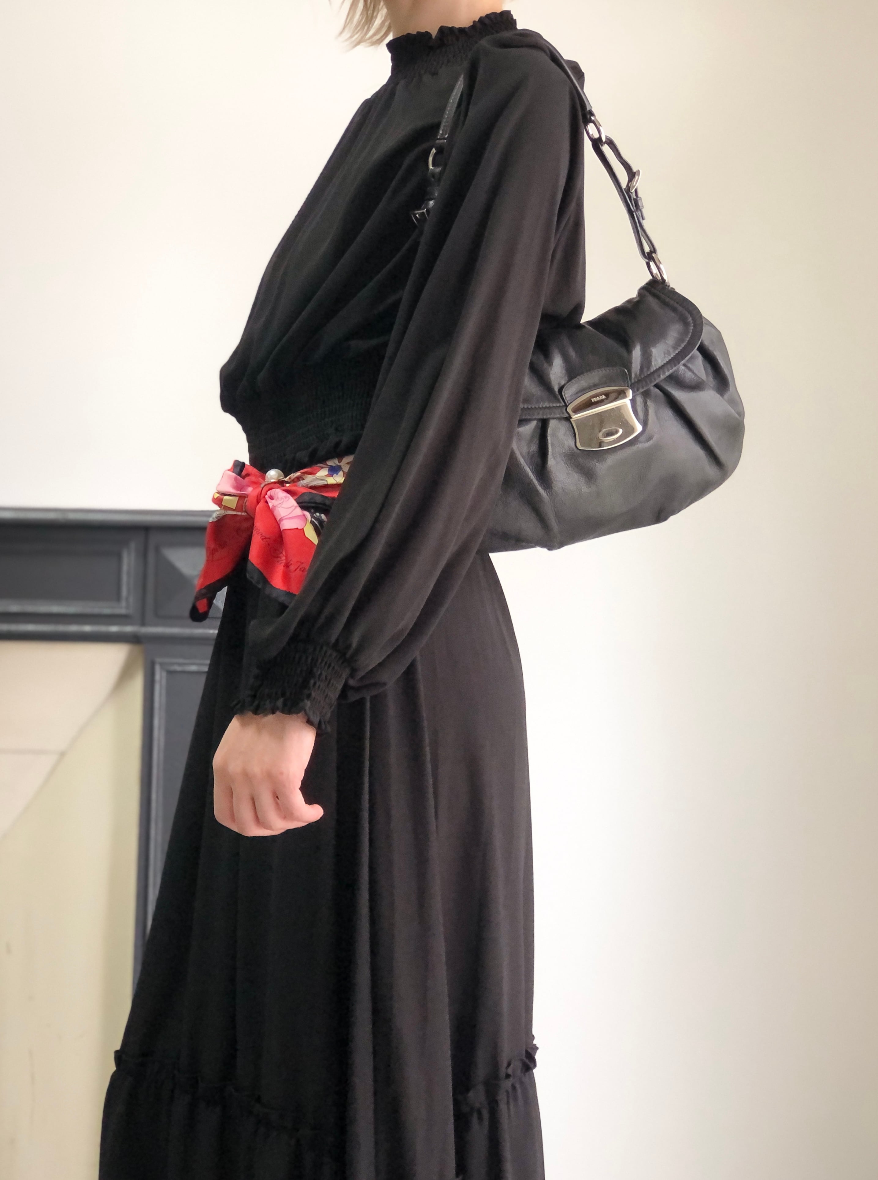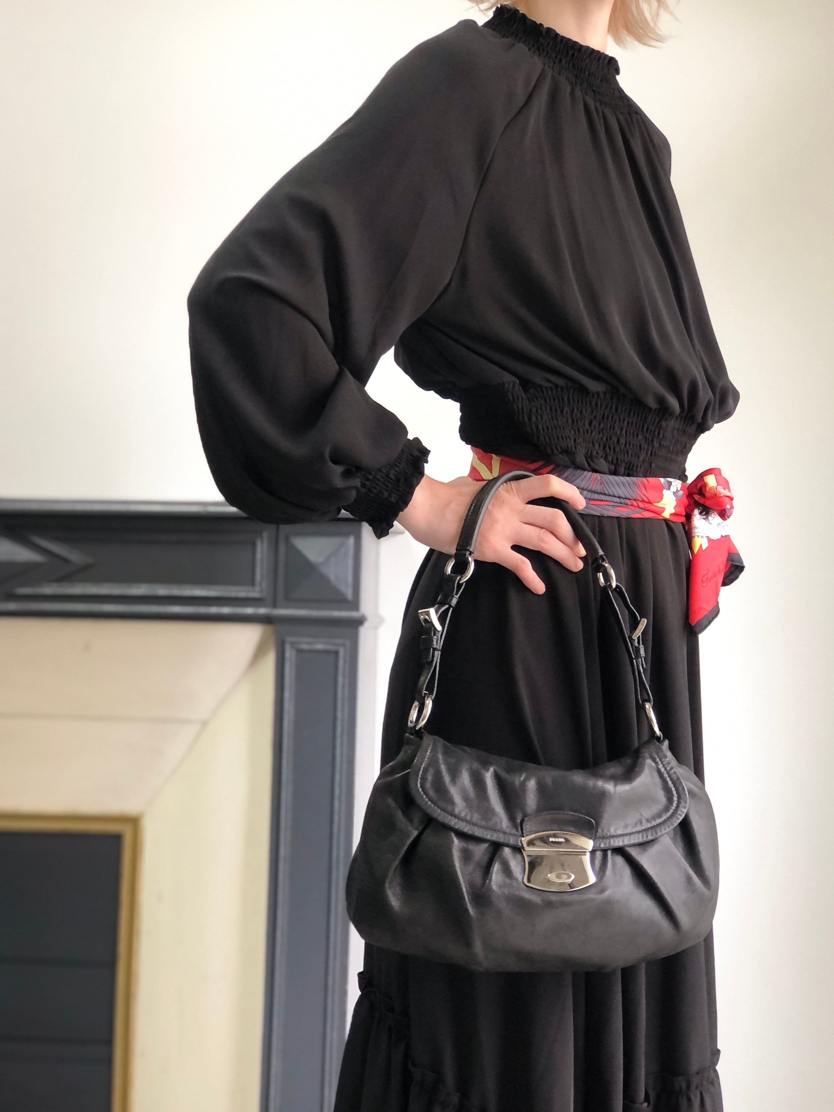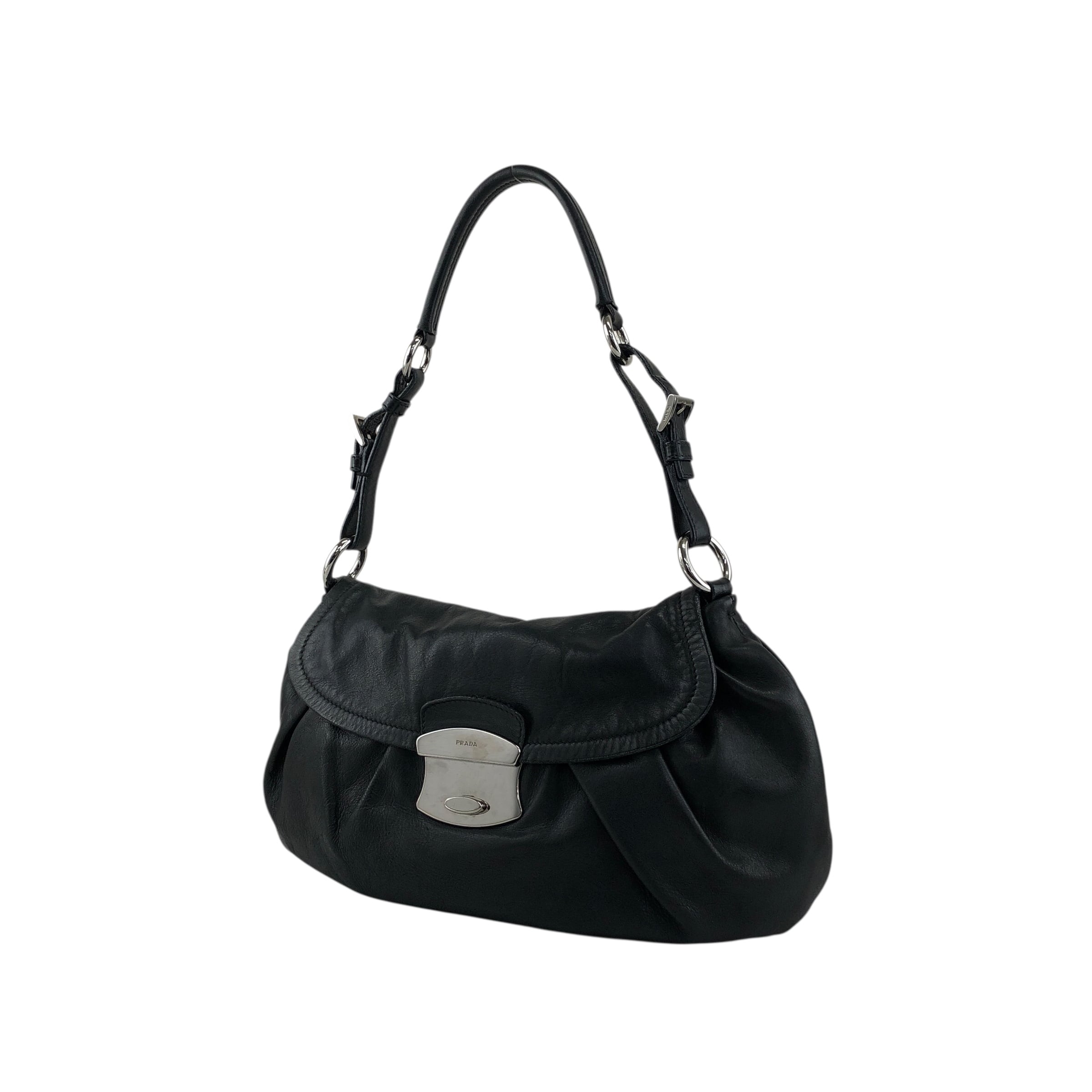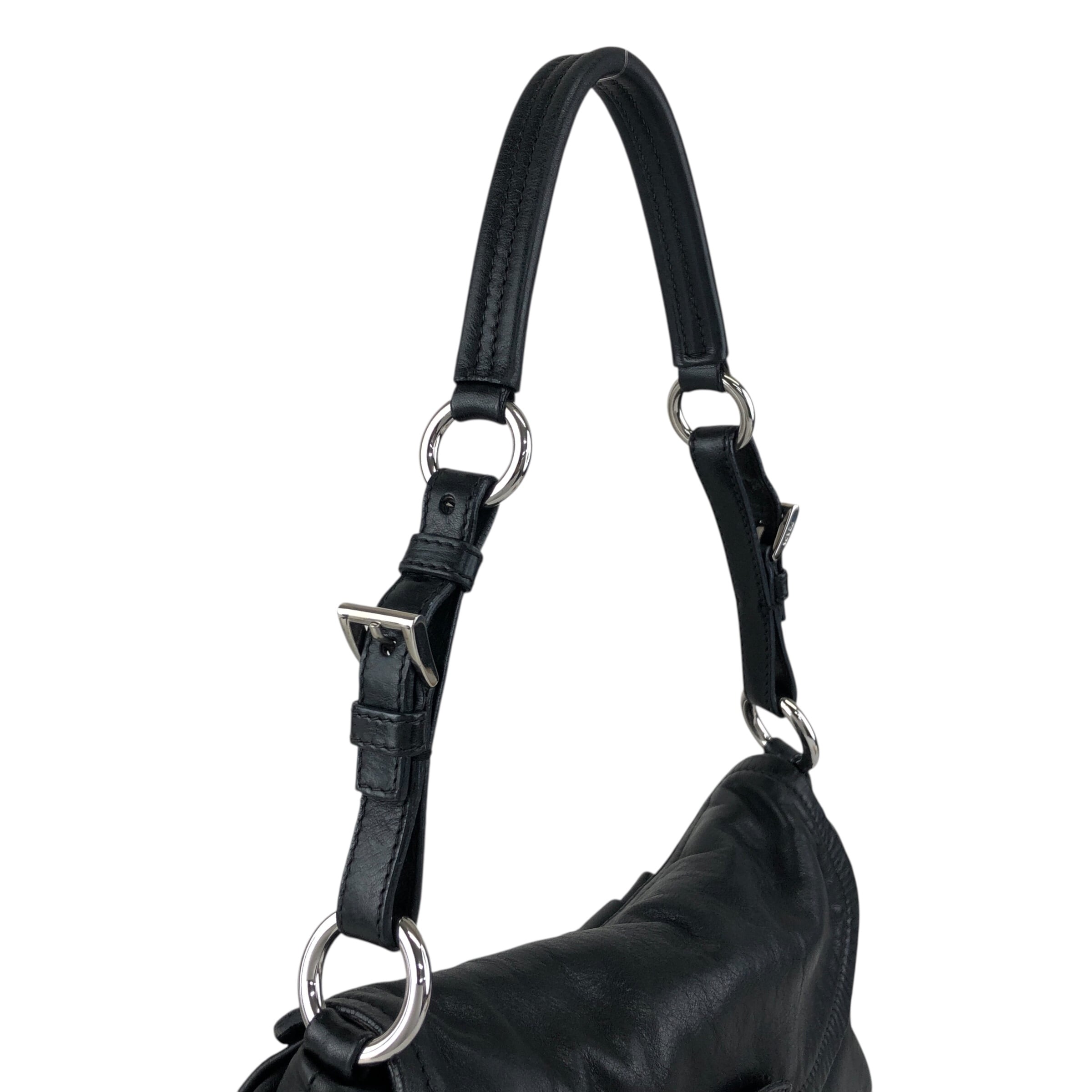 PRADA プラダ ショルダーバッグ ブラック フロントバックル レザー セミショルダーバッグ vintage ヴィンテージ オールド 4b8iuy