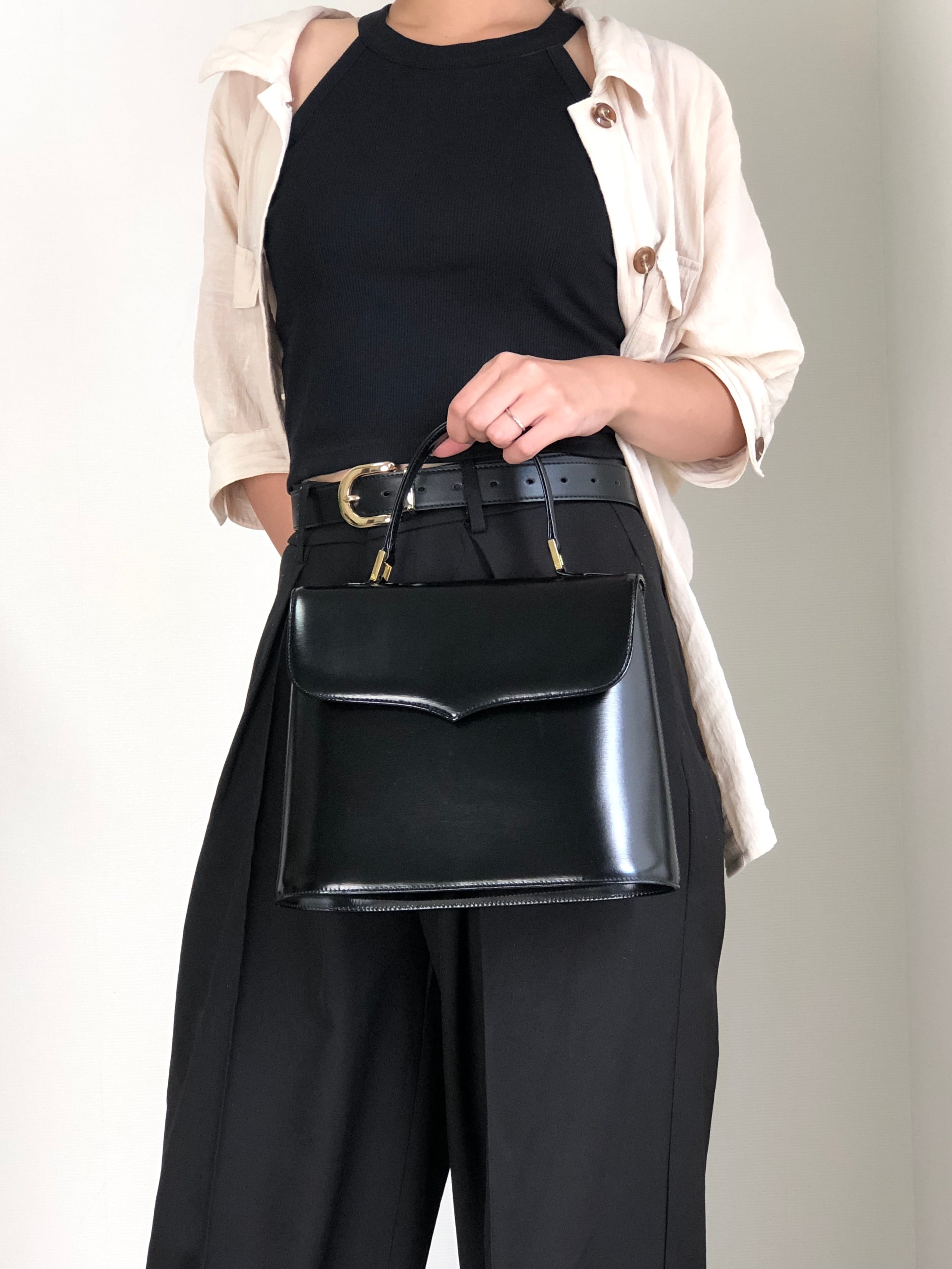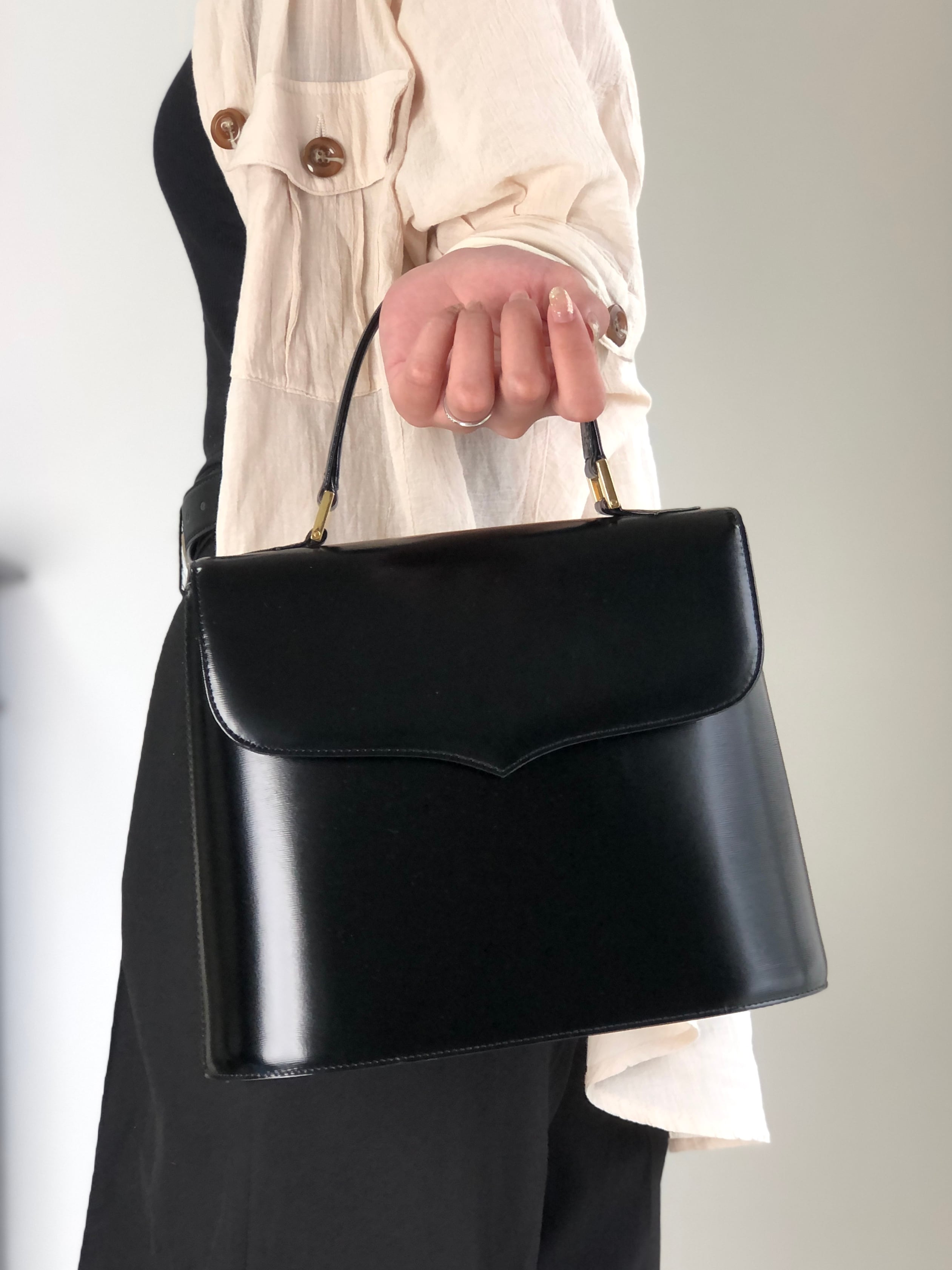 Yves Saint Laurent イヴ・サンローラン ハンドバッグ ブラック レザー トップハンドル vintage ヴィンテージ オールド fhj5dh