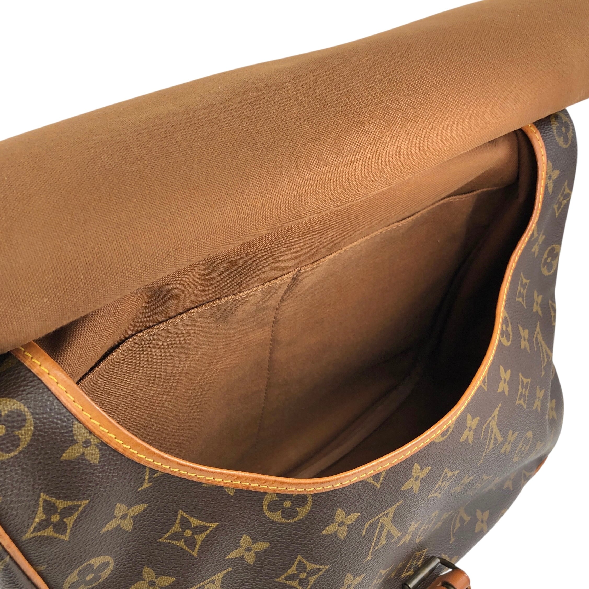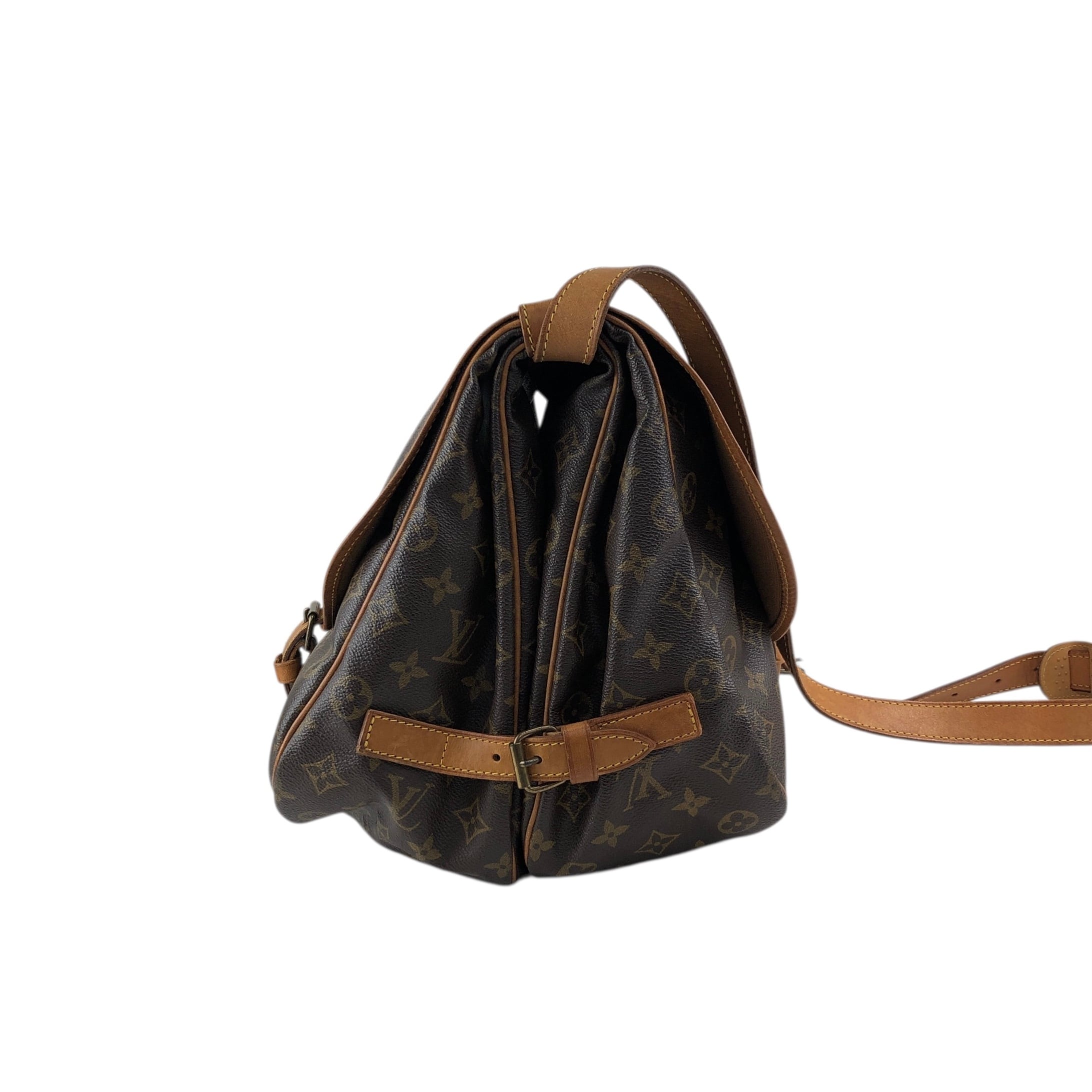 LOUIS VUITTON ルイヴィトン モノグラム ショルダーバッグ ブラウン PVC レザー ソミュール 30 M42256 vintage ヴィンテージ オールド 38nfh4