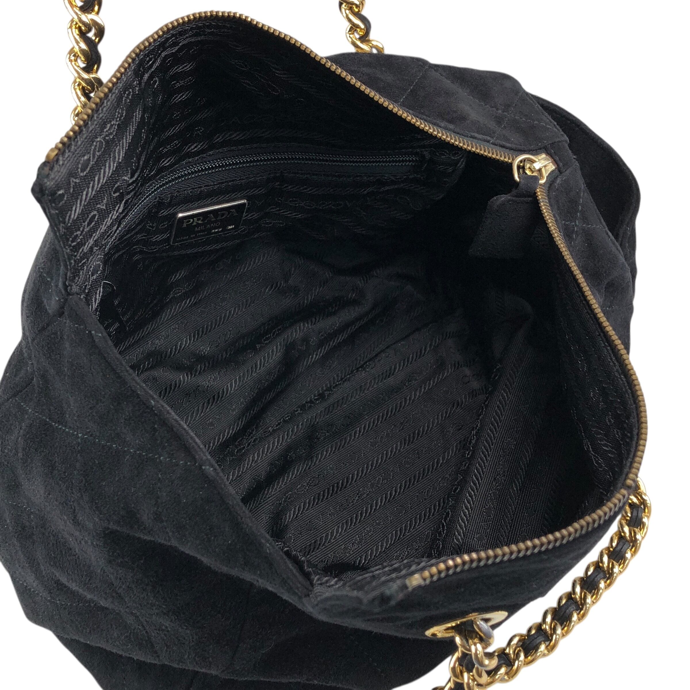PRADA プラダ ショルダーバッグ ブラック トライアングルロゴ スエード キルティング チェーン vintage ヴィンテージ オールド t7p4ej