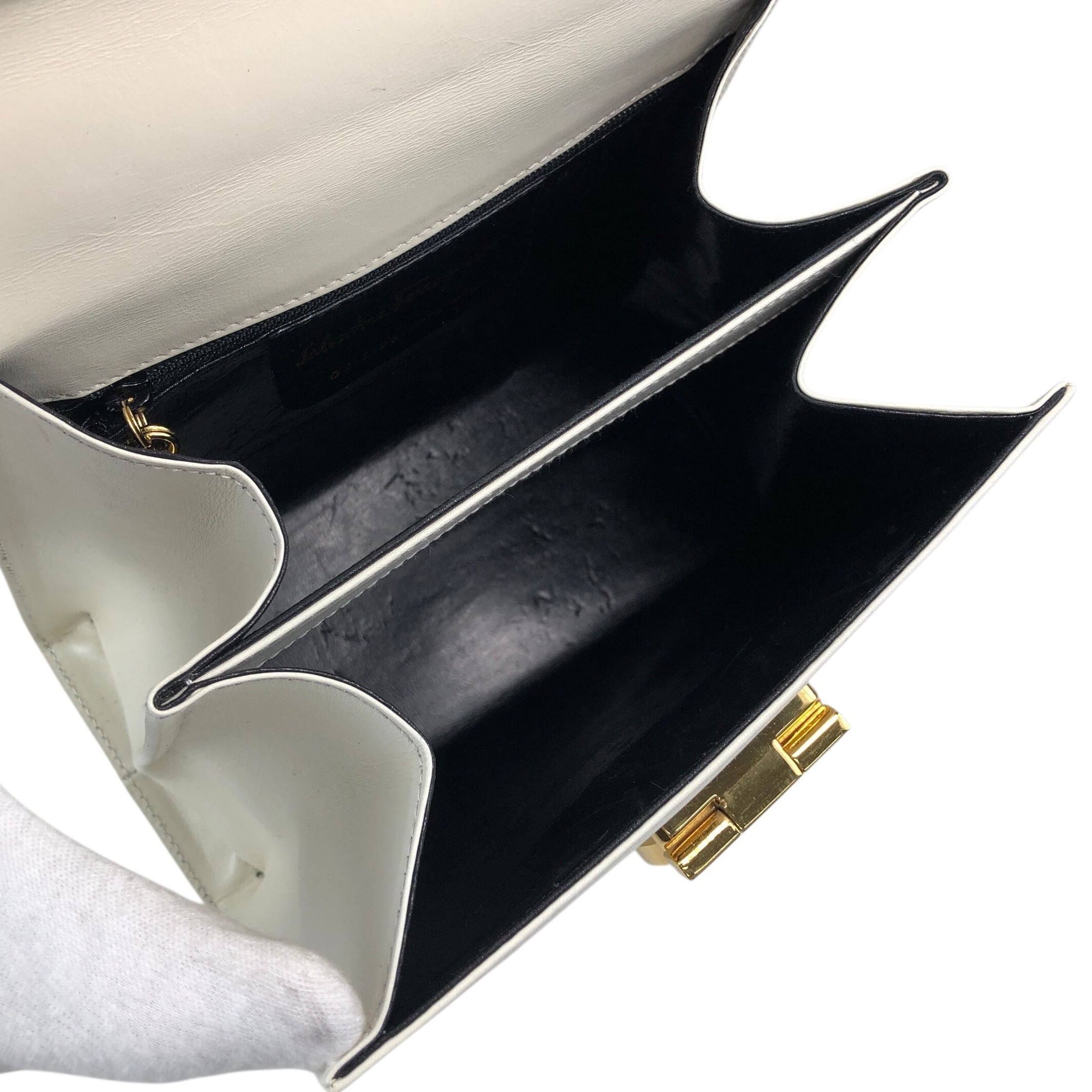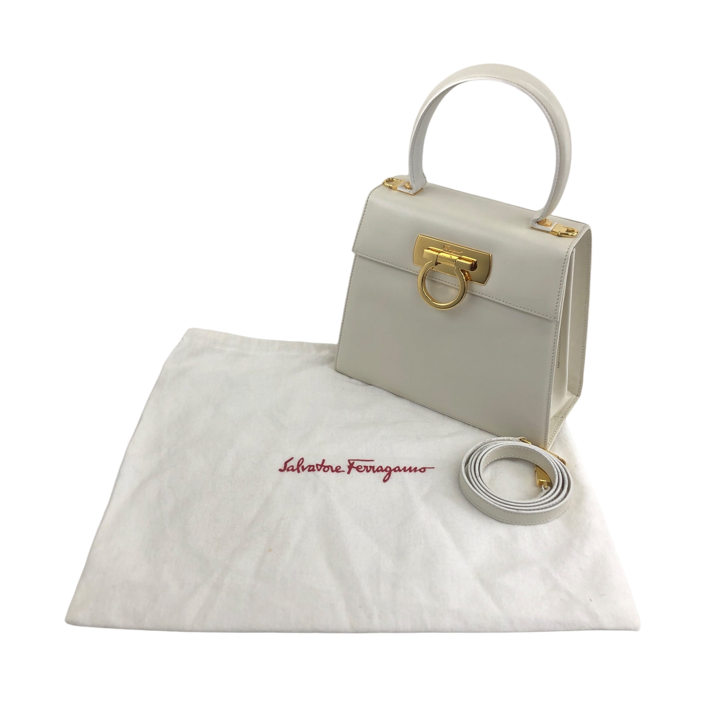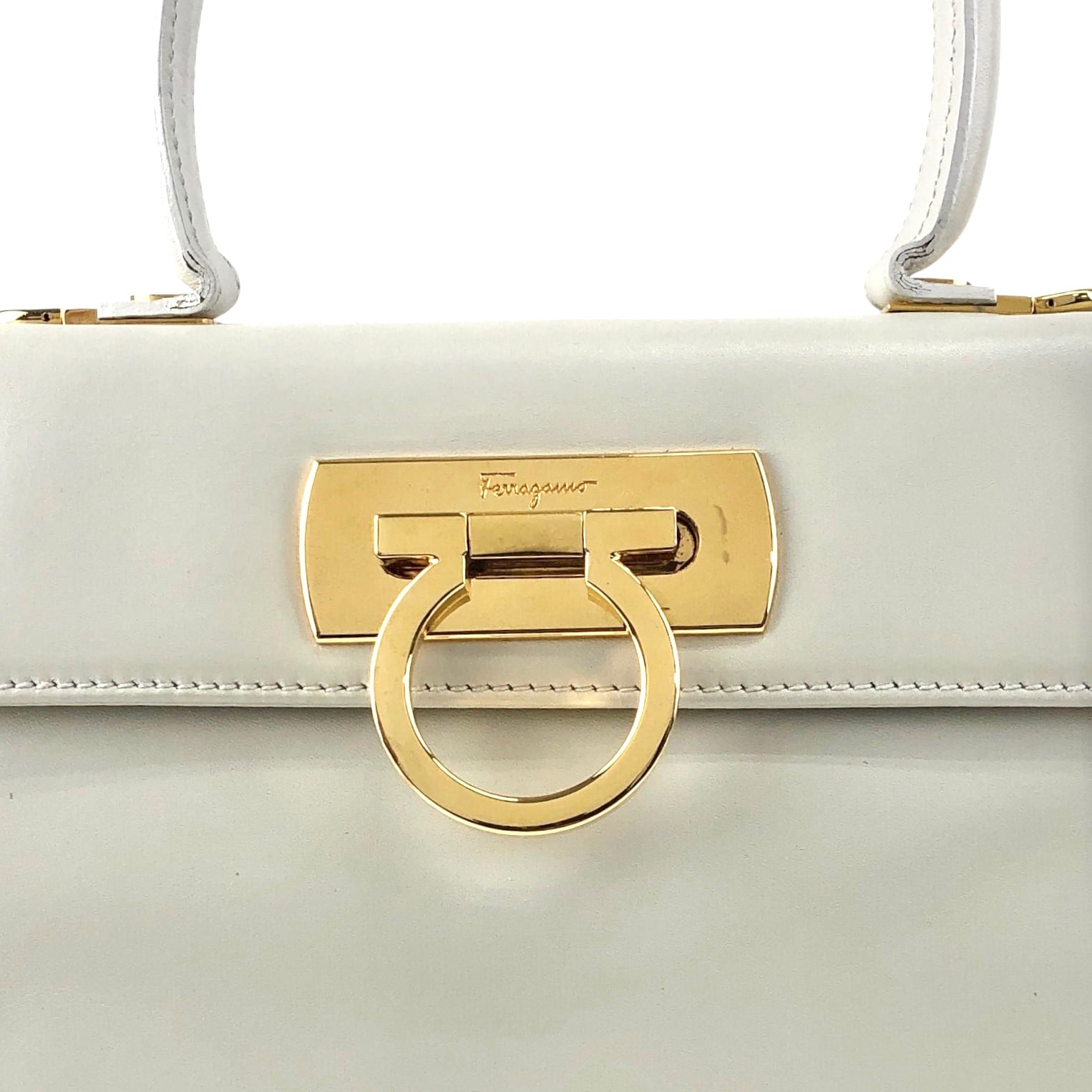 Salvatore Ferragamo サルヴァトーレ フェラガモ ショルダーバッグ ホワイト ガンチーニ レザー 2way ミニバッグ vintage ヴィンテージ オールド d37hra