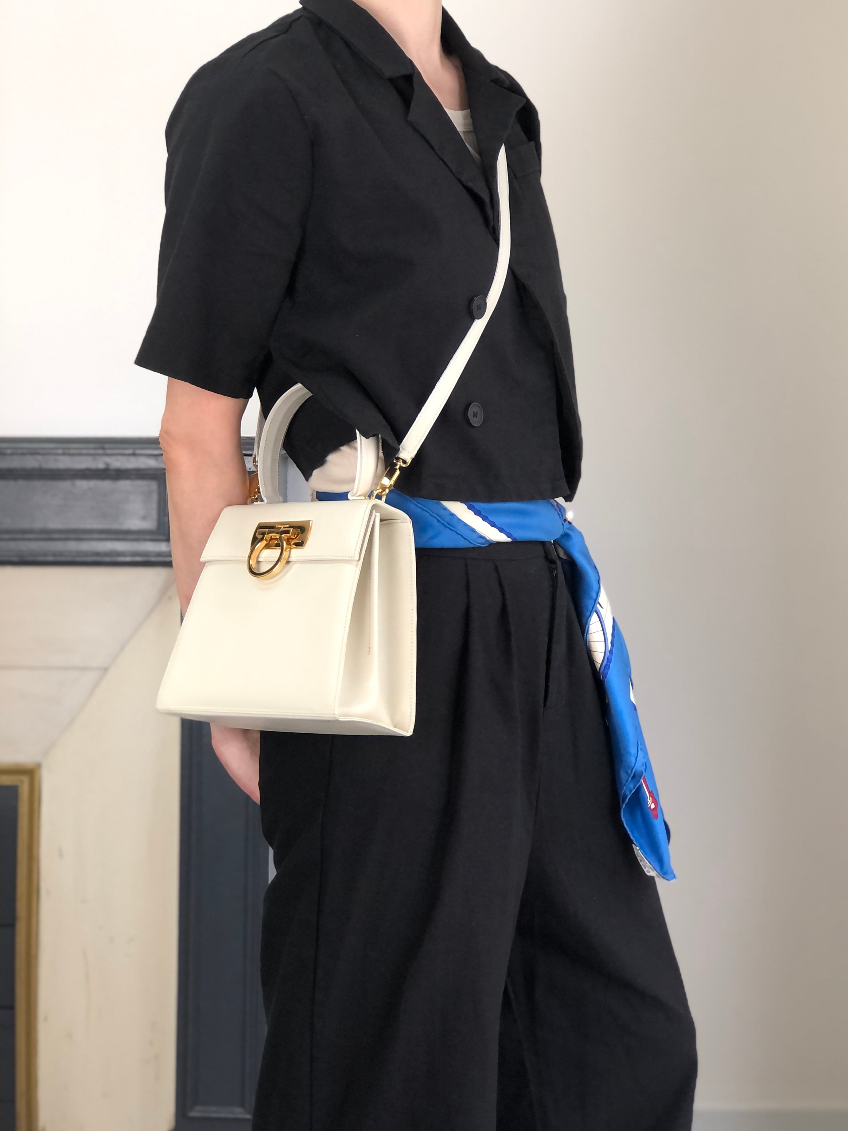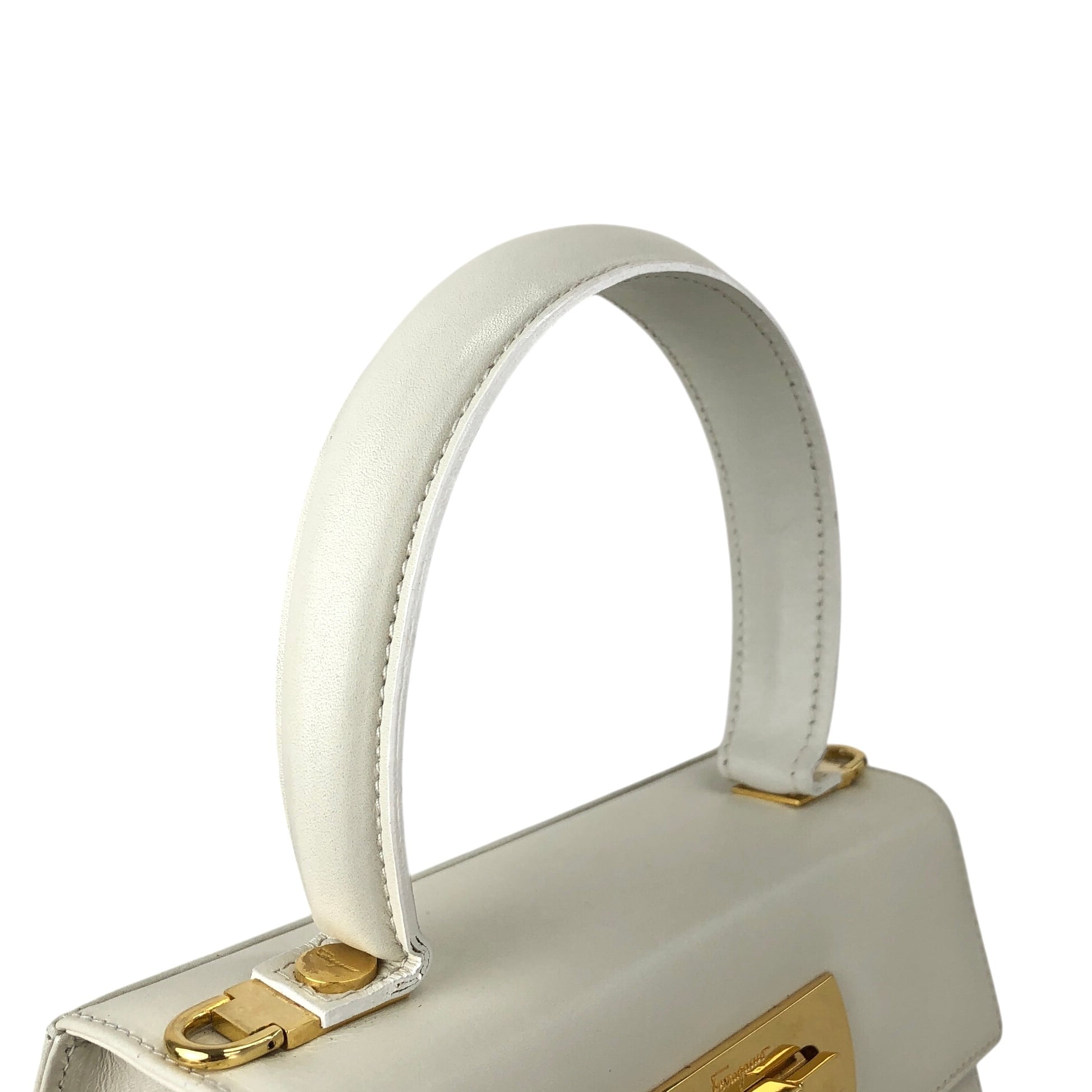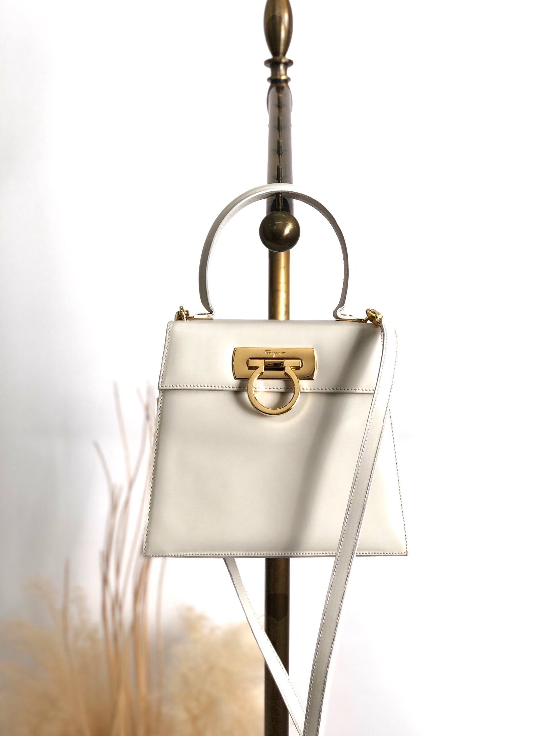 Salvatore Ferragamo サルヴァトーレ フェラガモ ショルダーバッグ ホワイト ガンチーニ レザー 2way ミニバッグ vintage ヴィンテージ オールド d37hra