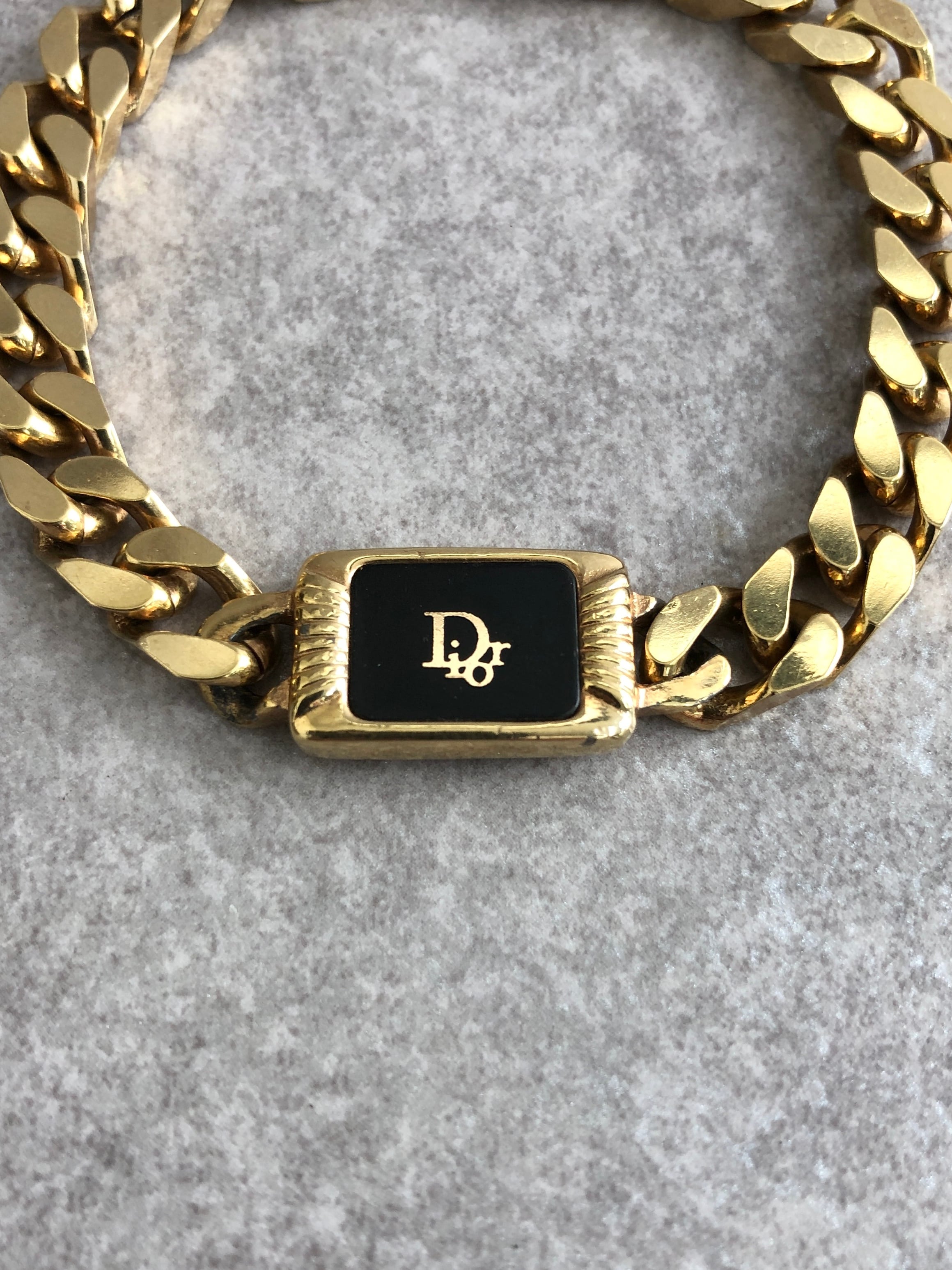 Christian Dior クリスチャン ディオール ブレスレット ゴールド ロゴ プレート ストーン vintage ヴィンテージ オールド piazzv
