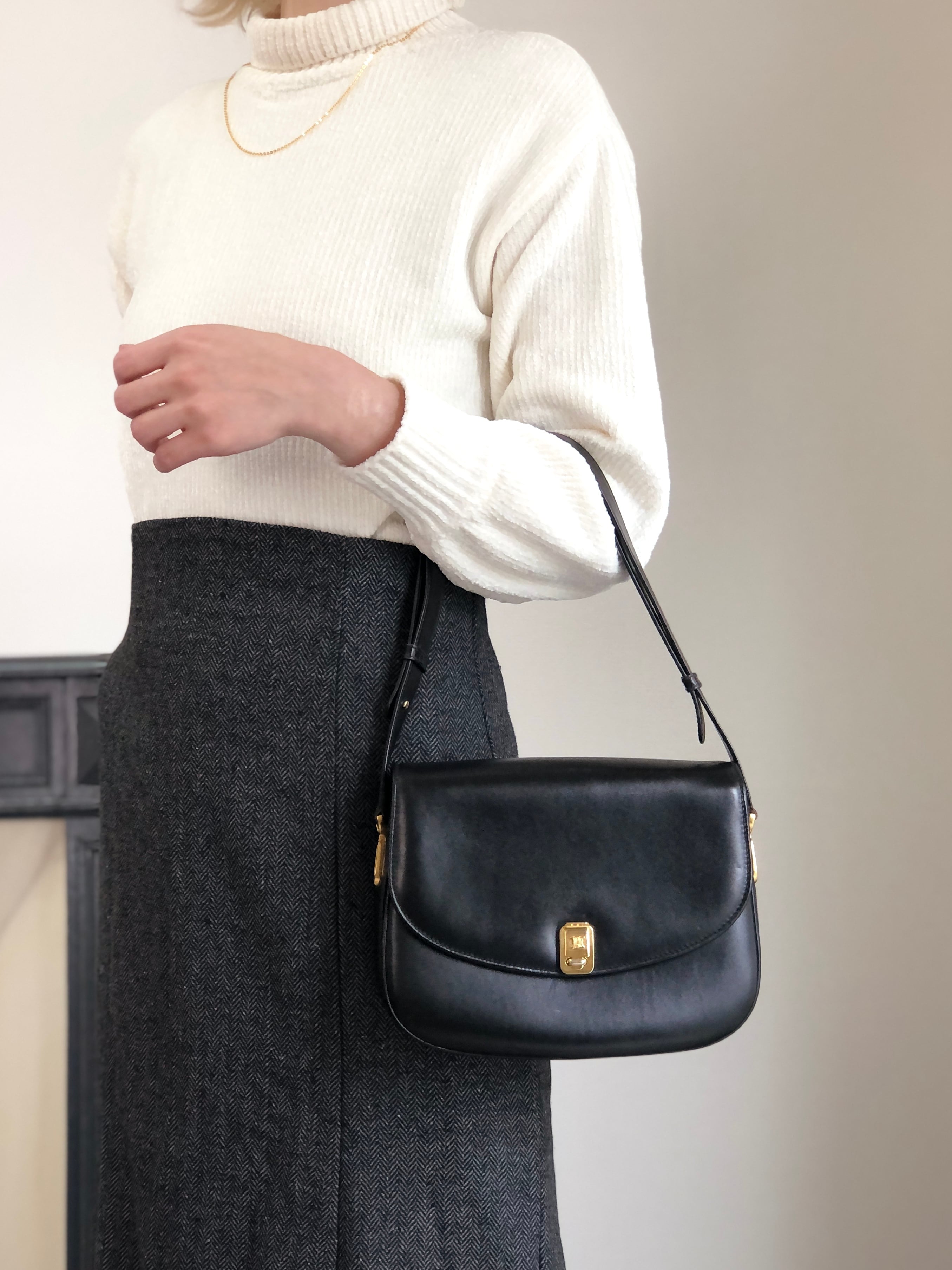 CELINE セリーヌ ショルダーバッグ ブラック ブラゾン フロントバックル レザー vintage ヴィンテージ オールド ery5dr