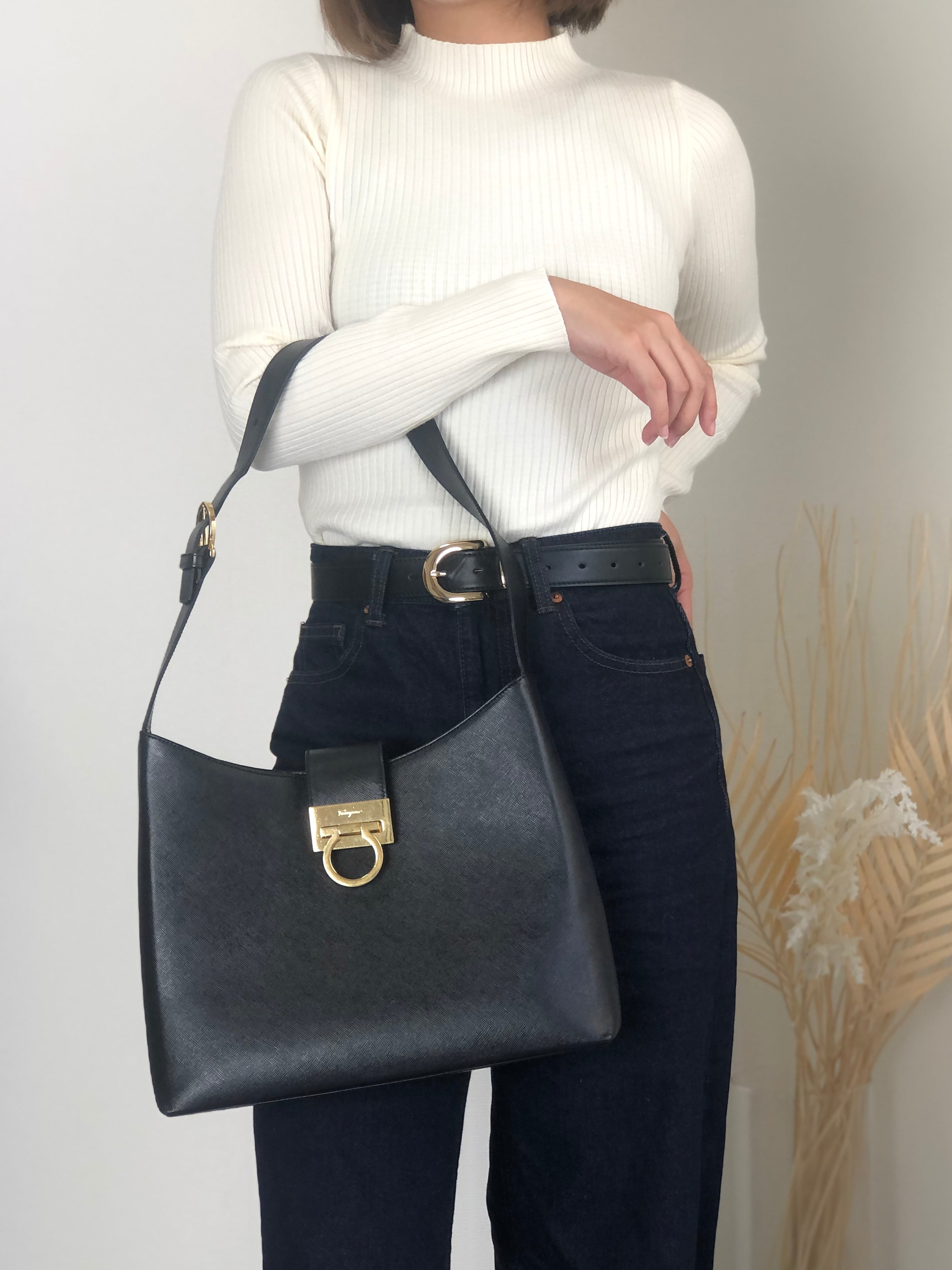Salvatore Ferragamo サルヴァトーレ フェラガモ ショルダーバッグ ブラック ガンチーニ レザー 型押し セミショルダーバッグ vintage ヴィンテージ オールド vn6tps
