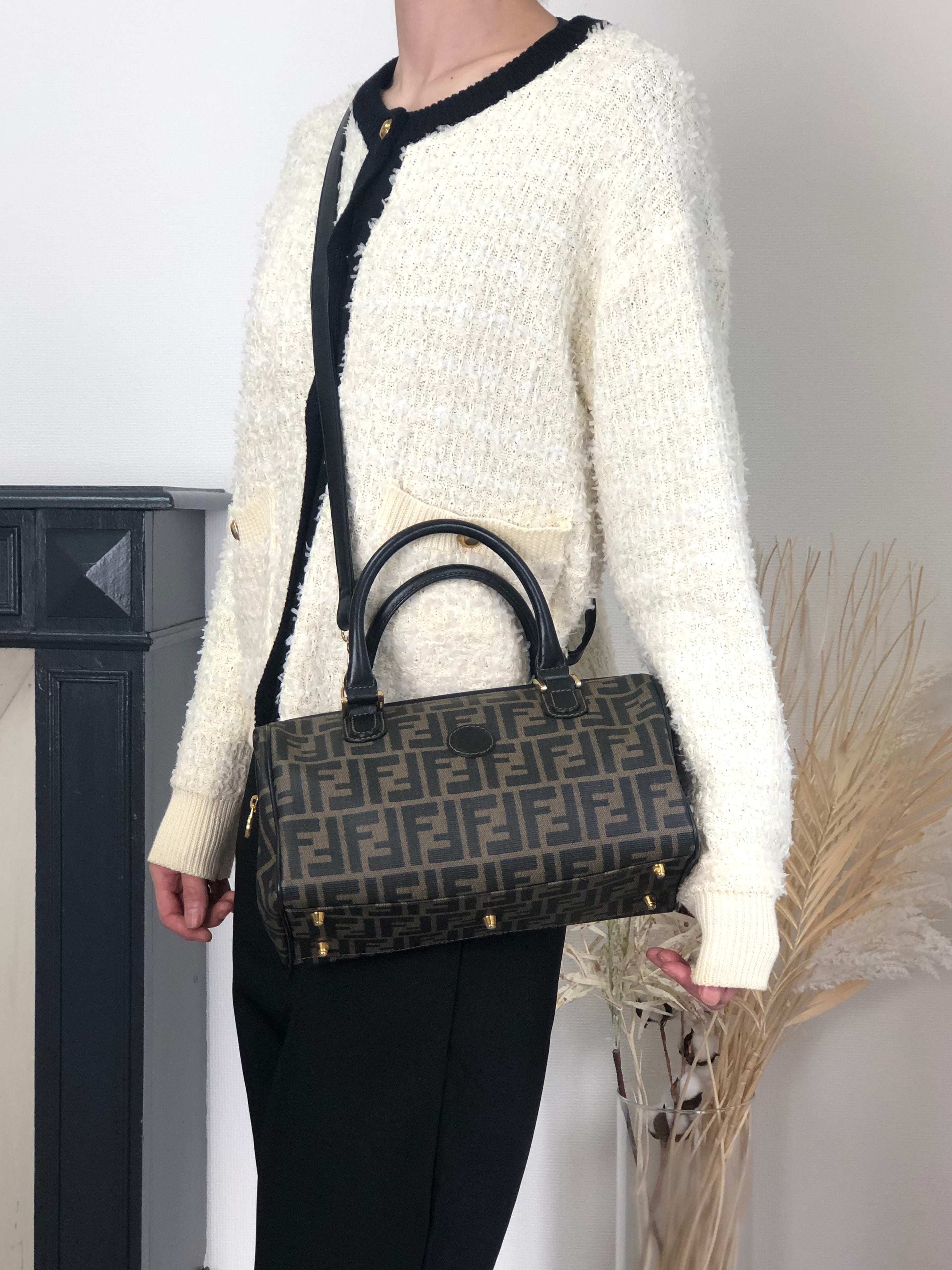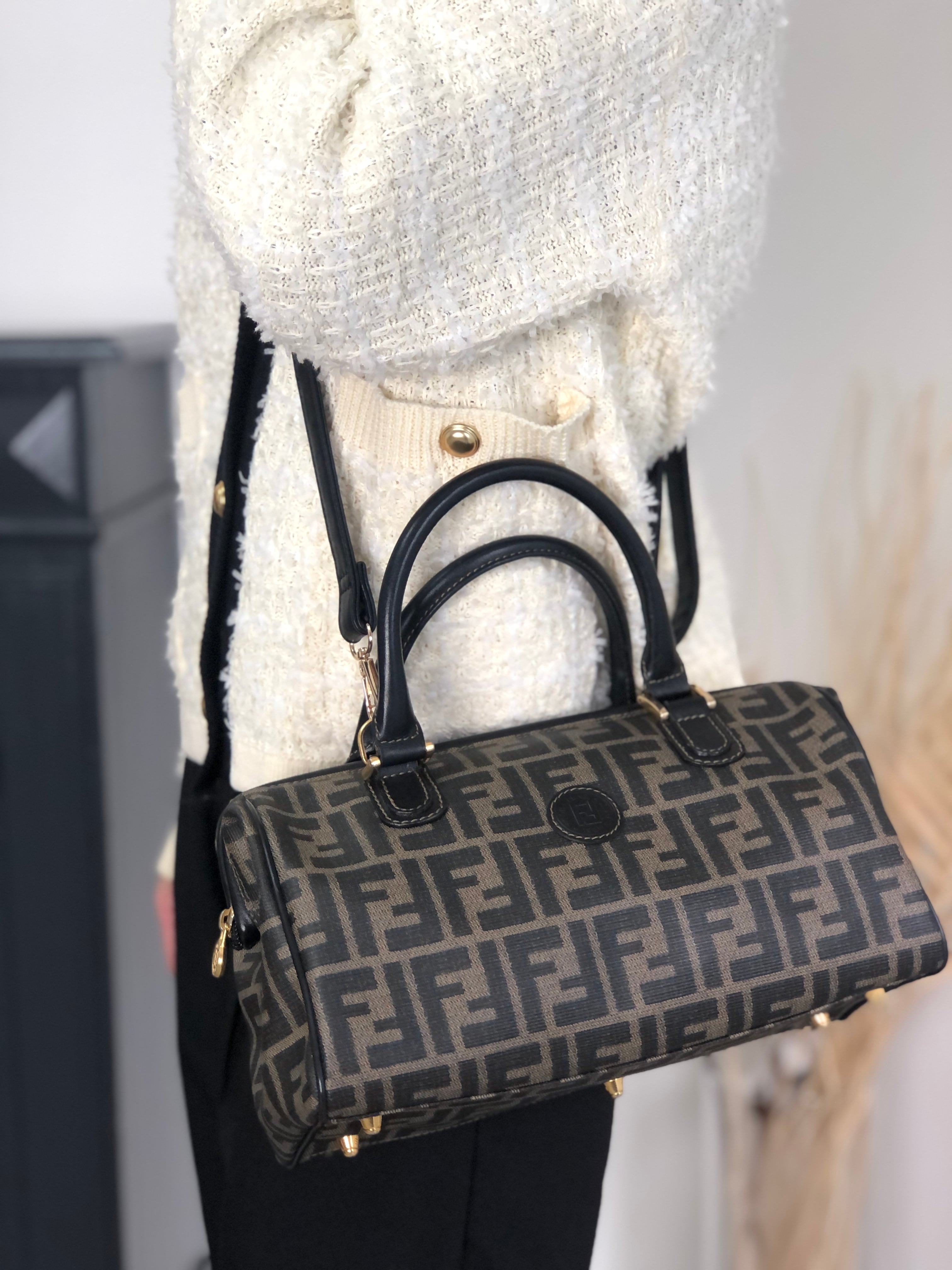 FENDI フェンディ ズッカ ハンドバッグ ブラック ロゴ PVC レザー 2way ミニボストン vintage ヴィンテージ オールド yh8esb