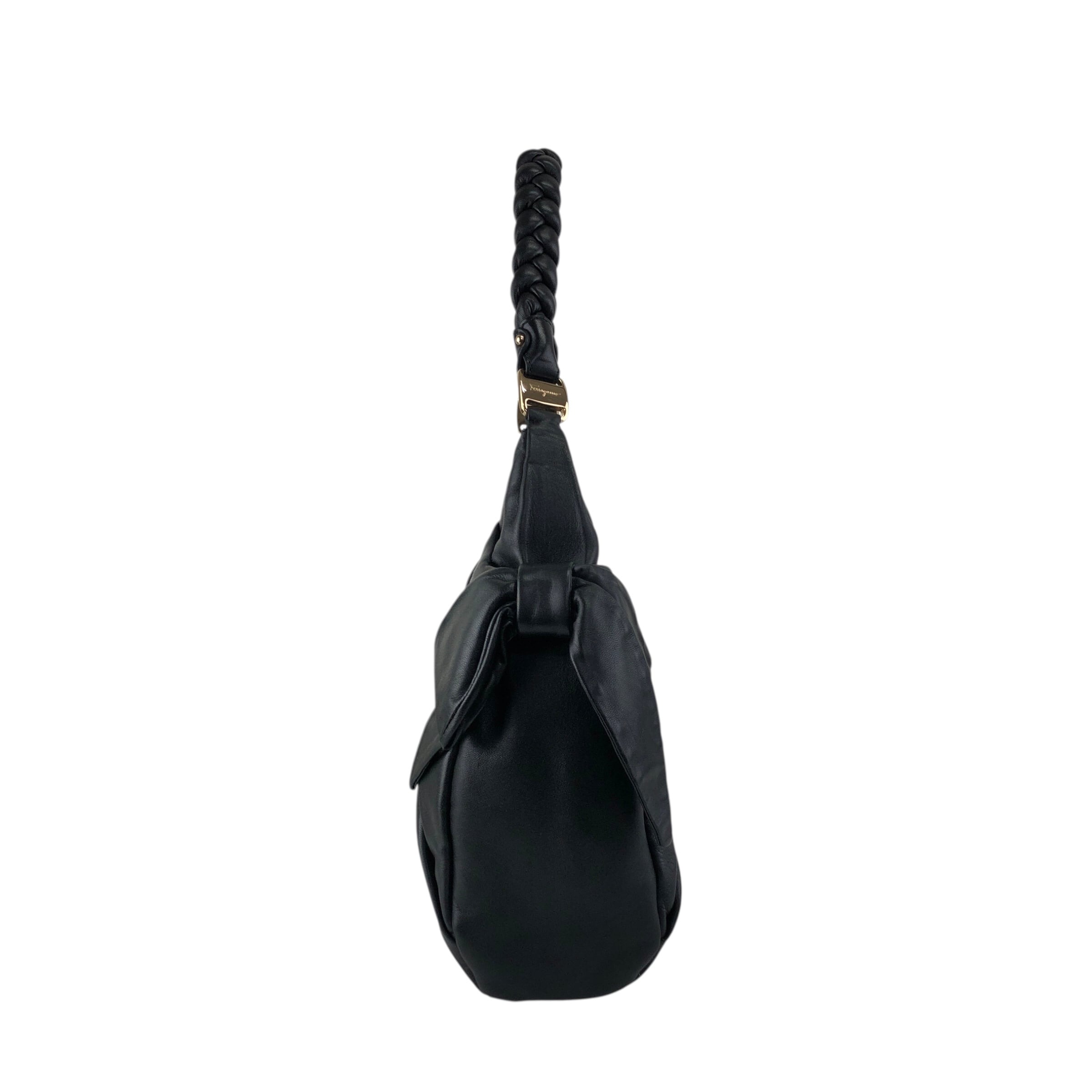 Salvatore Ferragamo サルヴァトーレ フェラガモ ショルダーバッグ ブラック ヴァラリボン レザー ホーボーバッグ vintage ヴィンテージ オールド nbxkia