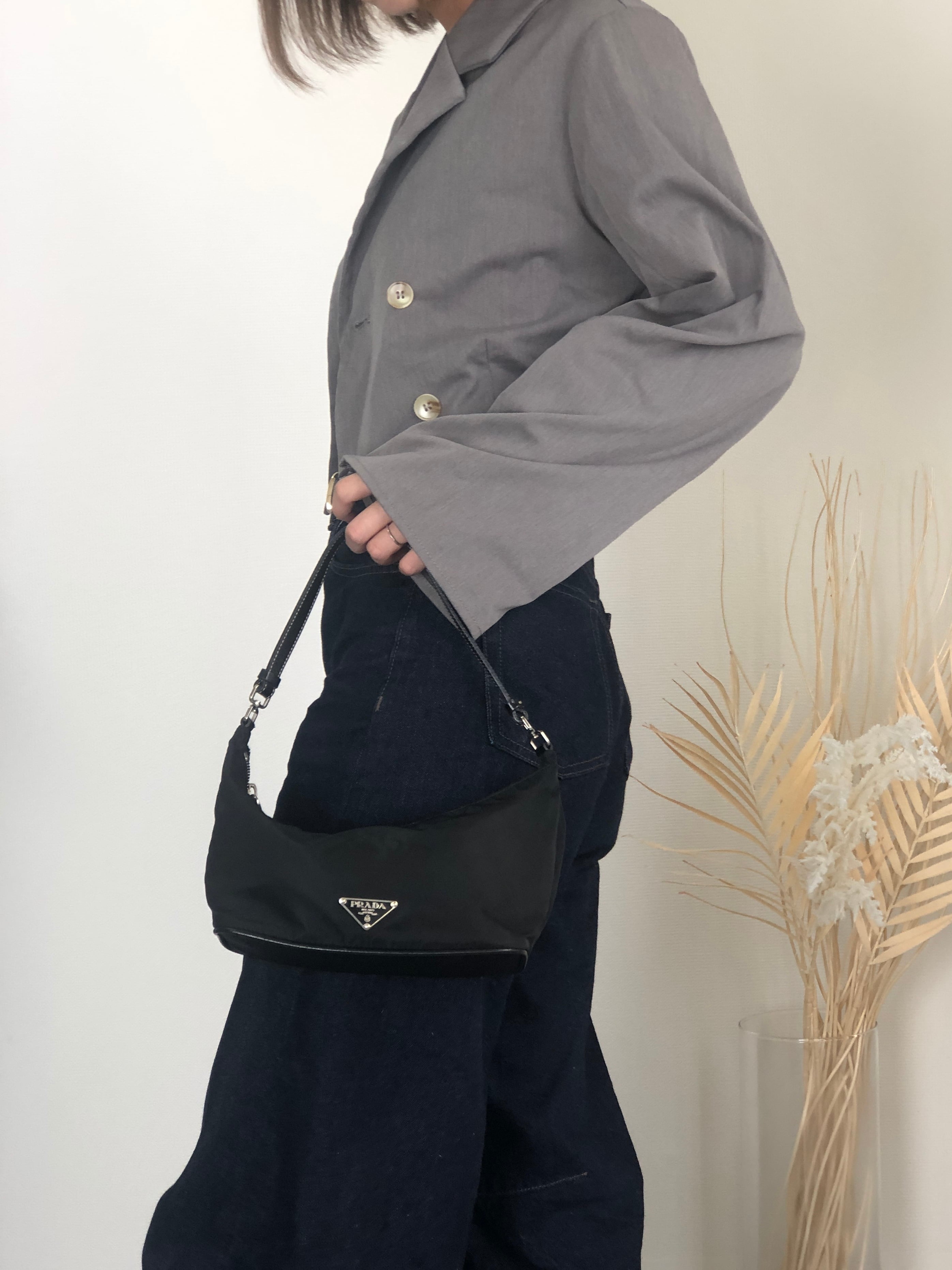 PRADA プラダ ハンドバッグ ブラック トライアングルロゴ ナイロン ミニバッグ vintage ヴィンテージ オールド 2efib2
