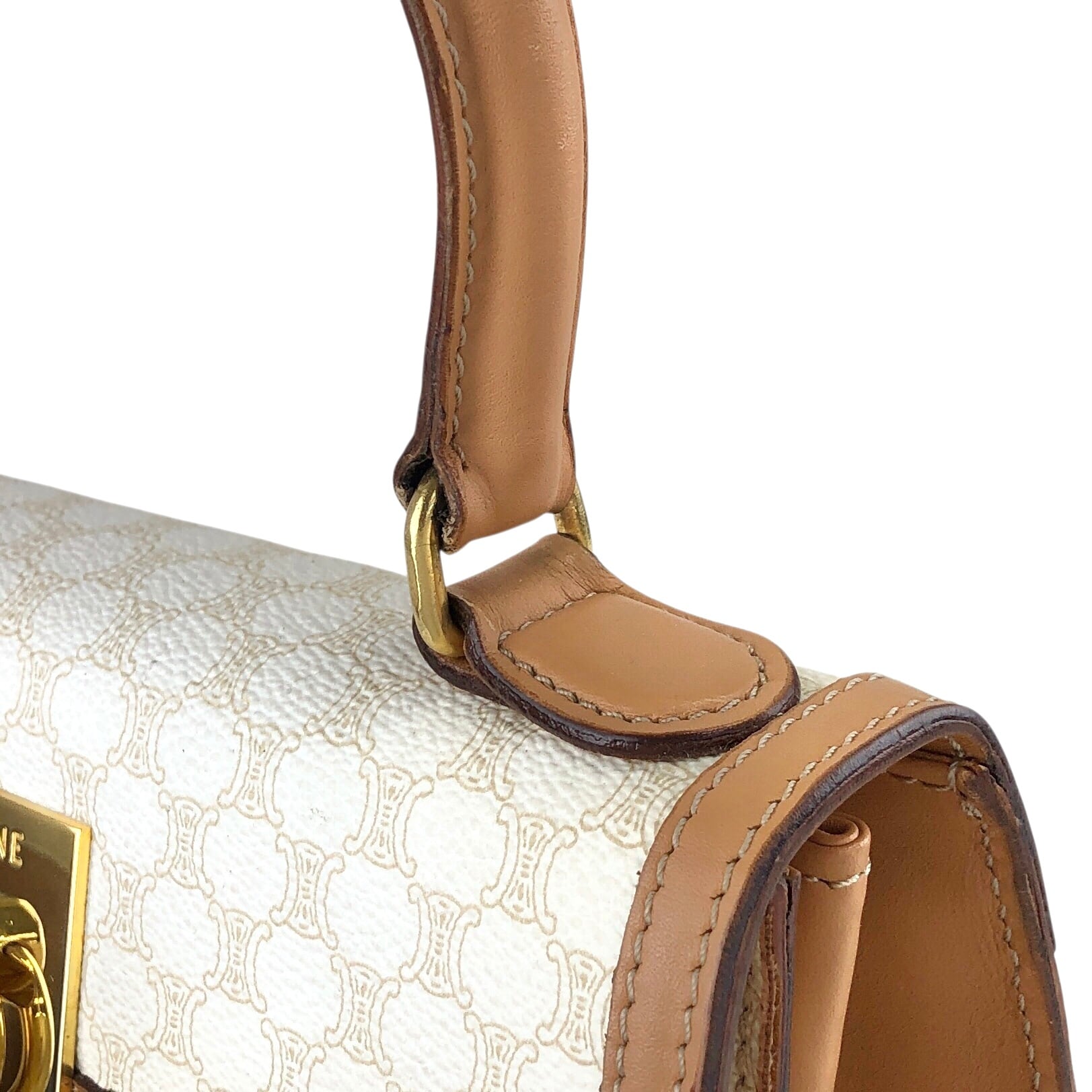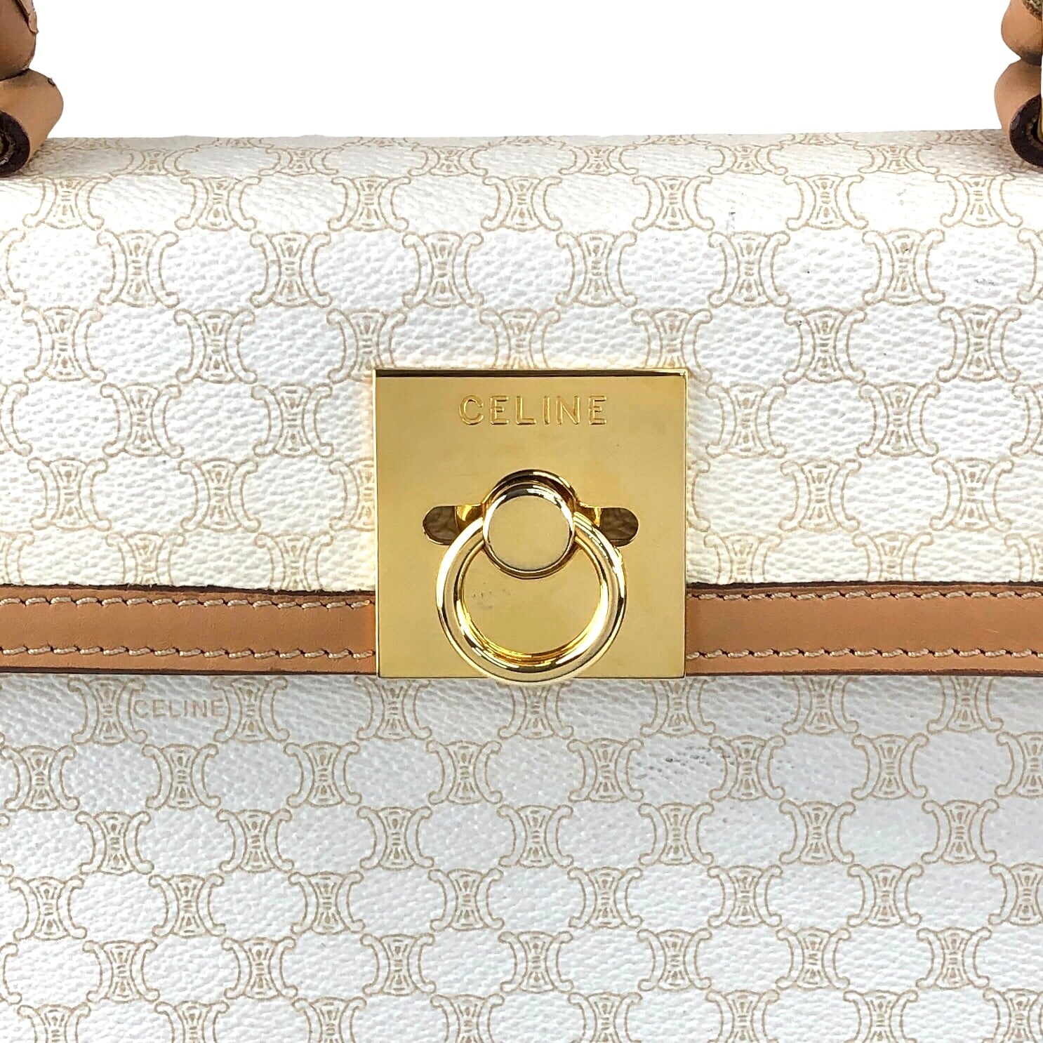 CELINE セリーヌ マカダム ハンドバッグ ホワイト ガンチーニ PVC レザー 2way トップハンドル vintage ヴィンテージ オールド 5gy5ms