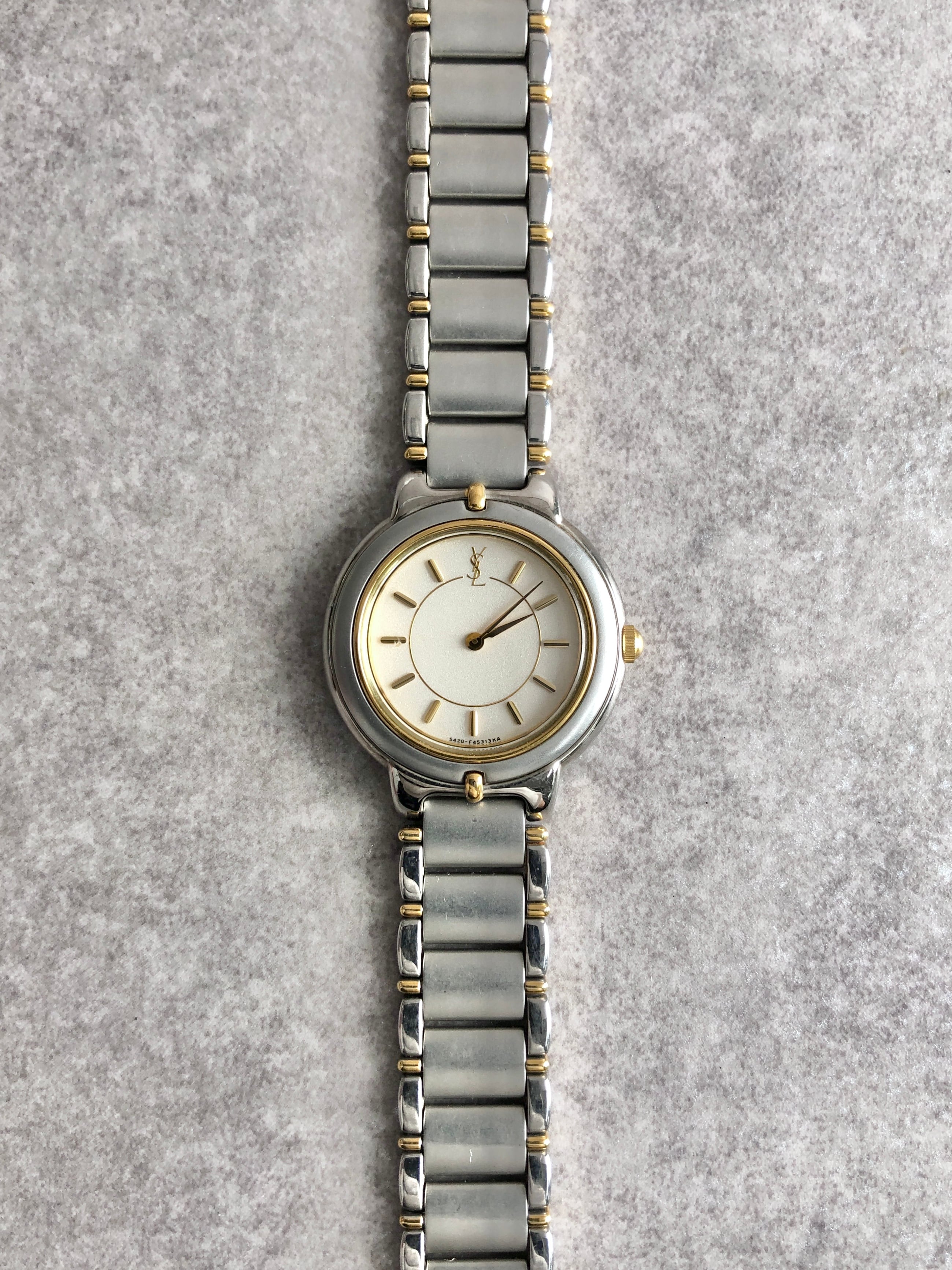 Yves Saint Laurent イヴ・サンローラン 腕時計 シルバー ゴールド ステンレススチール クウォーツ 5420-F45413 vintage ヴィンテージ オールド m3ywcg