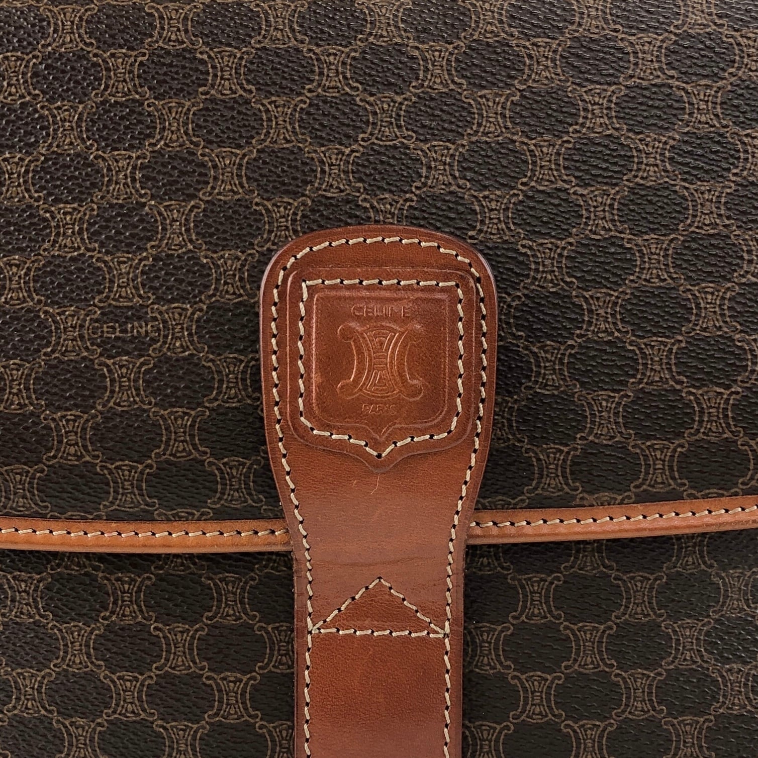 CELINE セリーヌ マカダム ショルダーバッグ ブラウン ブラゾン型押し PVC レザー vintage ヴィンテージ オールド vim7mw
