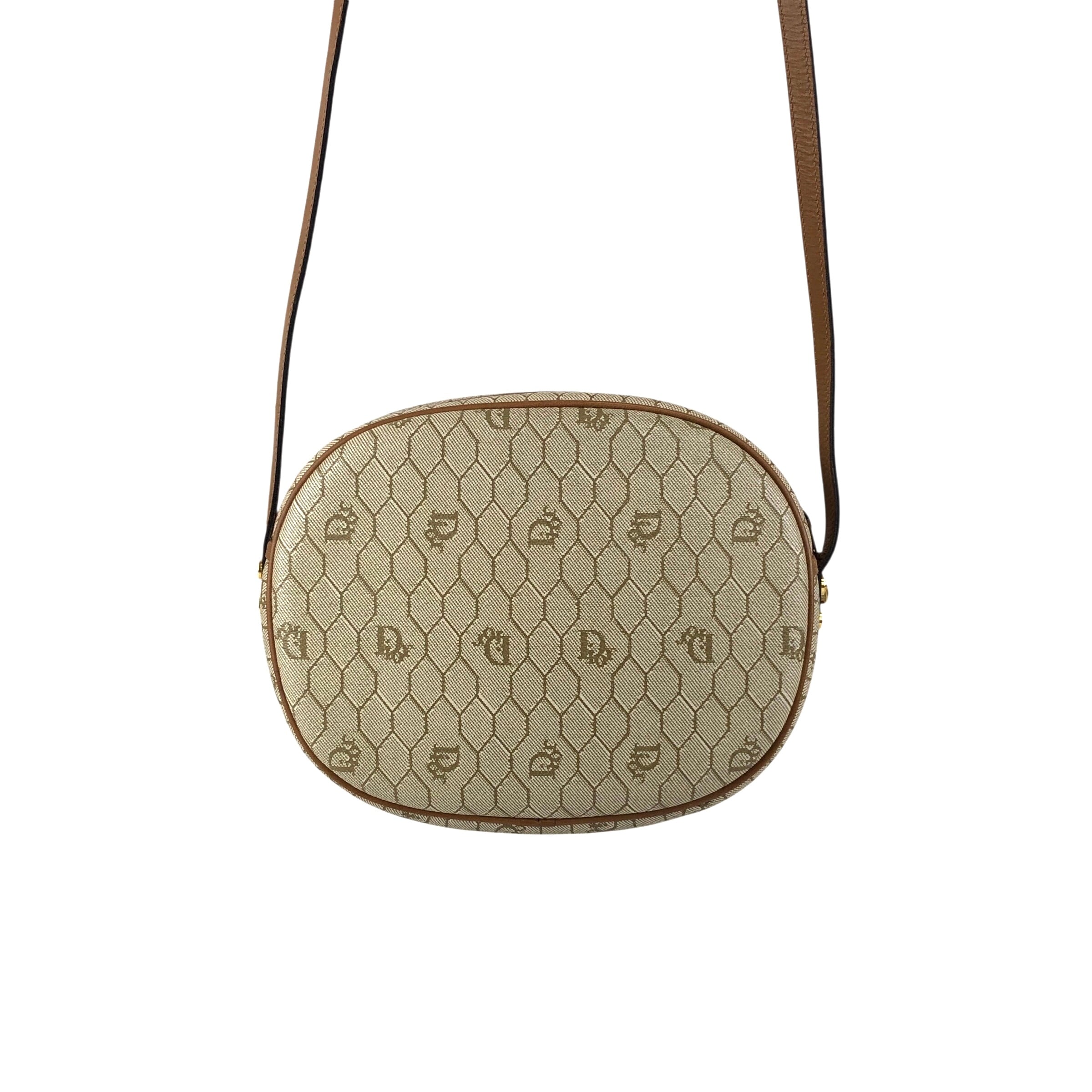 Christian Dior クリスチャン ディオール ハニカム柄 ショルダーバッグ ベージュ ロゴ PVC レザー ラウンド vintage ヴィンテージ オールド p7a3yt
