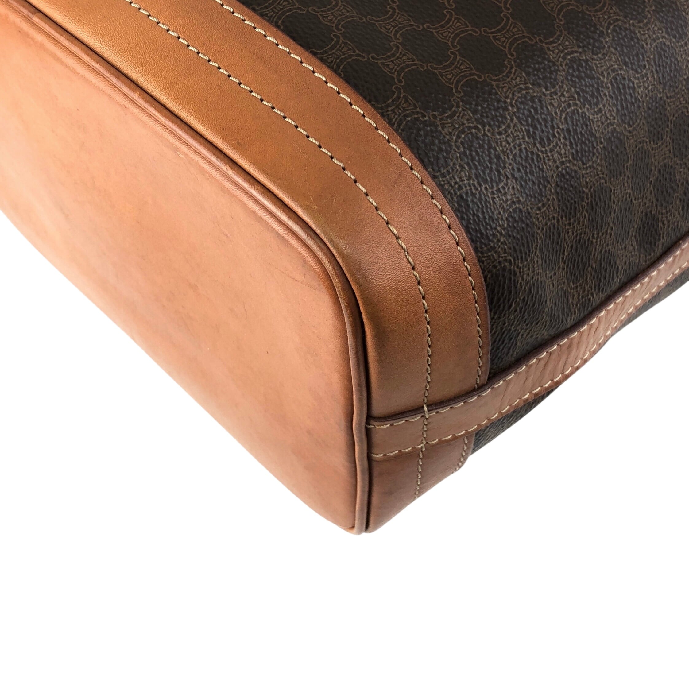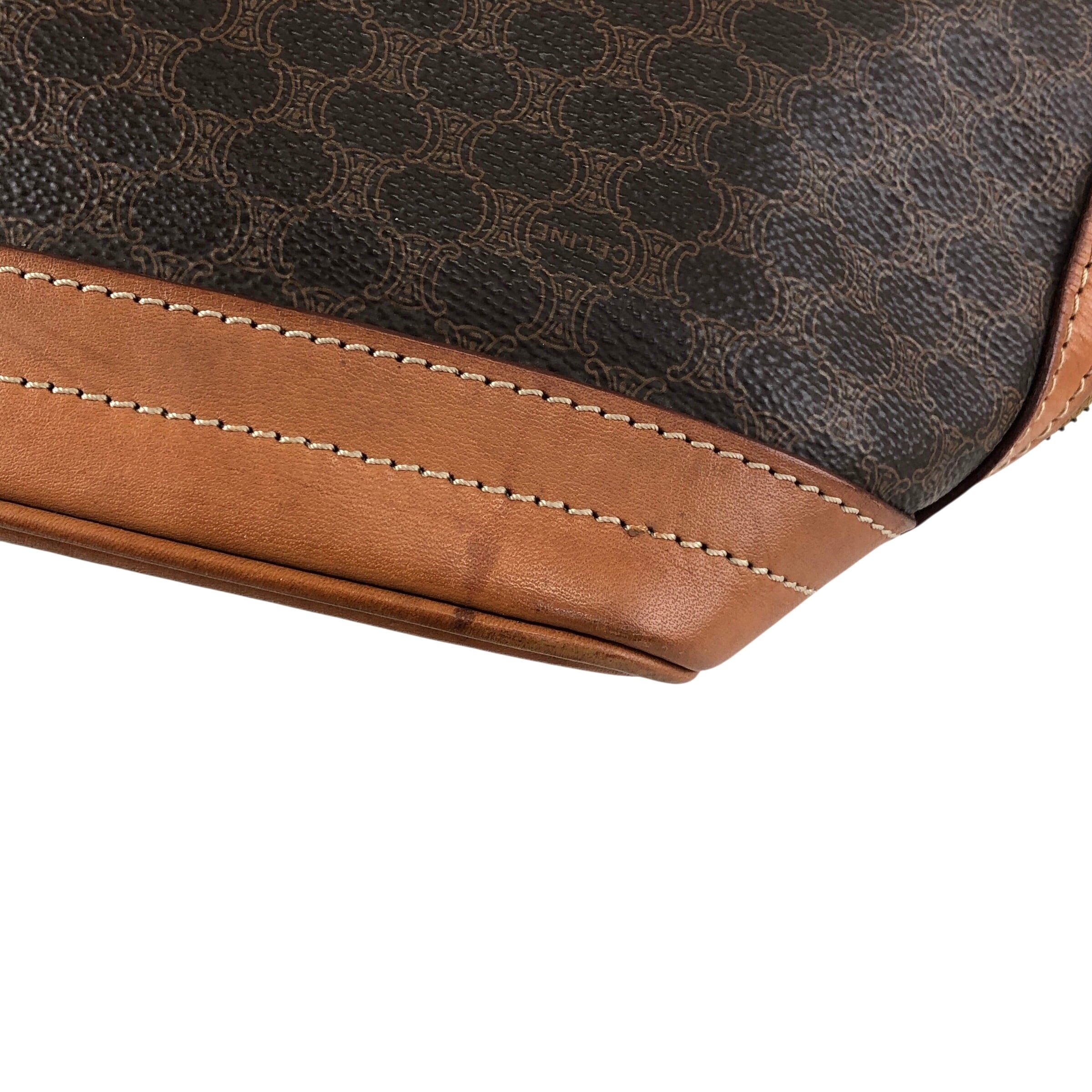 CELINE セリーヌ マカダム ショルダーバッグ ブラウン ブラゾン型押し PVC レザー 巾着 vintage ヴィンテージ オールド y4ma84