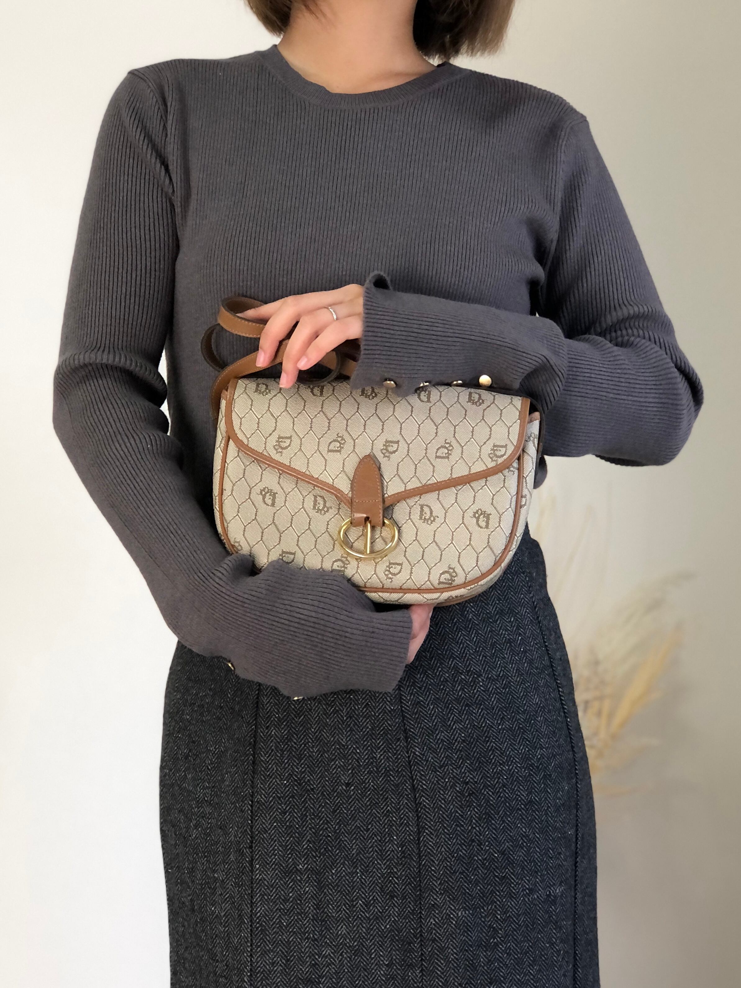 Christian Dior クリスチャン ディオール ハニカム ショルダーバッグ ベージュ PVC レザー vintage ヴィンテージ オールド wvwdbt